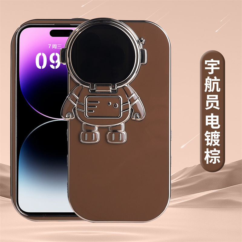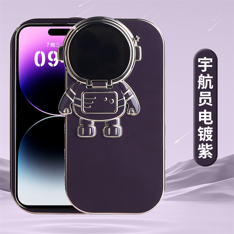电镀纯色宇航员支架适用14Promax手机壳iphone13苹果12情侣11