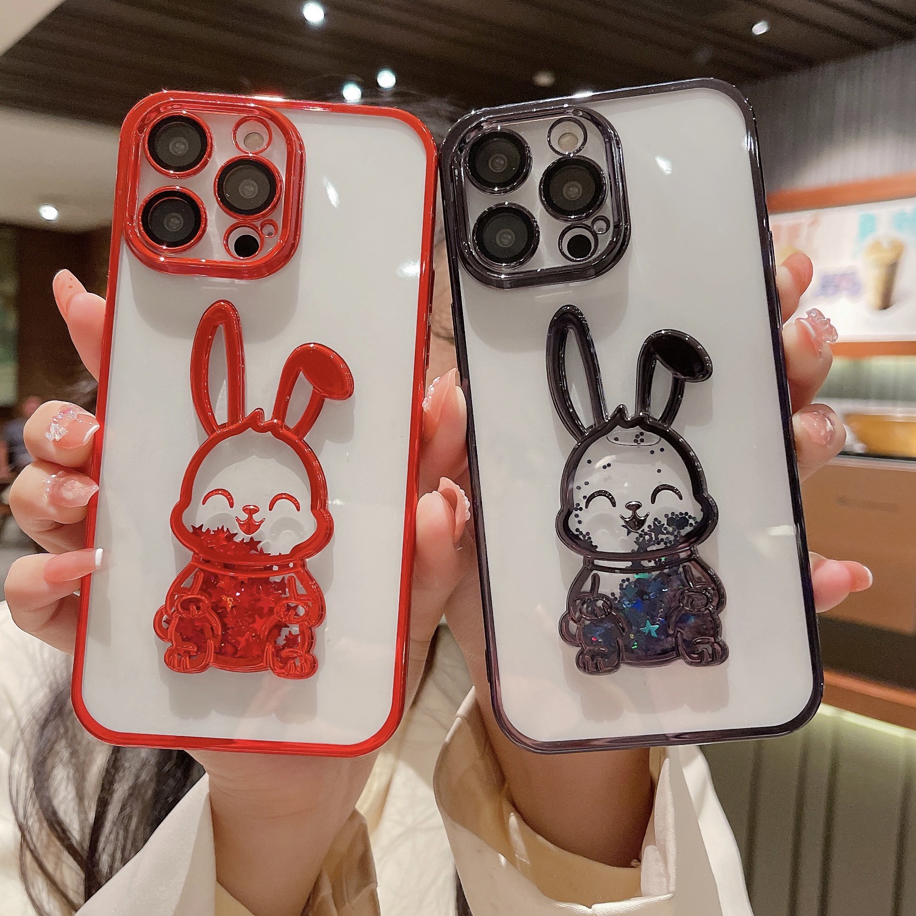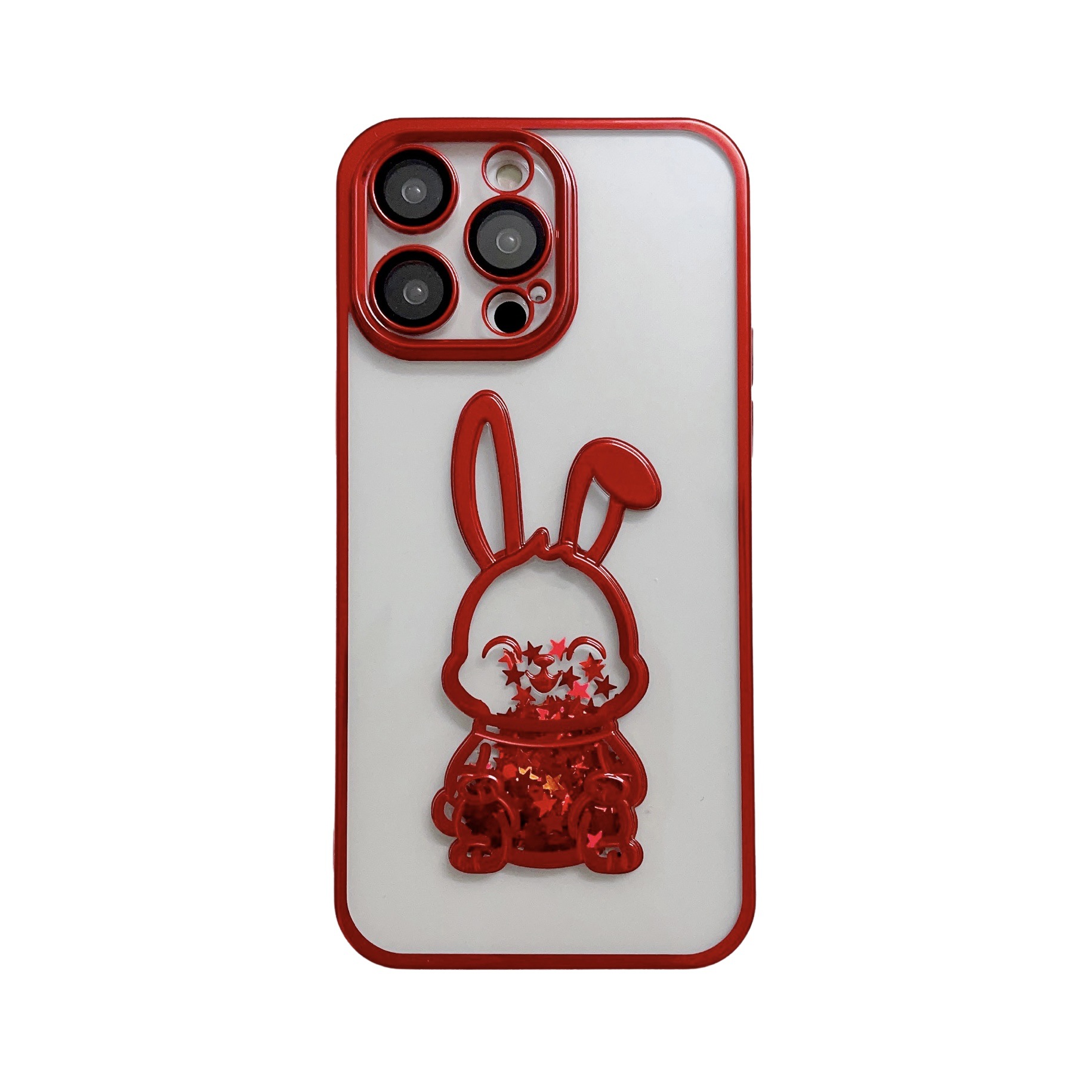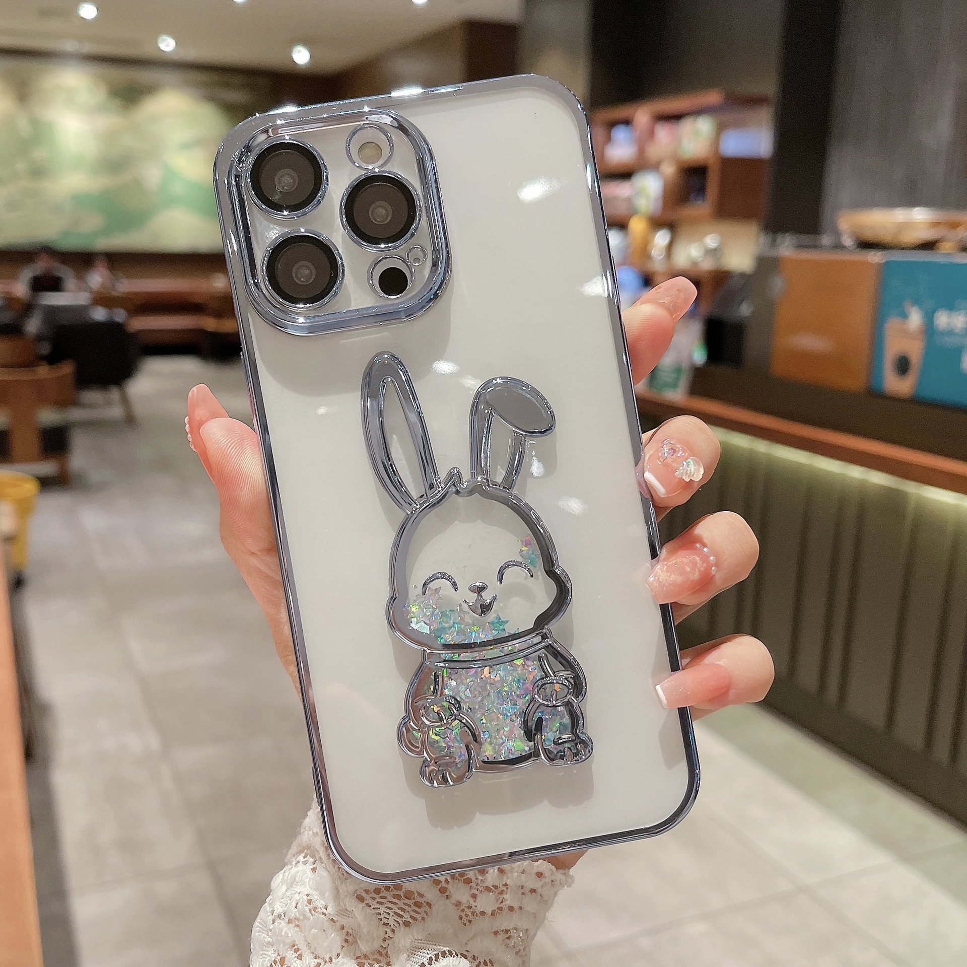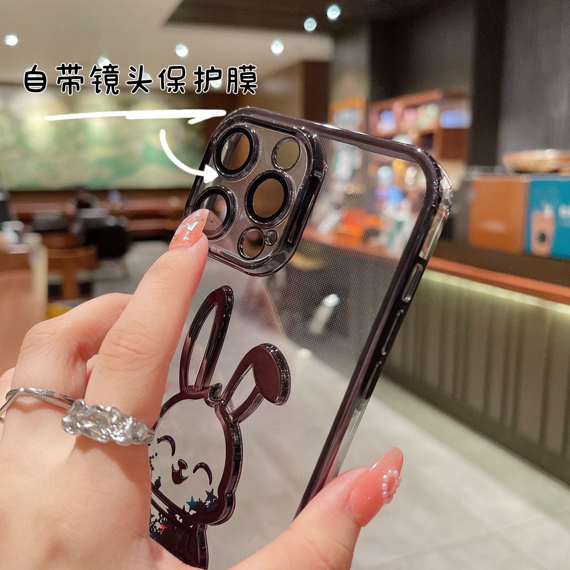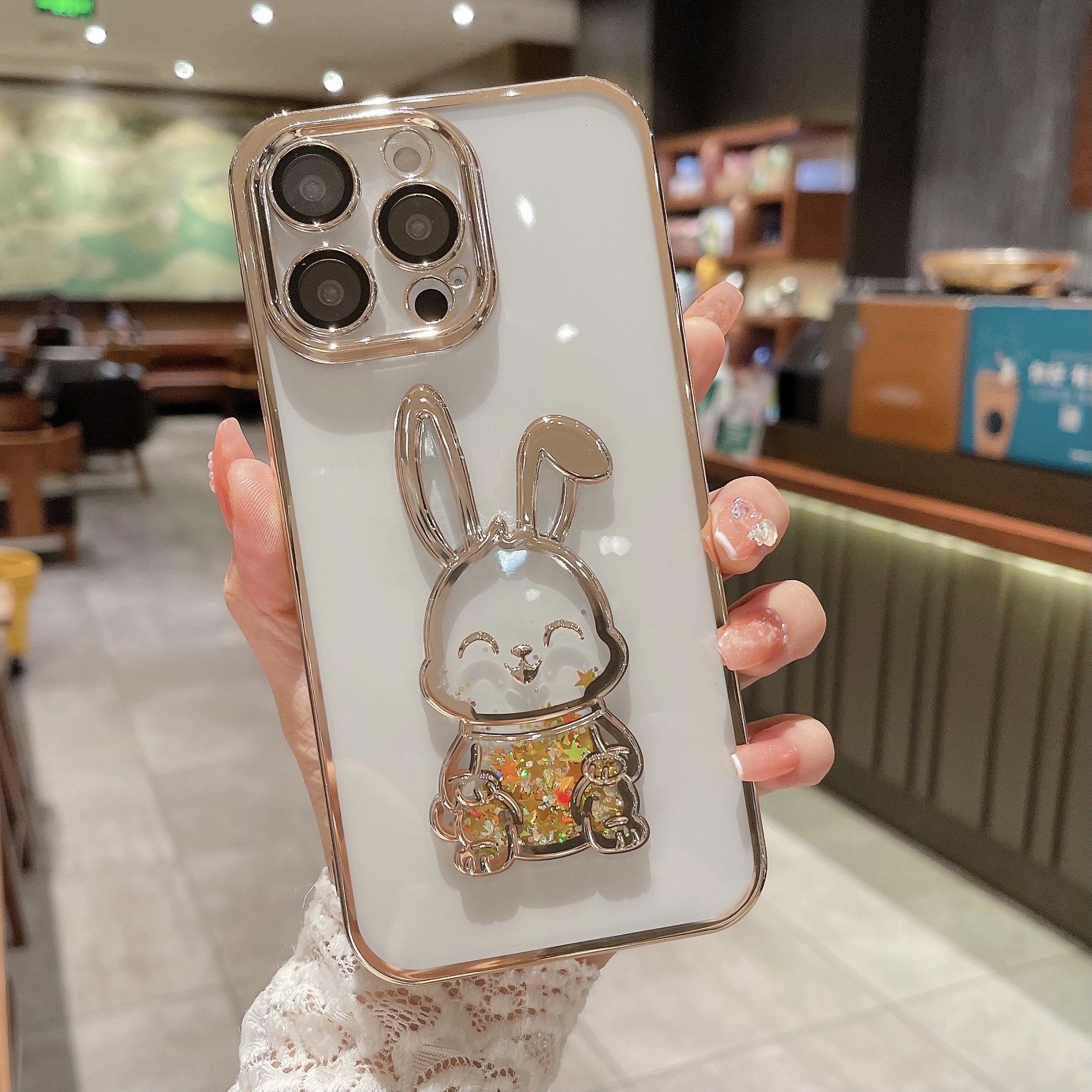 iphone14pro手机壳电镀tpu立体兔子流沙壳适用苹果13promax手机套