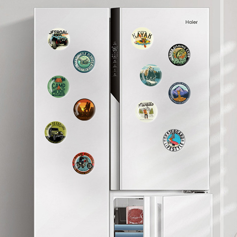 工厂直销户外运动标志创意水晶冰箱贴徒步露营磁吸磁贴家居装饰品