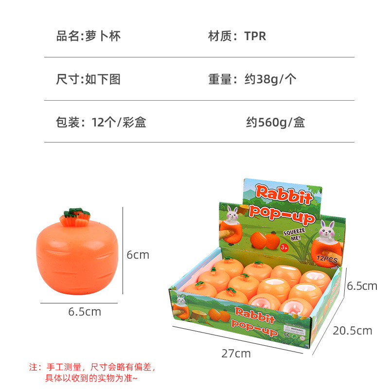 新奇特挤压 发泄萝卜兔 创意发泄解压兔子伸缩杯 儿童玩具捏捏乐