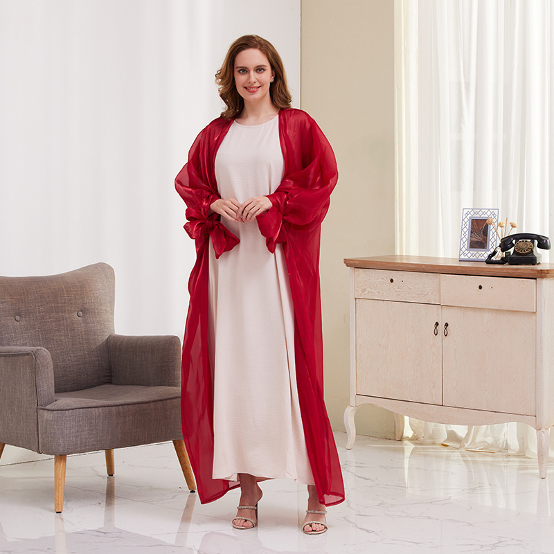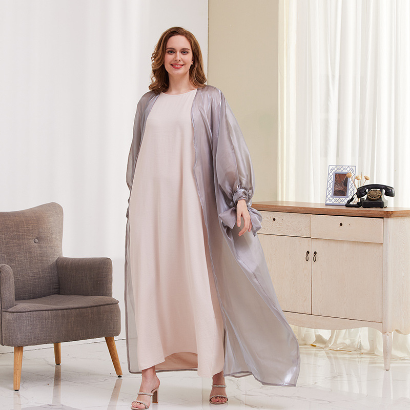 XG2053泡泡袖开衫连衣裙2022夏季欧美迪拜优雅长裙