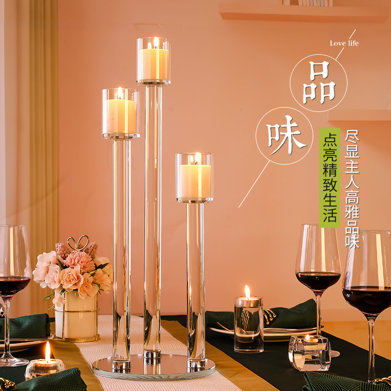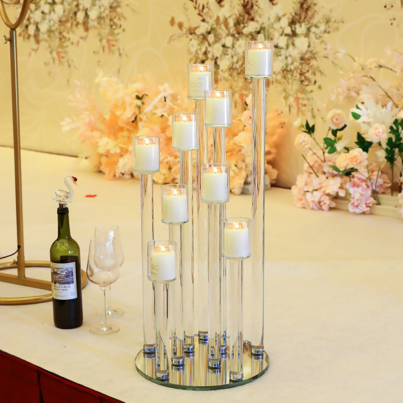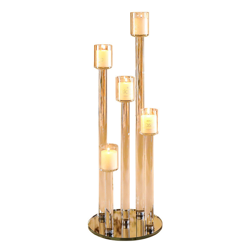 水晶灯烛台欧式婚庆用品玻璃多头旋转蜡烛台水晶工艺品礼品代发