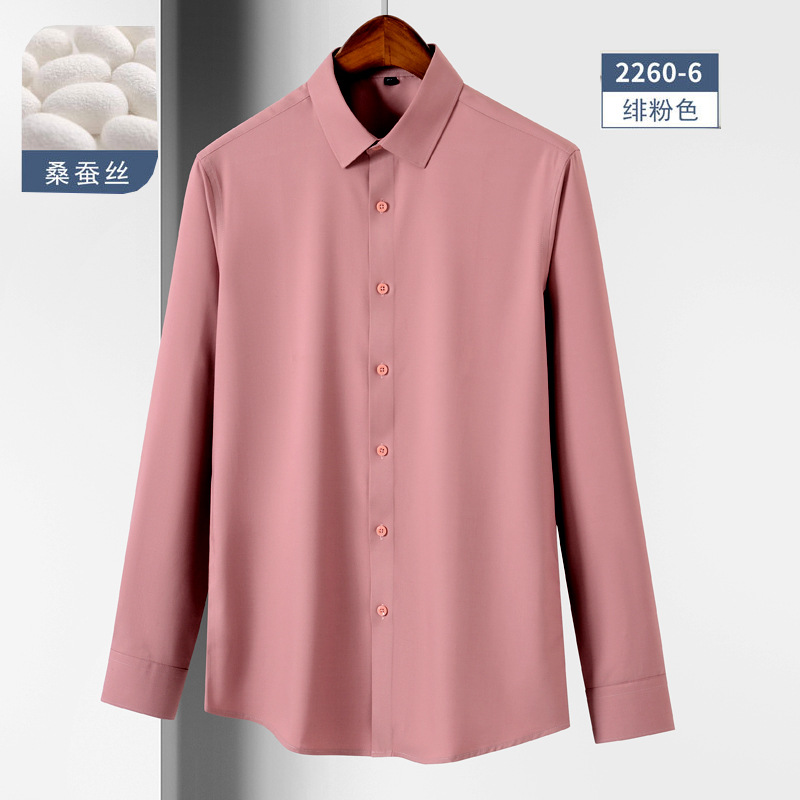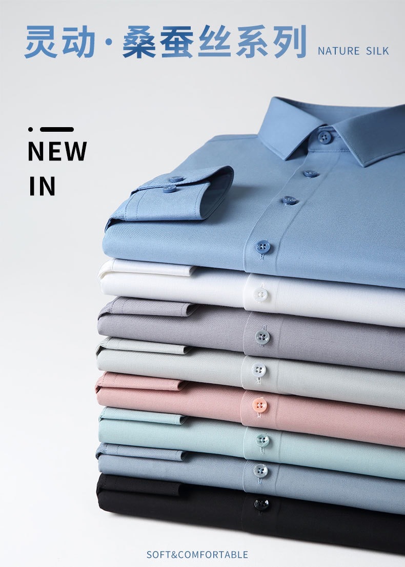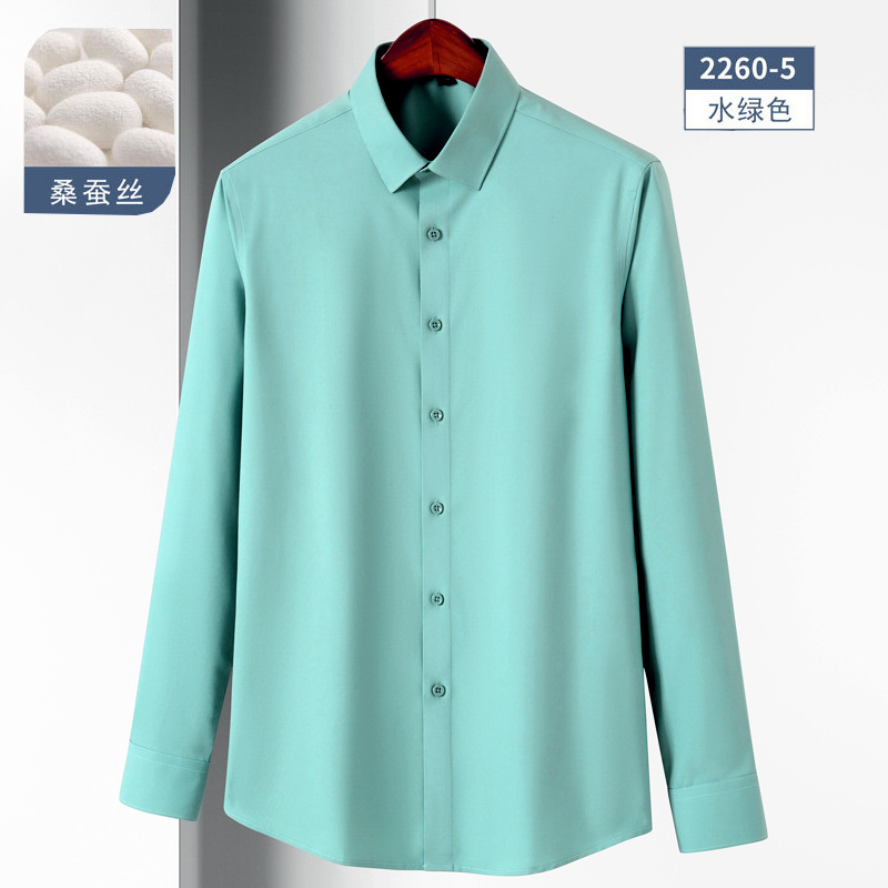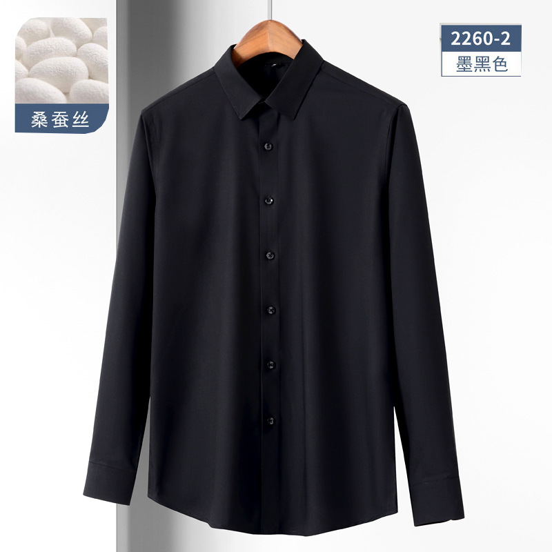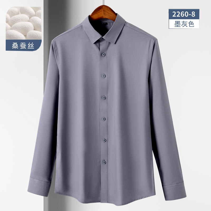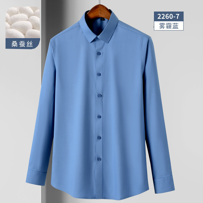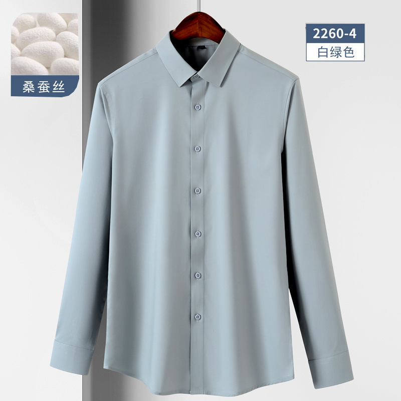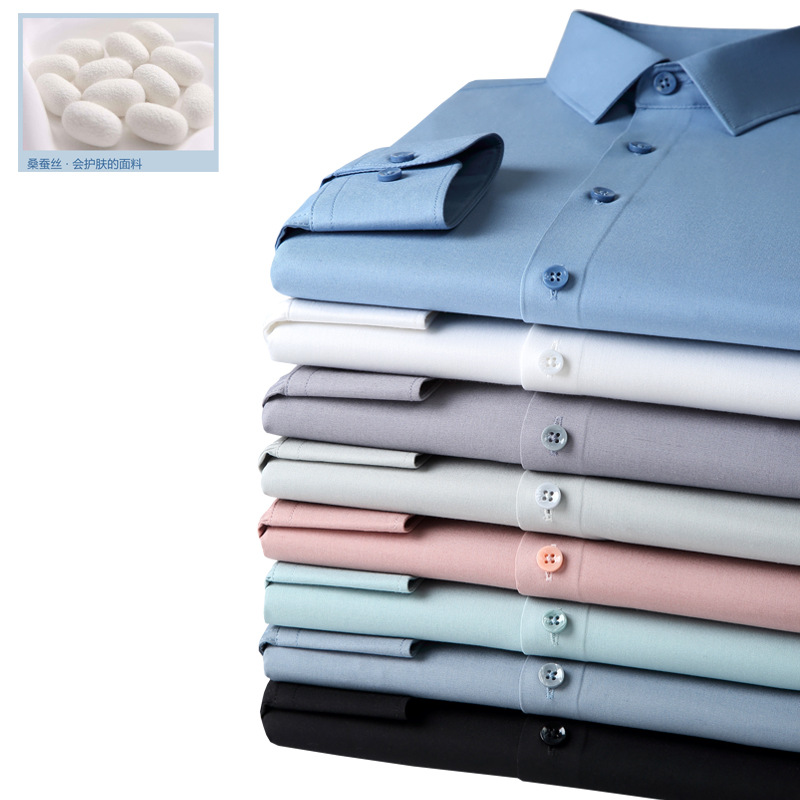新款高档男士桑蚕丝衬衫男白色长袖衬衣商务天丝免烫柔软垂顺大码