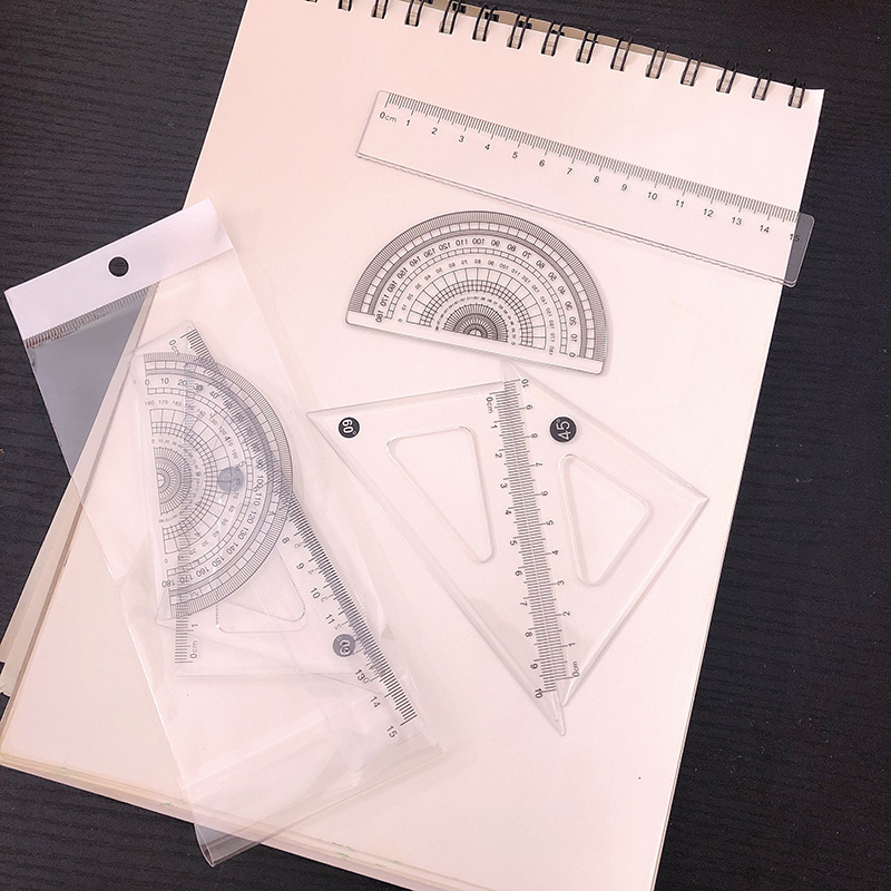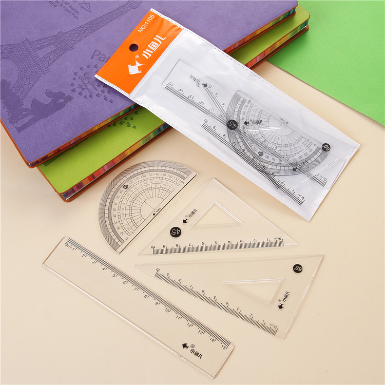 小鱼儿15cm学生四件套套装尺办公套尺简装尺子套装文具批发