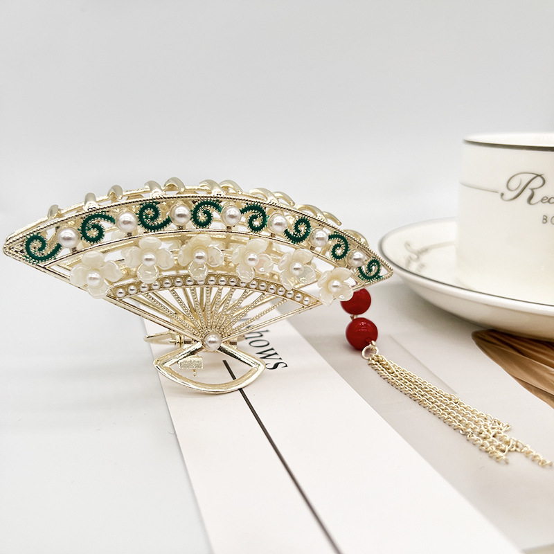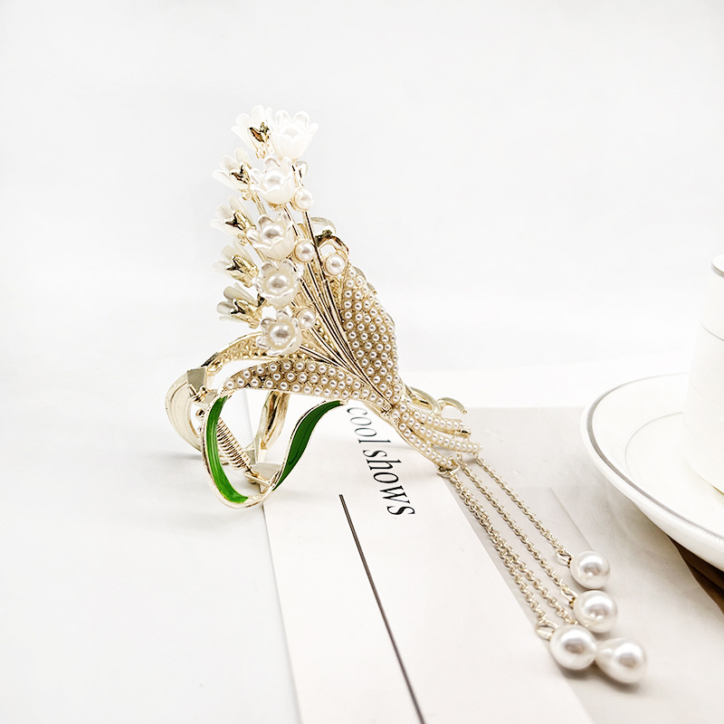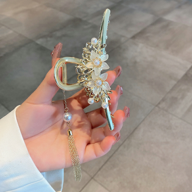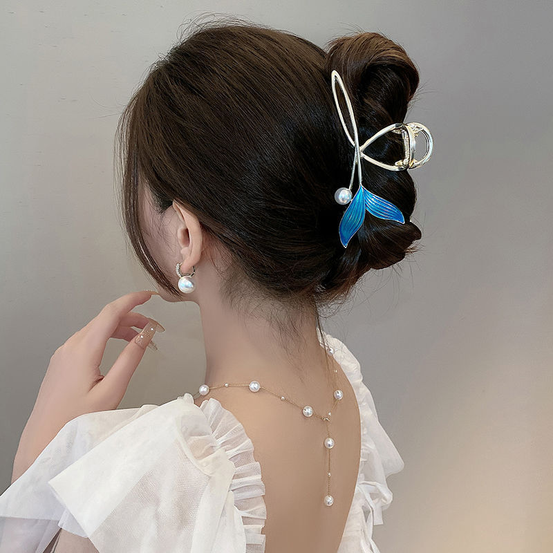 时尚轻奢精致超仙珍珠贝壳海星流苏抓夹大号后脑勺鲨鱼夹潮款头饰