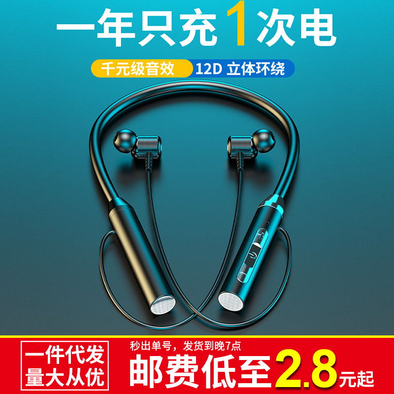 爆款无线蓝牙耳机挂脖运动双耳入耳颈挂式超长待机续航 跨境代发