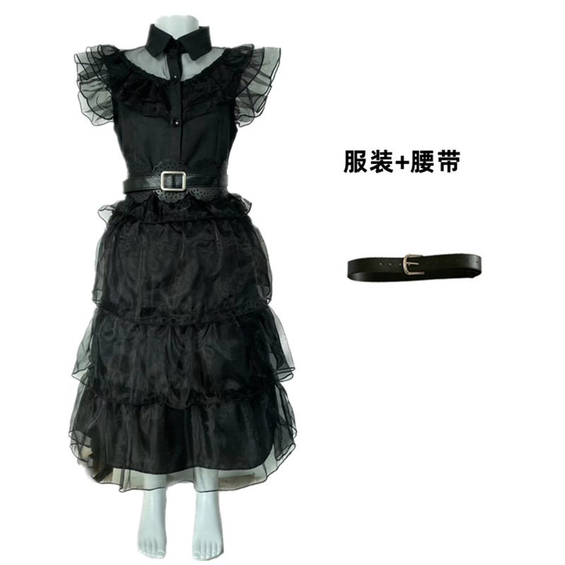 现货亚当斯一家星期三cos服wednesday同款黑色连衣裙cosplay动漫