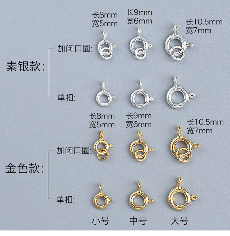 | S925 Sterling Silver: Gold 7mm Buckle + Closed Ring(S925纯银:金色7mm扣+闭口圈) | USD $1.01 | 999999 piece available |