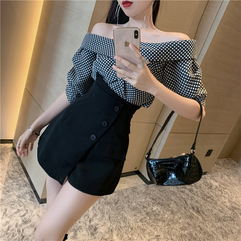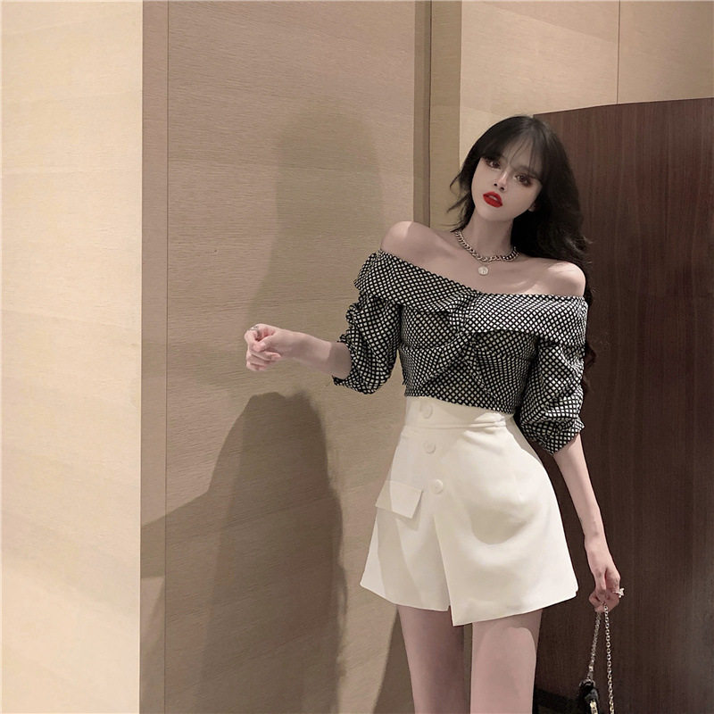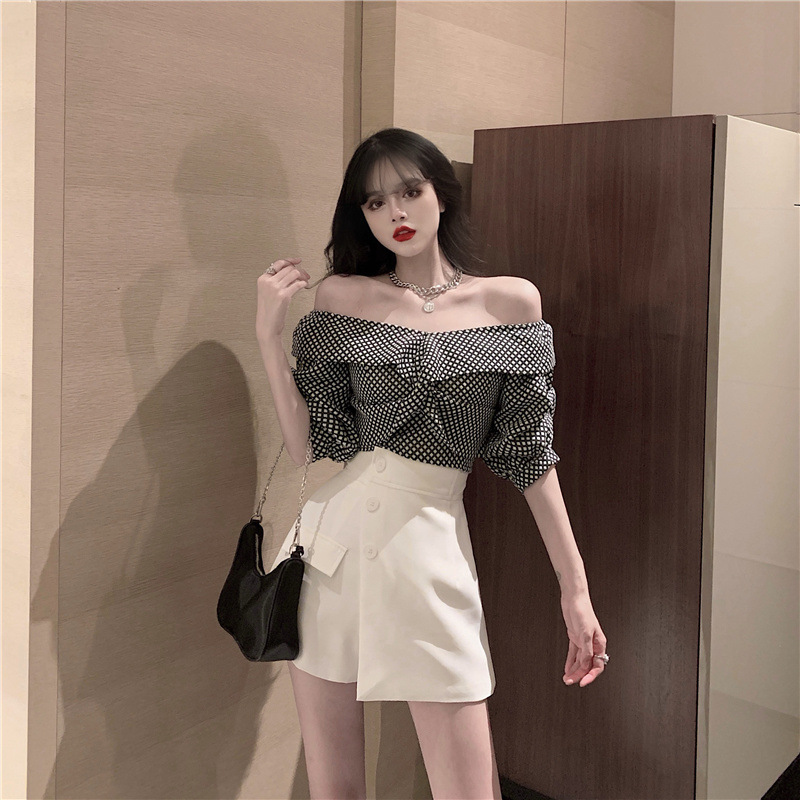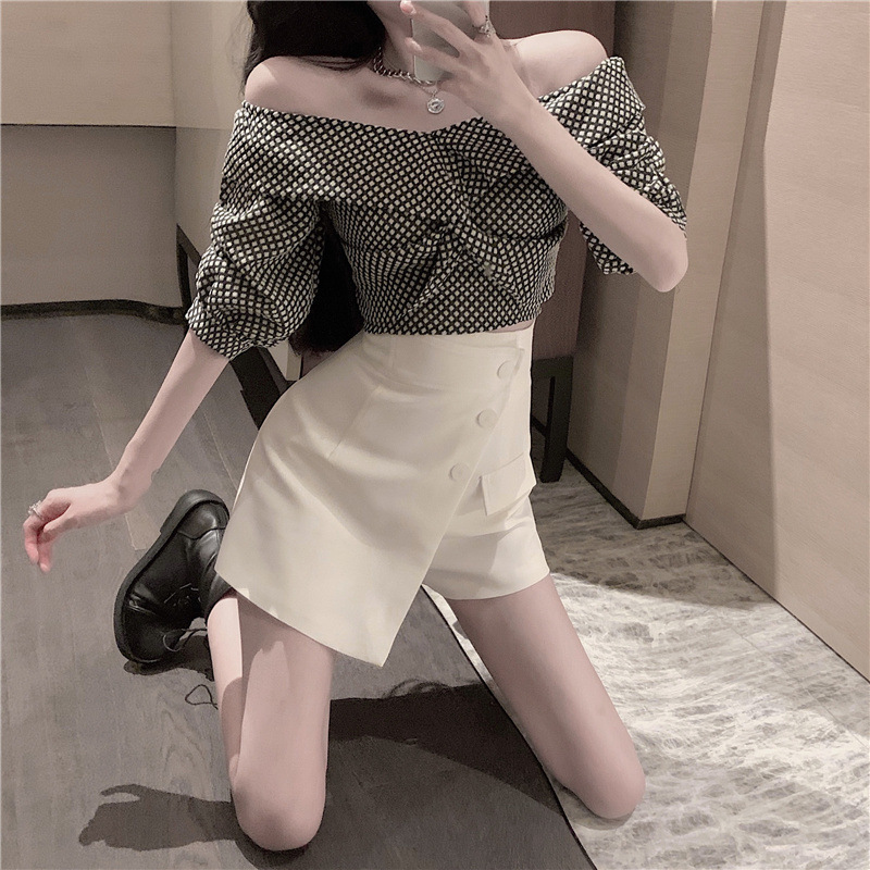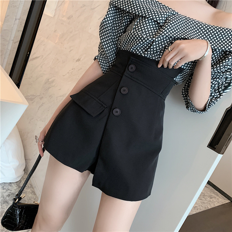 不规则阔腿短裤2023女学生春夏新款高腰显瘦黑白色A字小个子裤子