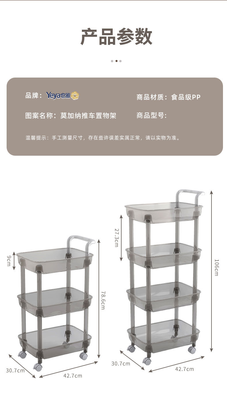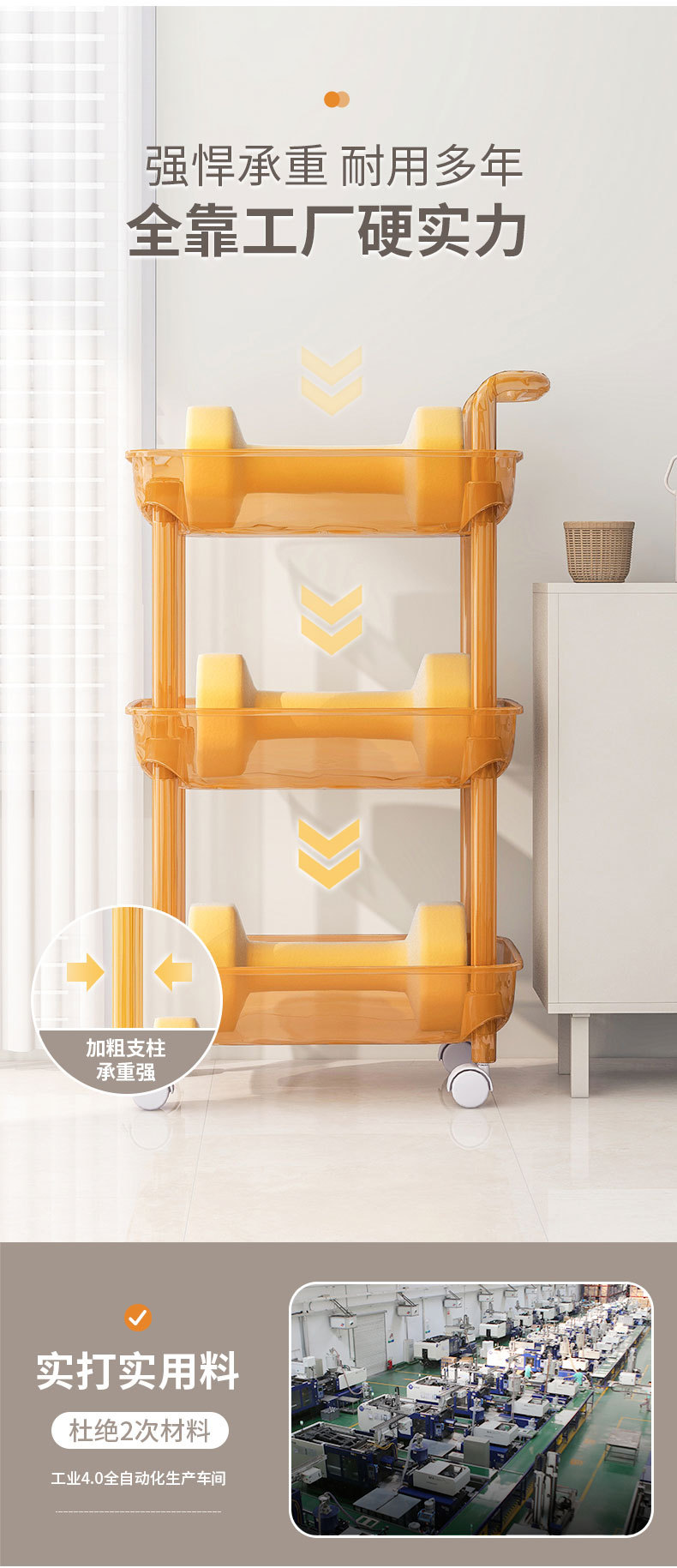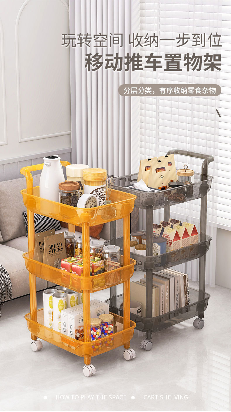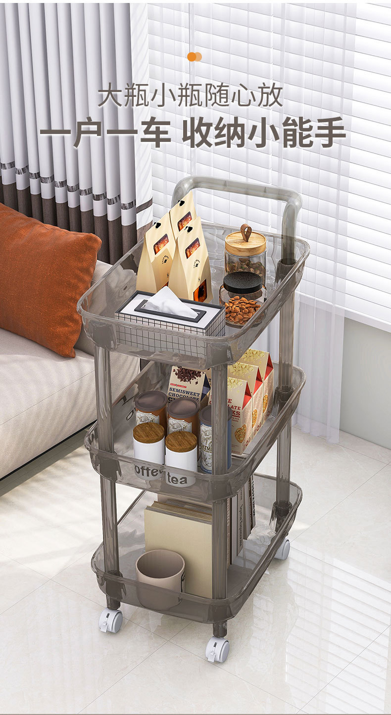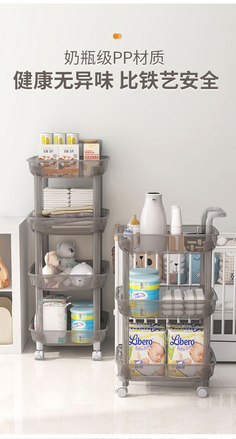 塑料置物落地零食透明小推车置物架厨房收纳置物可移动带轮卧室pp