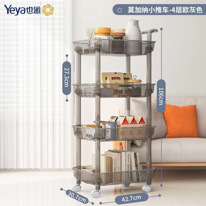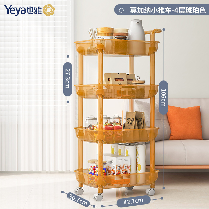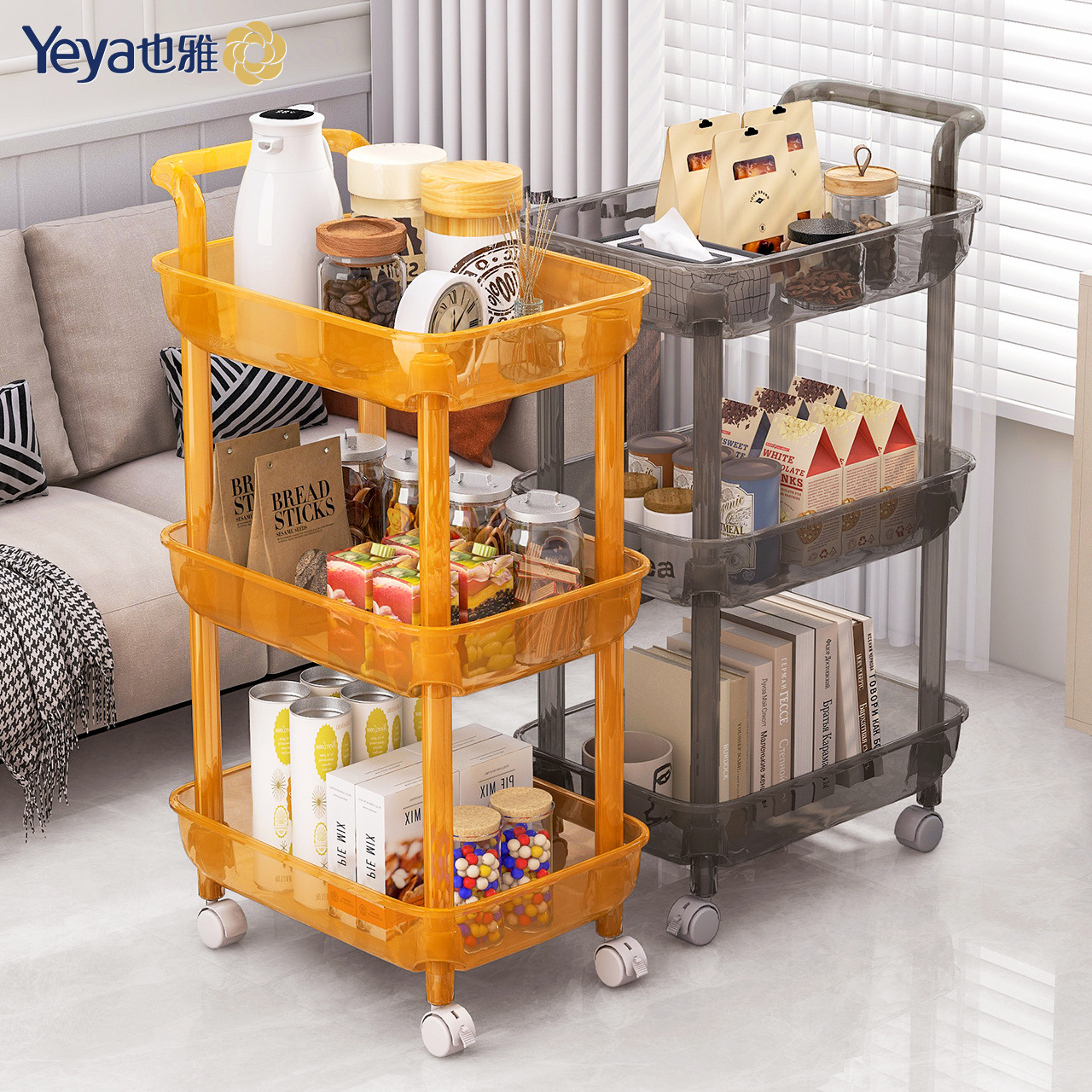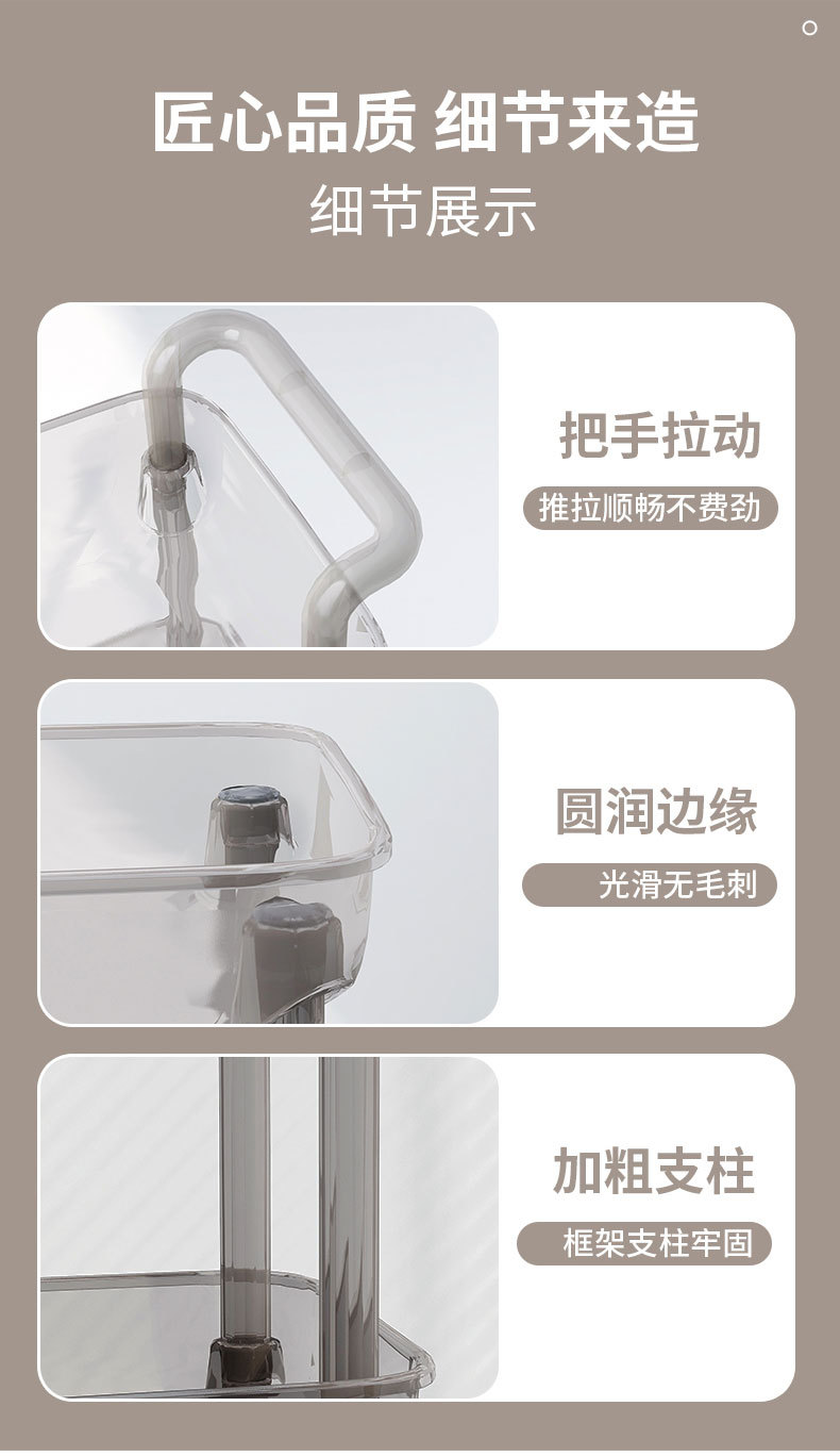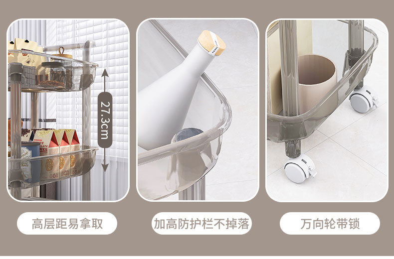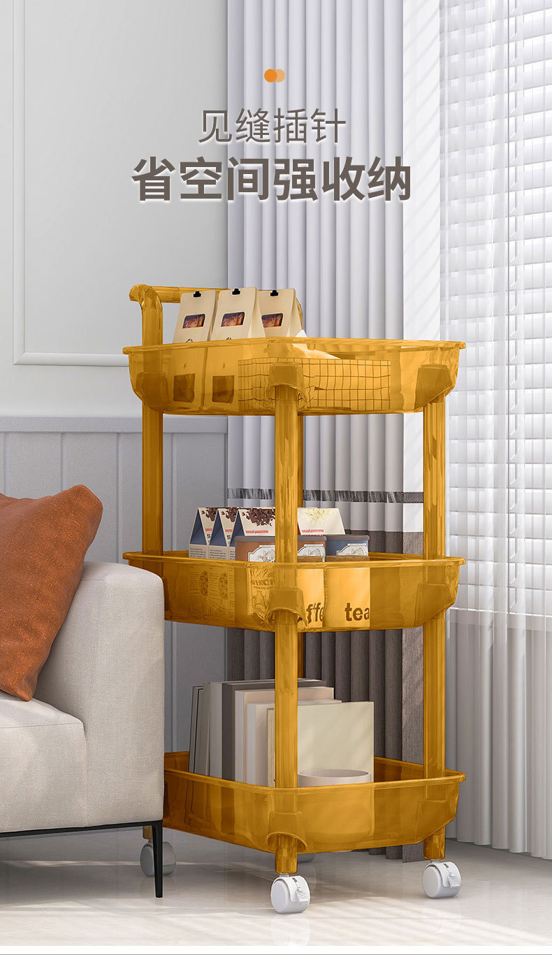 塑料置物落地零食透明小推车置物架厨房收纳置物可移动带轮卧室pp