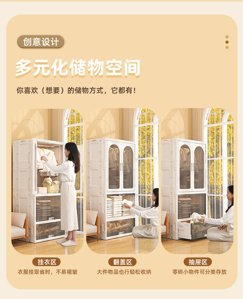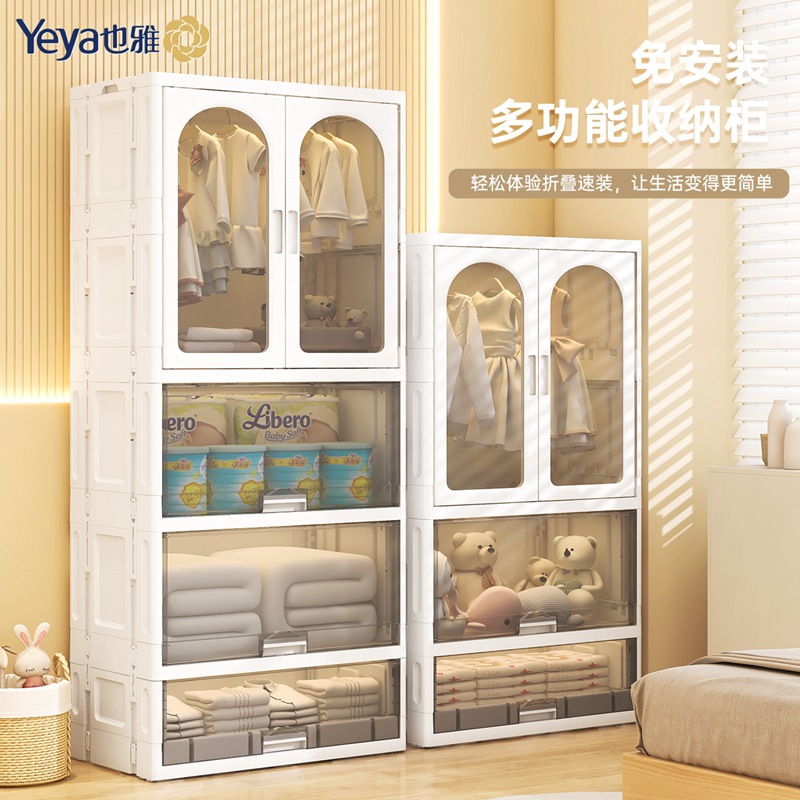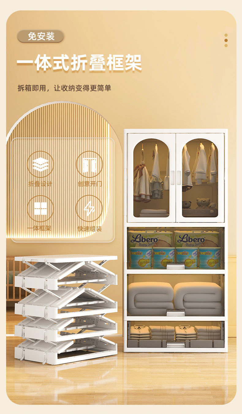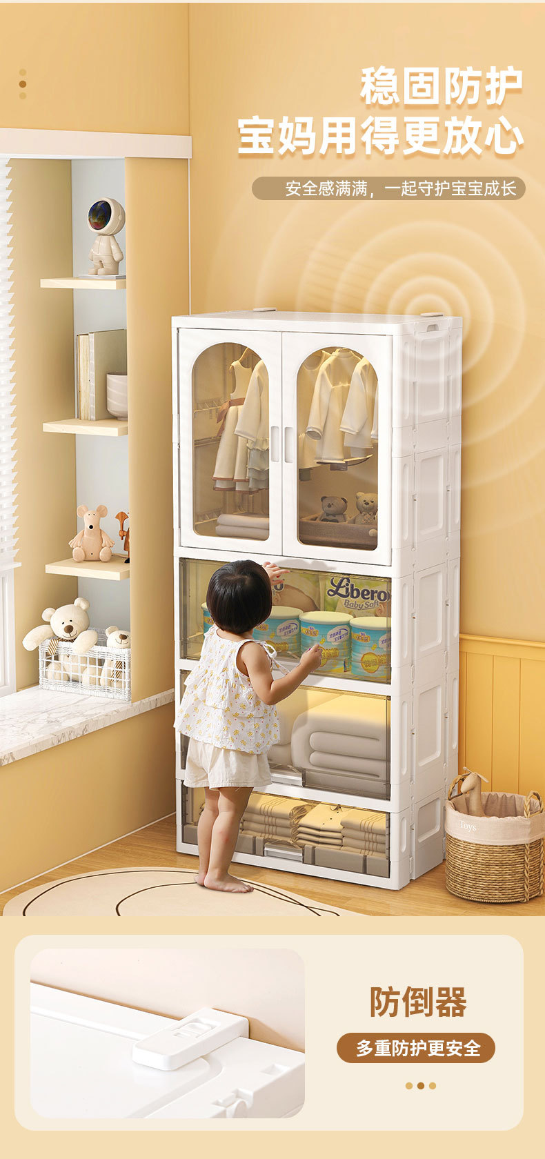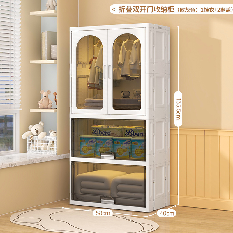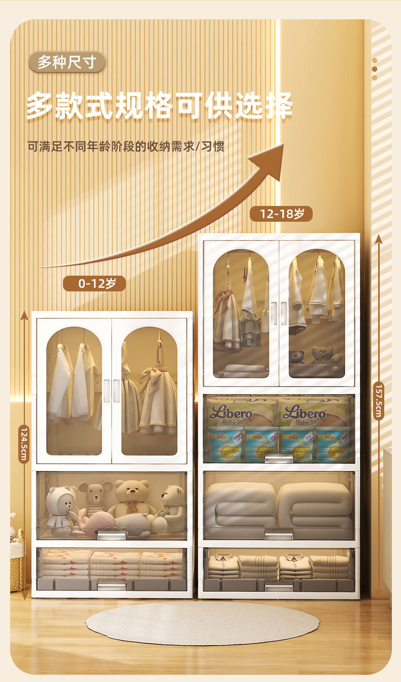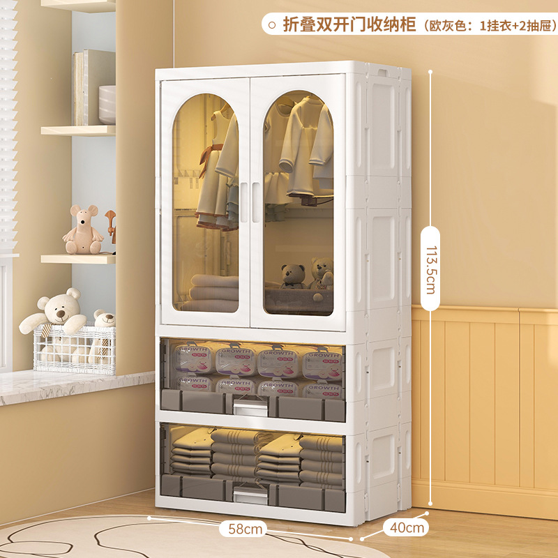 儿童简易衣柜多层收纳柜免安装双开门塑料收纳柜宝宝对开门储物柜