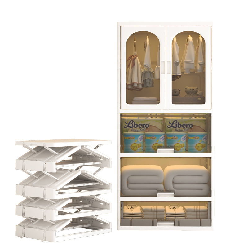 children‘s simple wardrobe multi-layer storage cabinet installation-free double-door plastic storage cabinet baby double-door locker