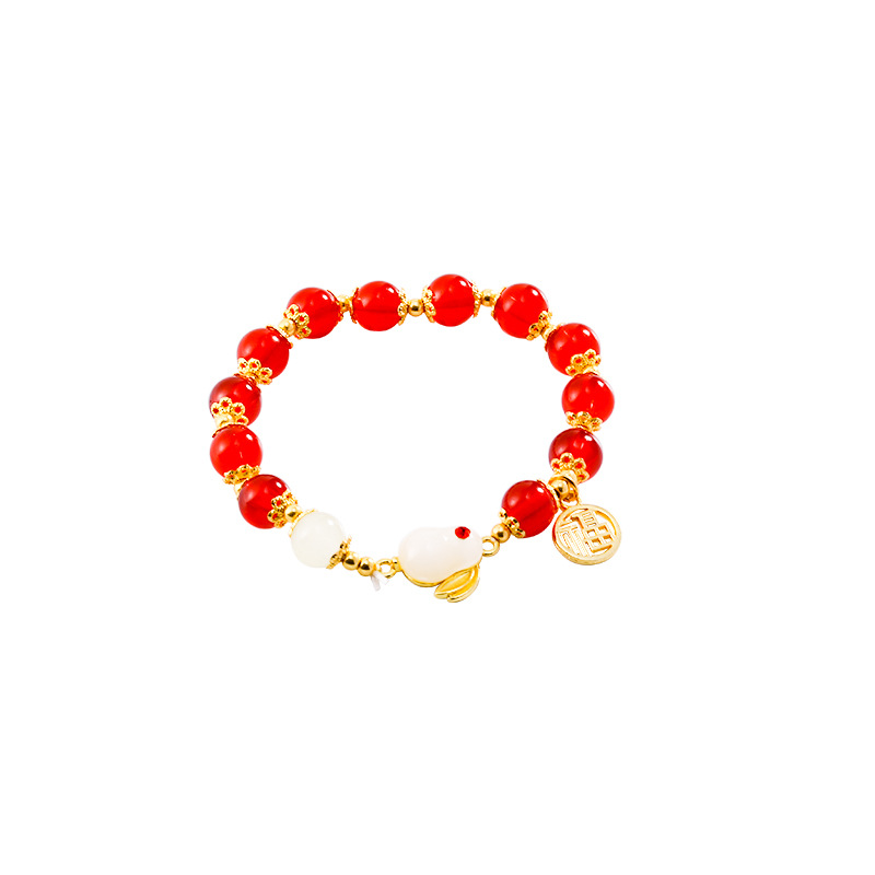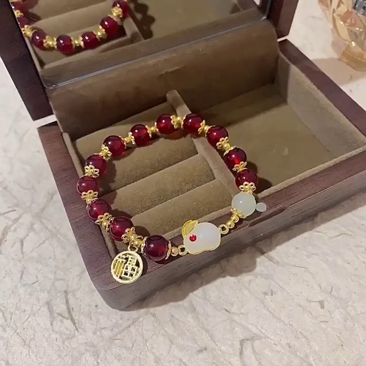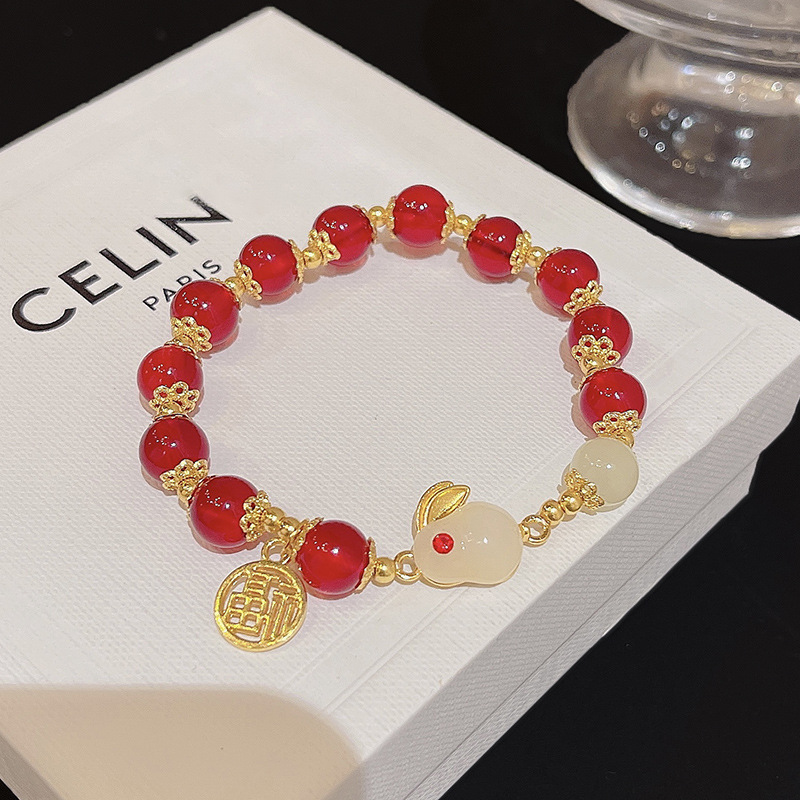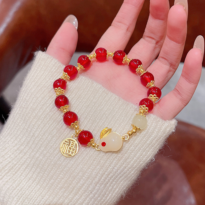 饰品抖音同款相思豆玉兔手链女ins潮生肖玉髓小兔子手串一件批发