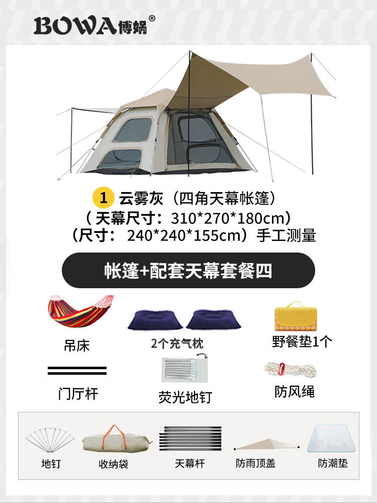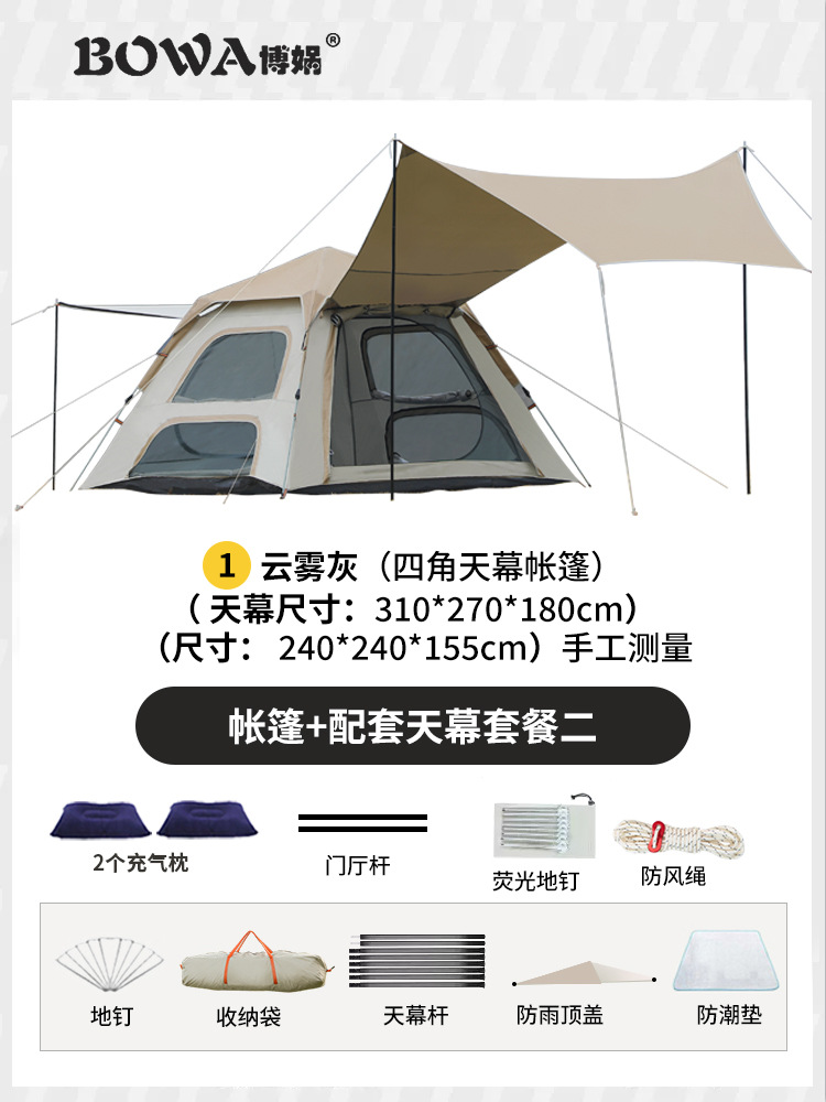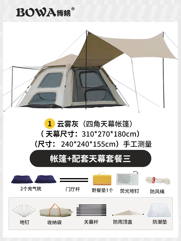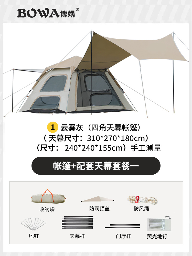 新款天幕帐篷二合一户外全自动速开露营PU牛津布防水帐篷批发