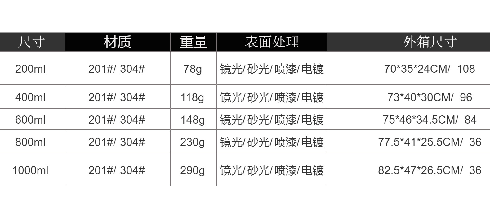 | 301-400ml(301-400ml) | USD $0.0 | 50 piece available |