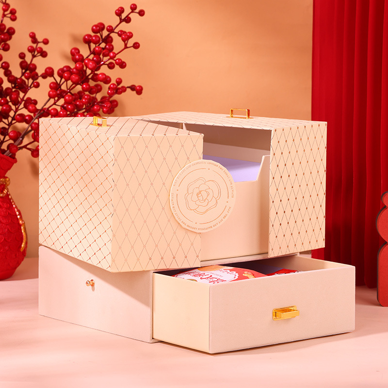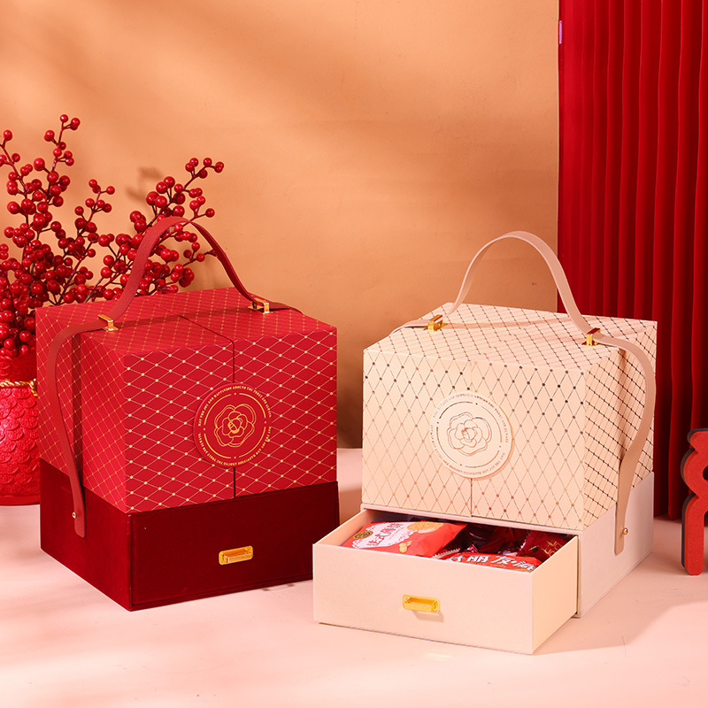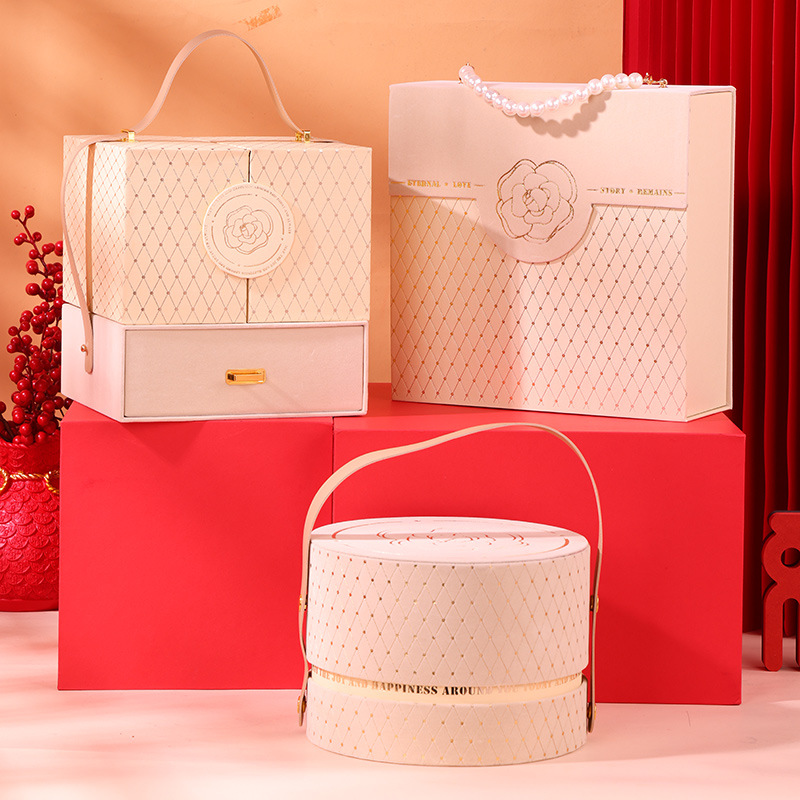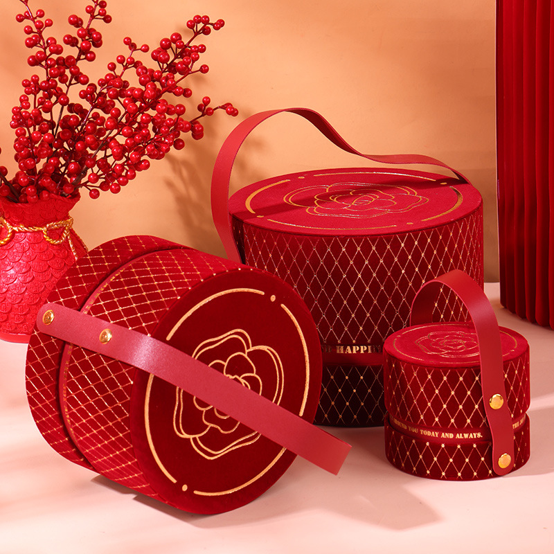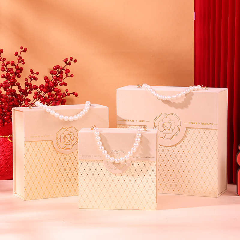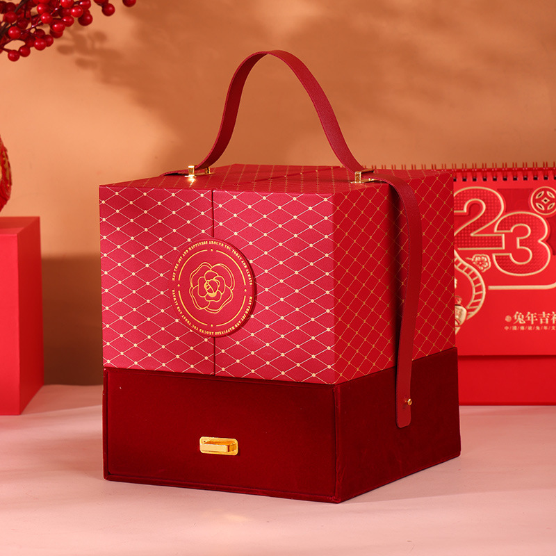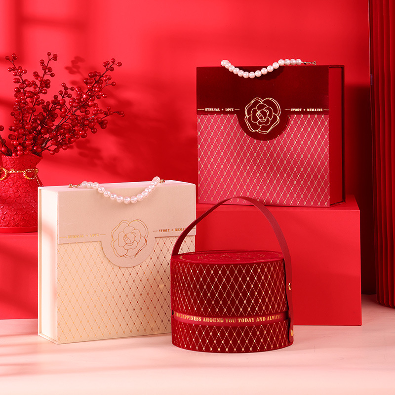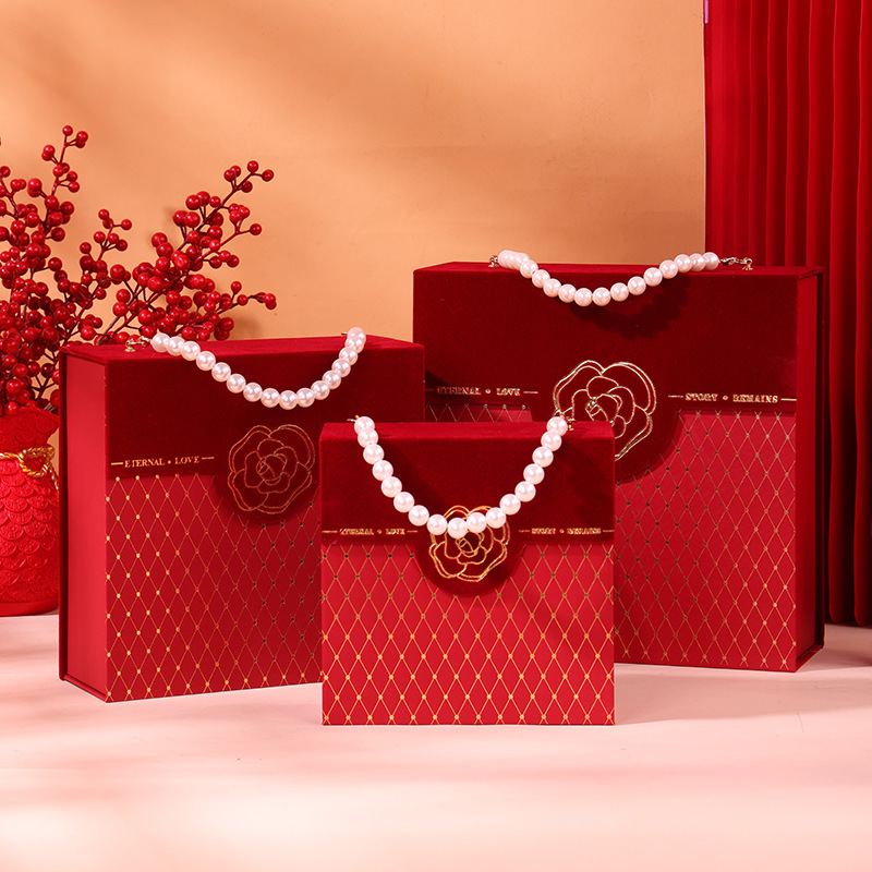 生日礼物盒山茶花伴手礼盒珍珠欧式喜糖盒红色双层抽屉手提