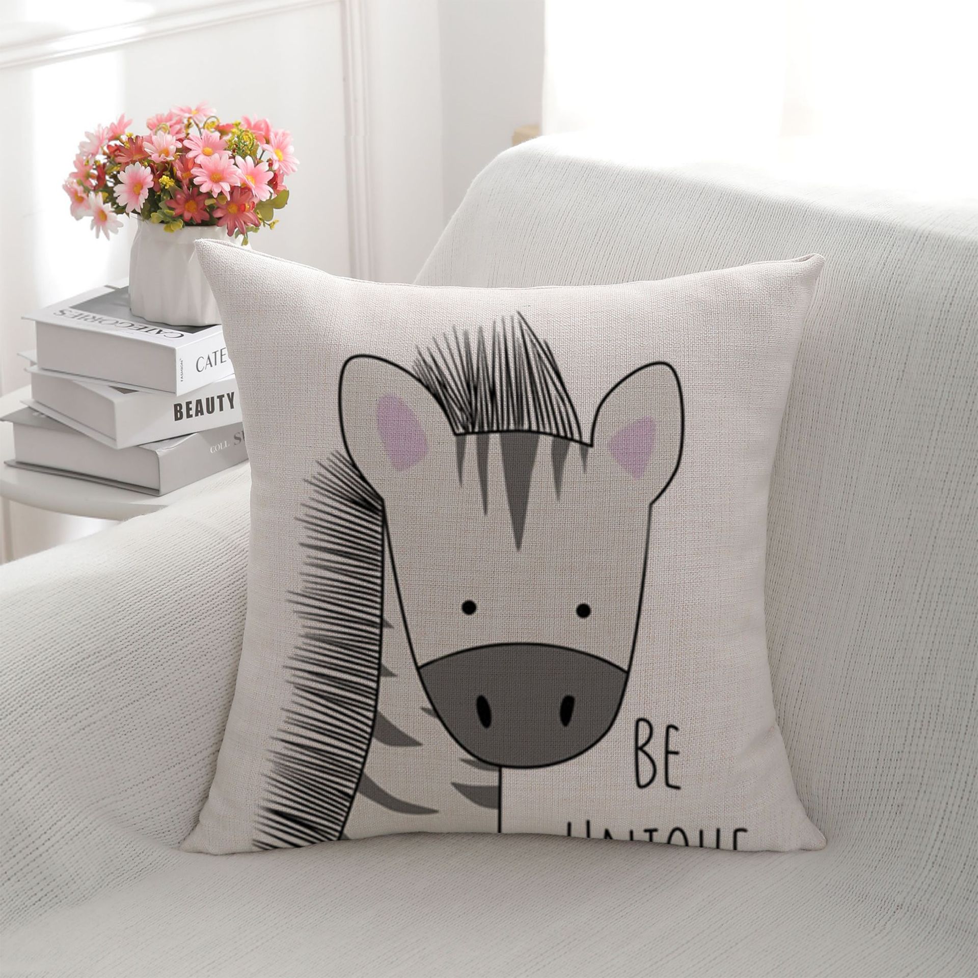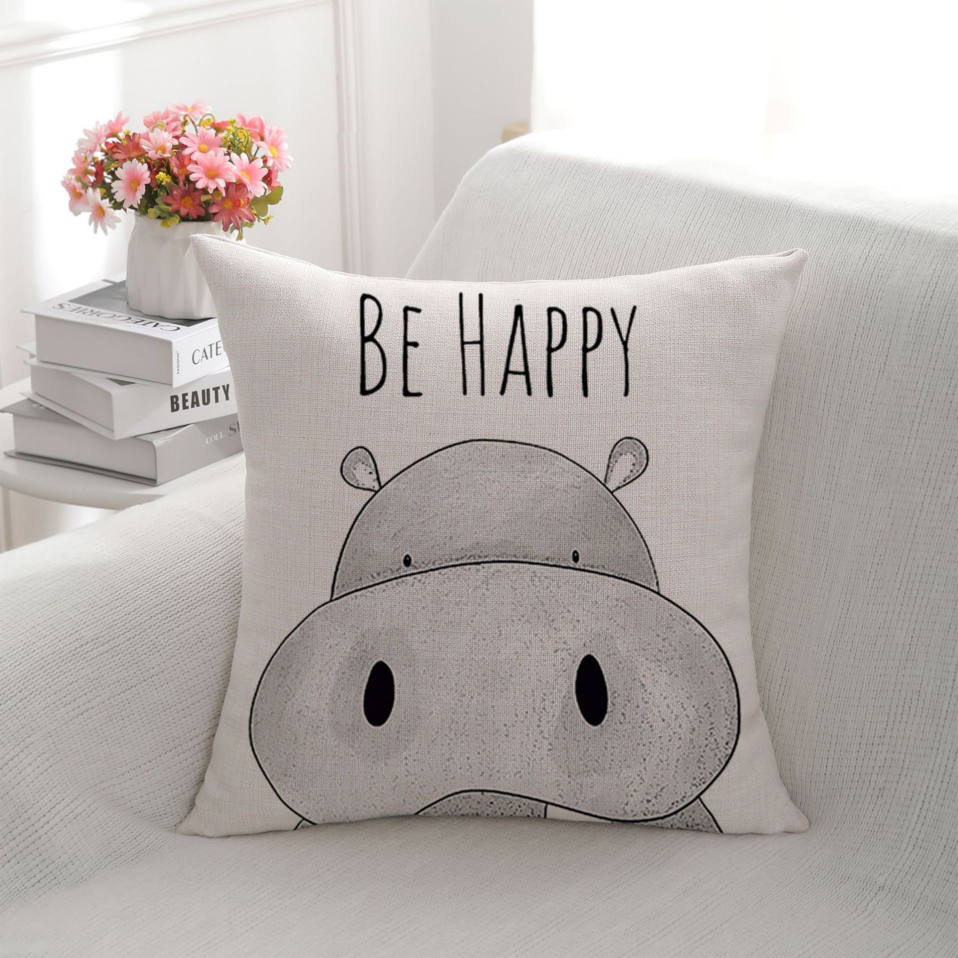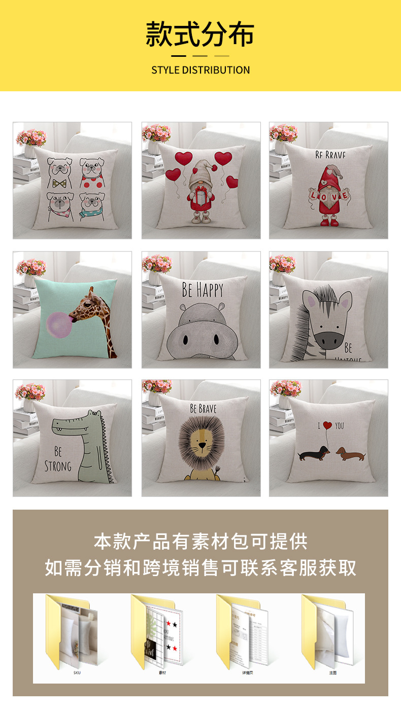 亚马逊热销卡通抱枕套萌趣动物亚麻印花跨境家居客厅沙发靠垫套