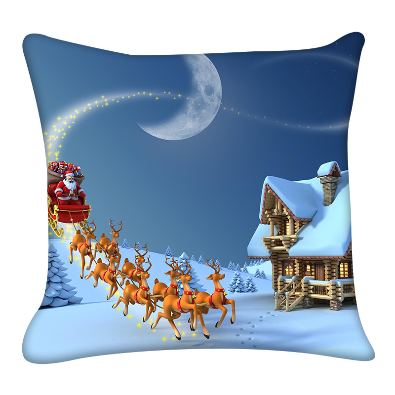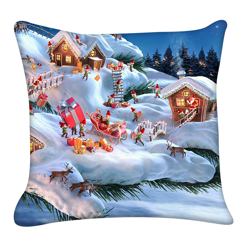 雪人和麋鹿圣诞新年抱枕 跨境新品图案圣诞节可拆洗可爱靠垫枕套
