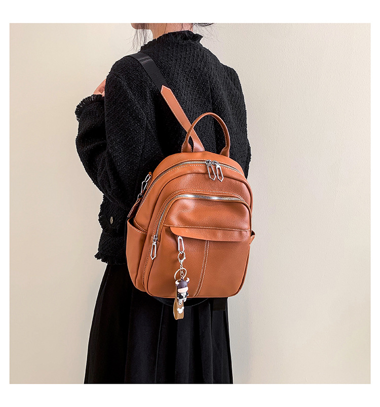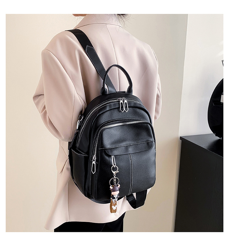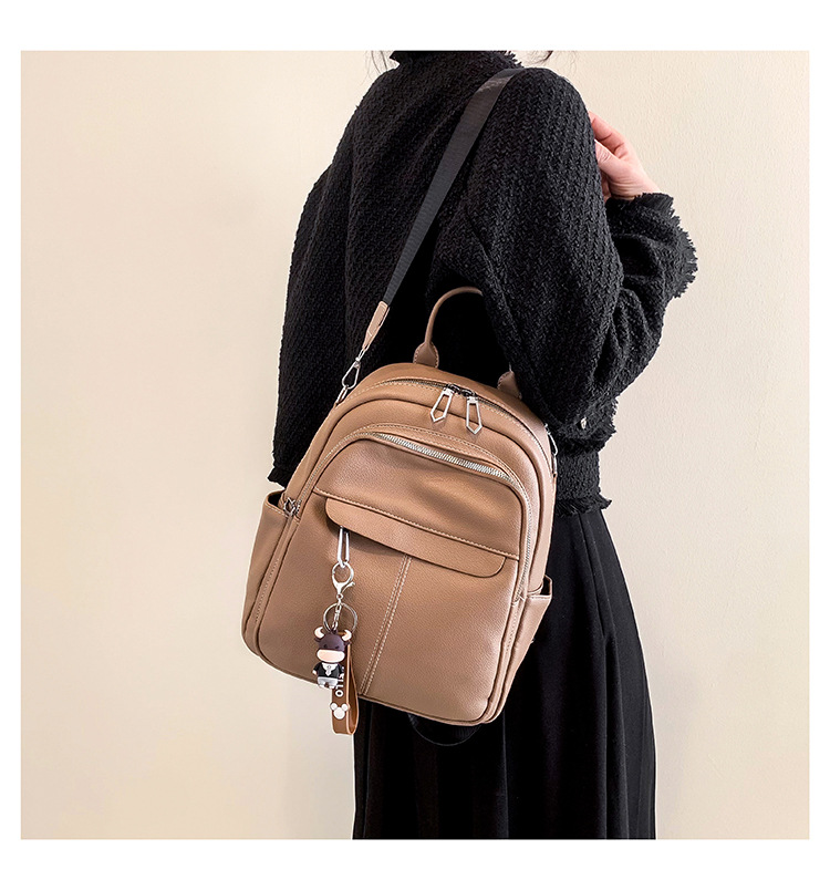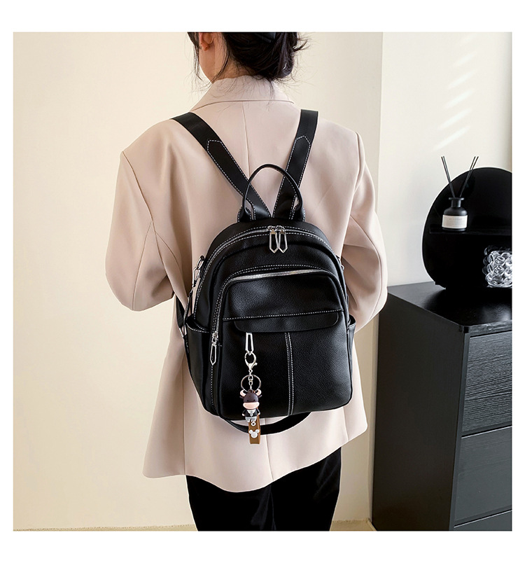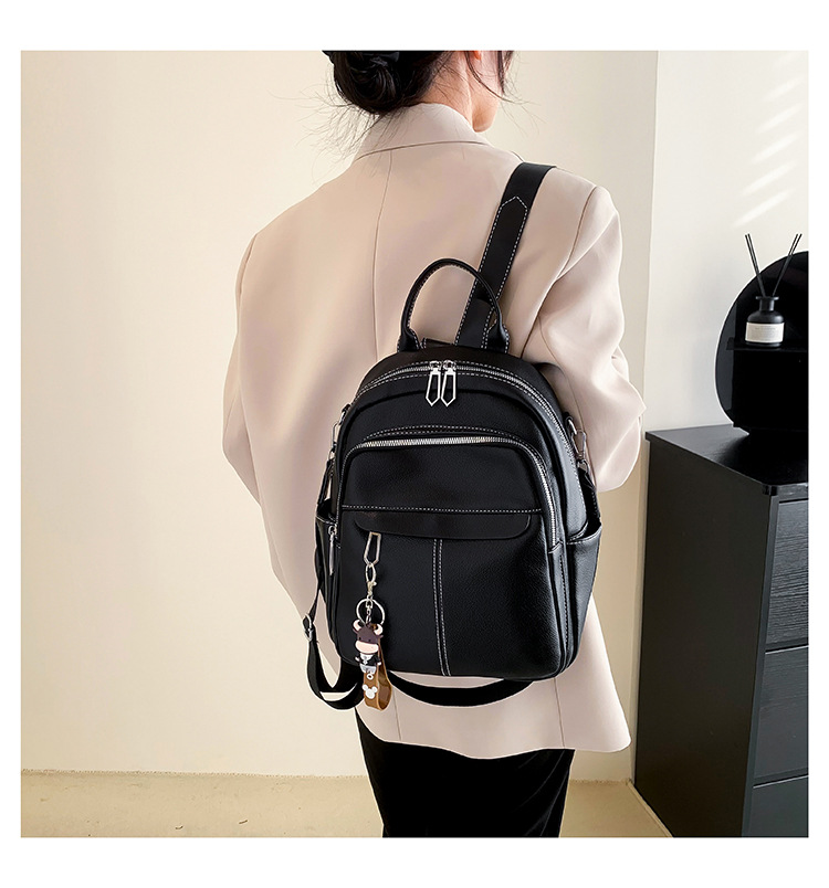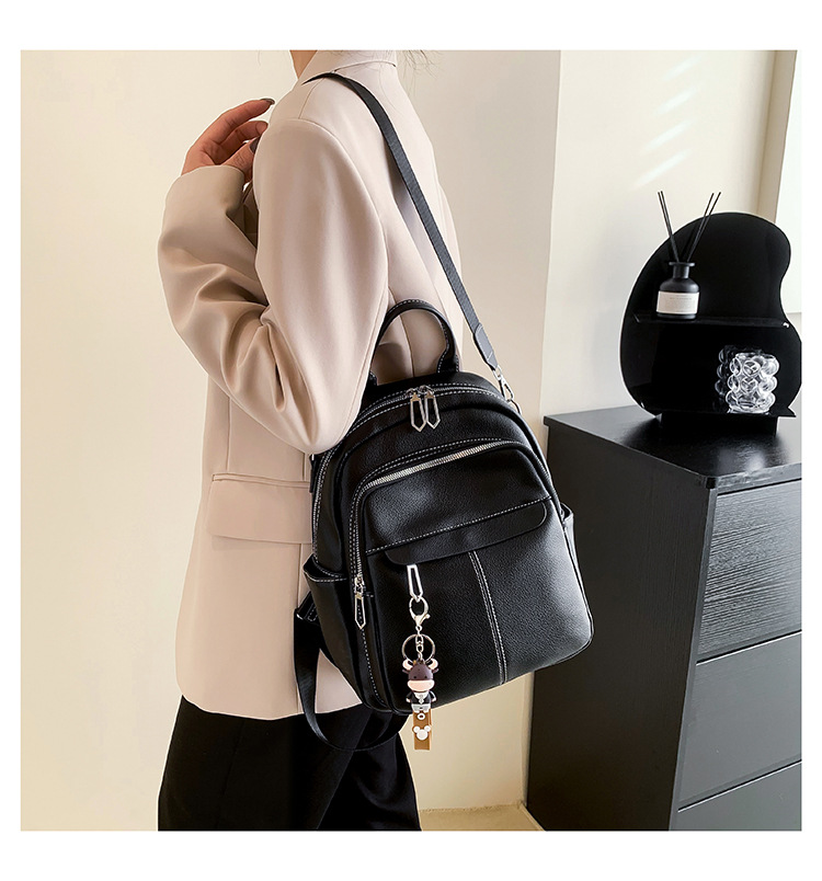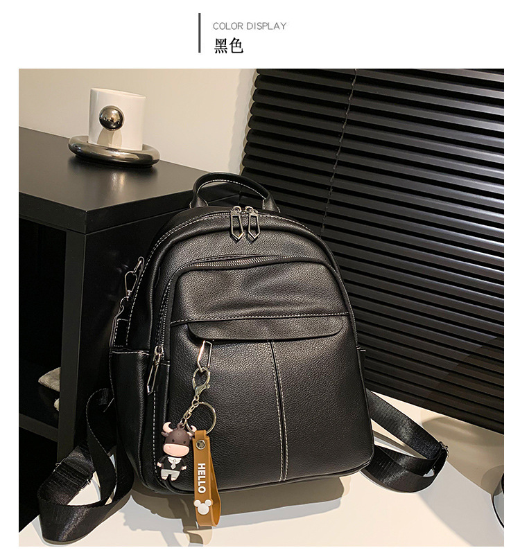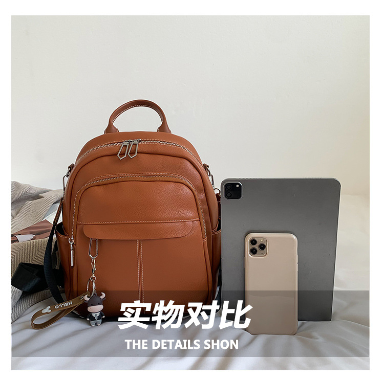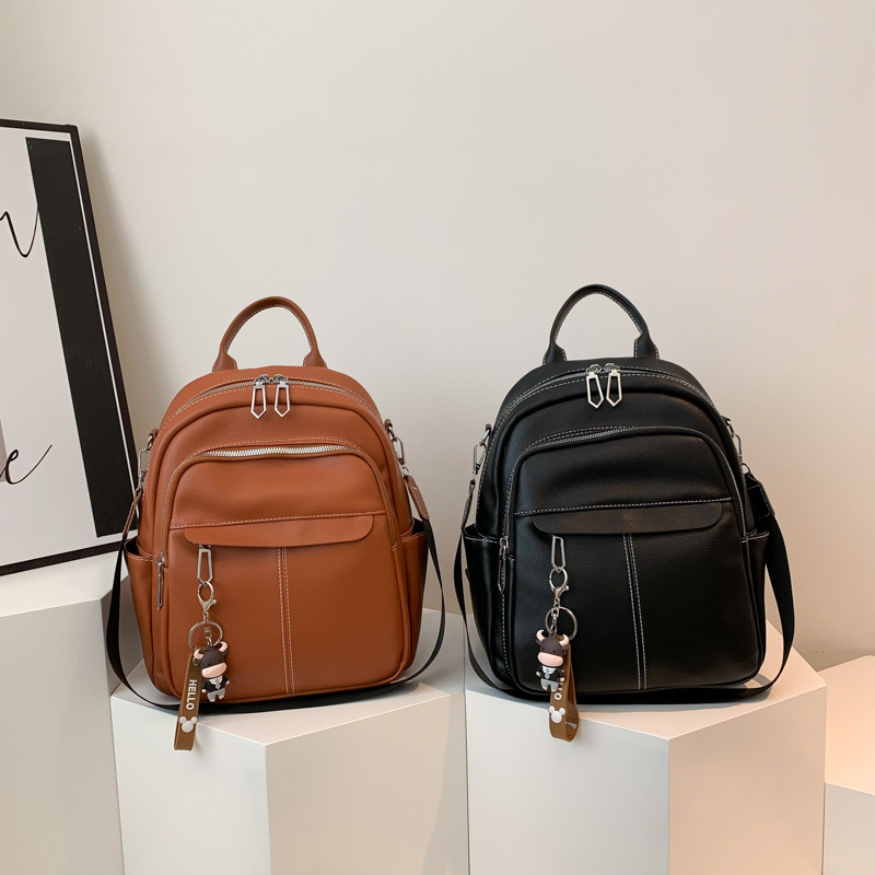 时尚潮流双肩背包女PU软皮2023新款韩版百搭户外出行单肩包