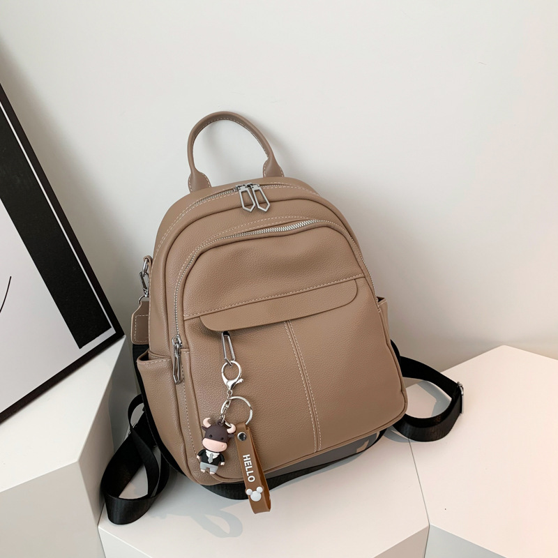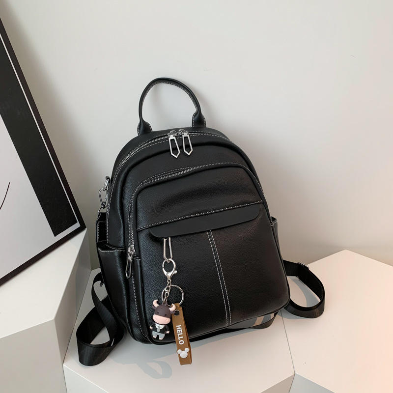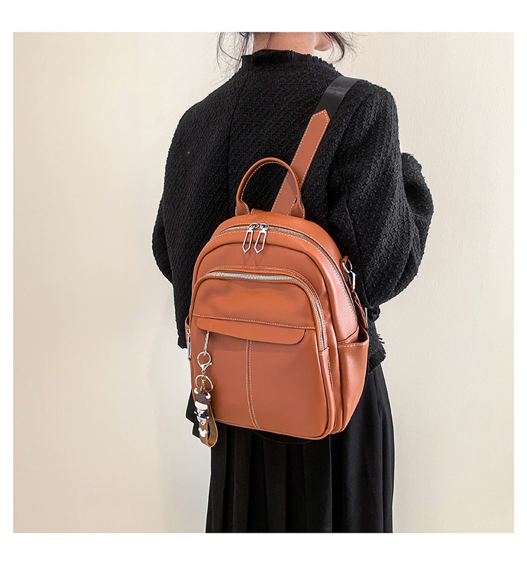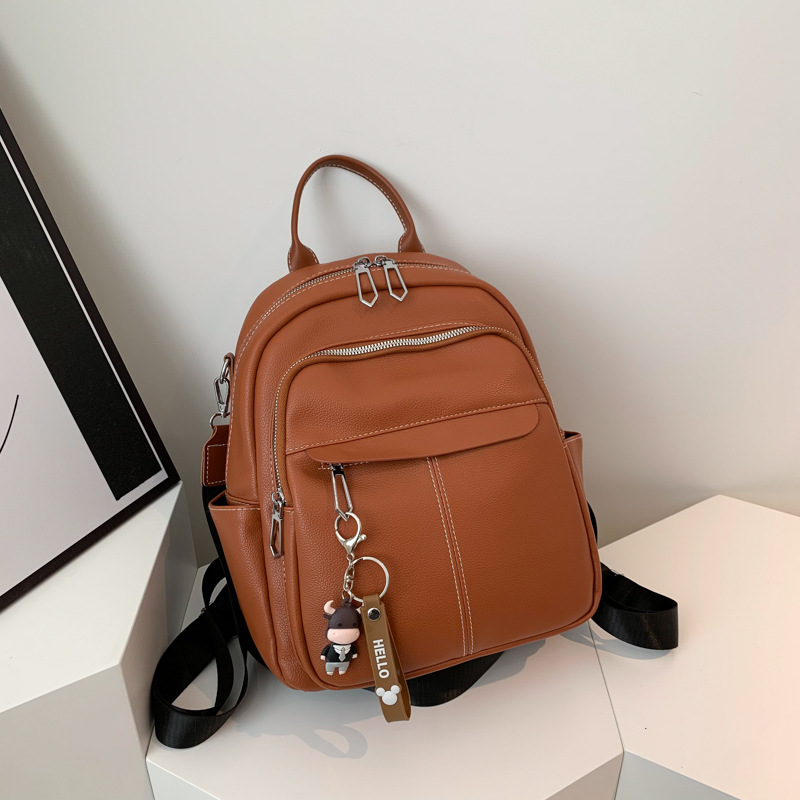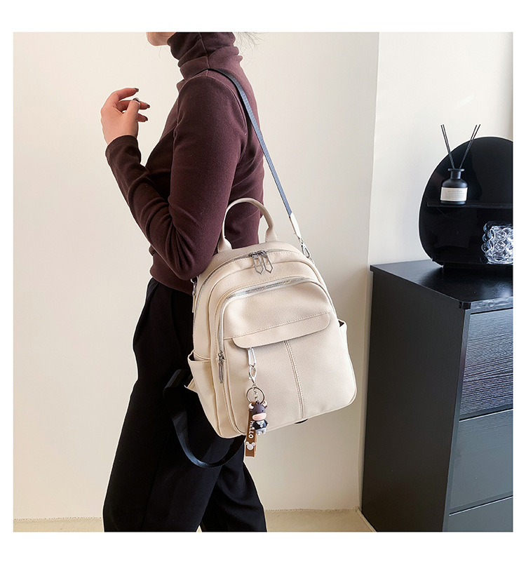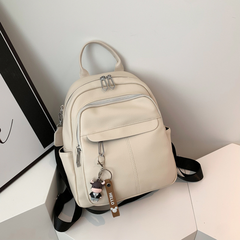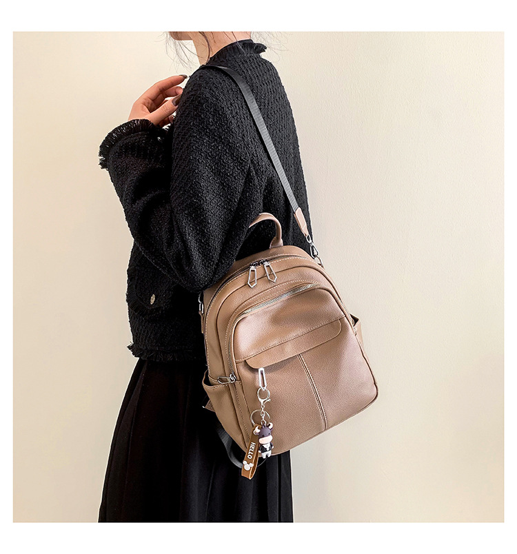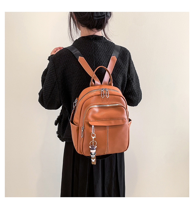 时尚潮流双肩背包女PU软皮2023新款韩版百搭户外出行单肩包