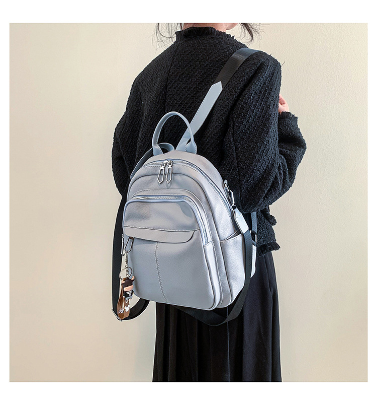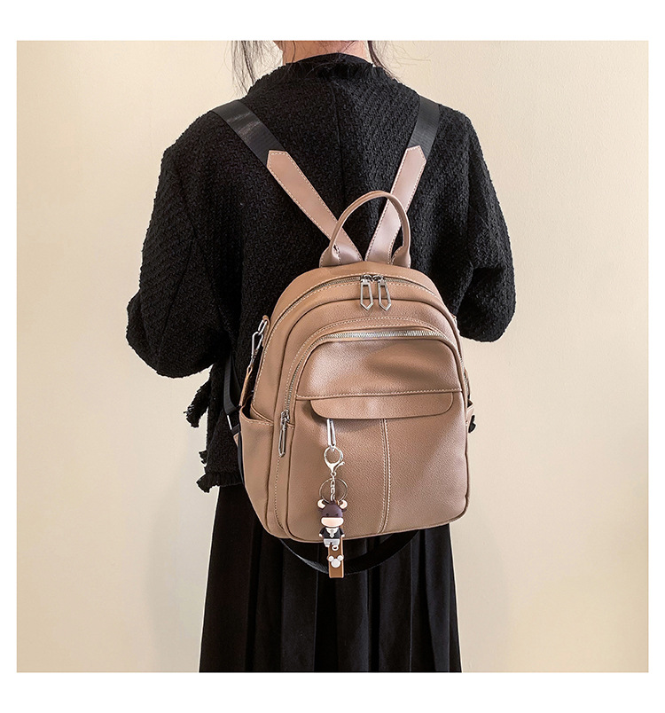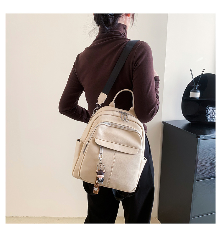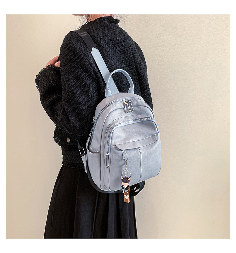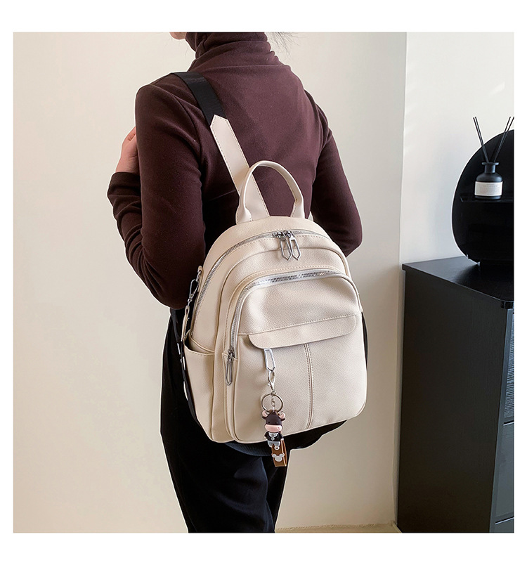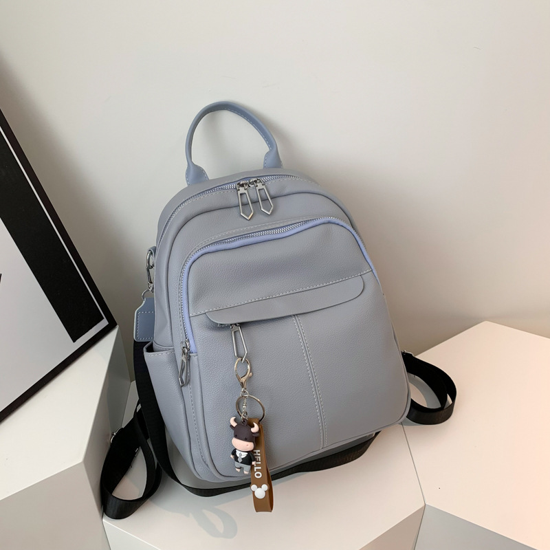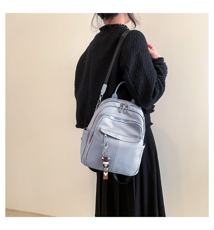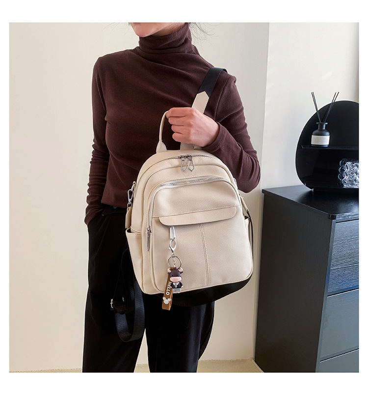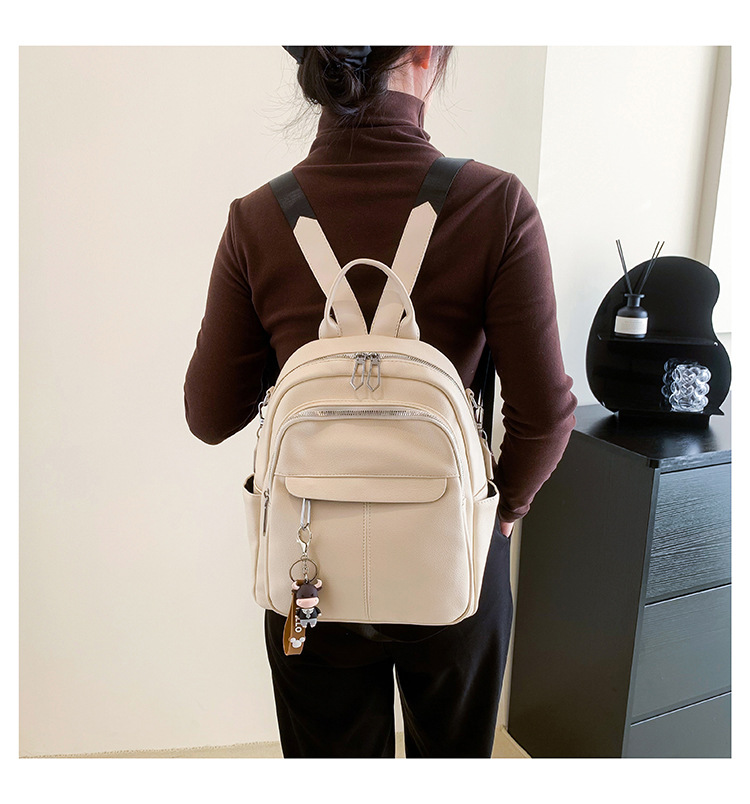 时尚潮流双肩背包女PU软皮2023新款韩版百搭户外出行单肩包