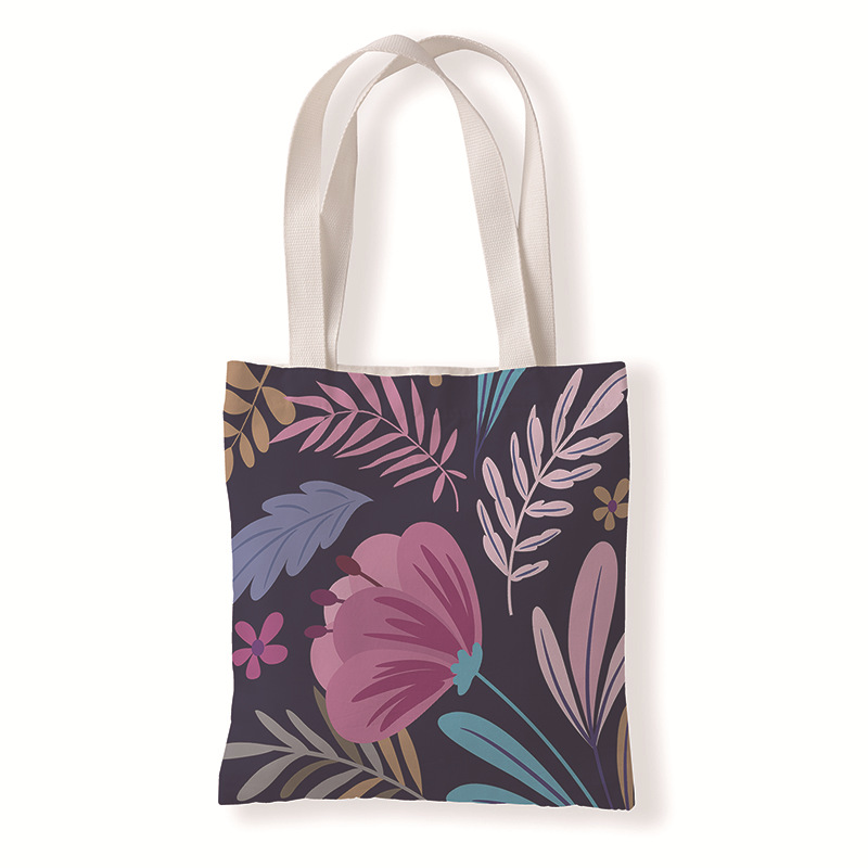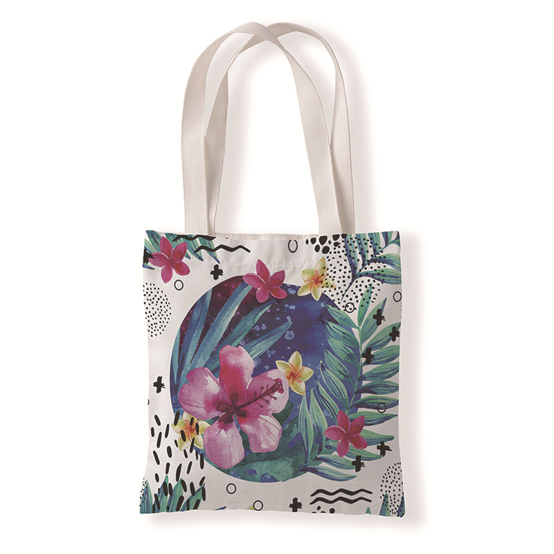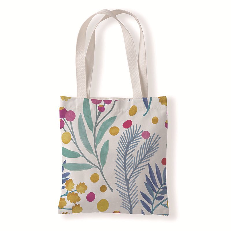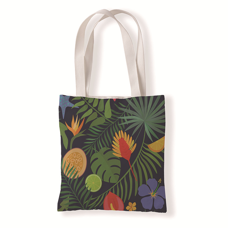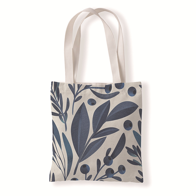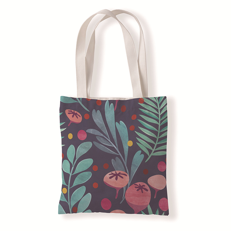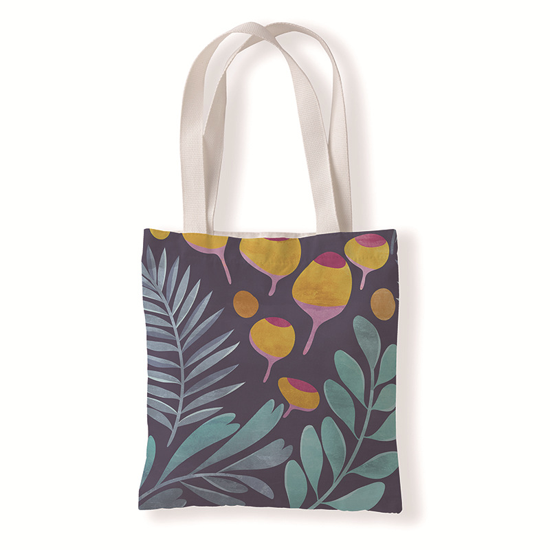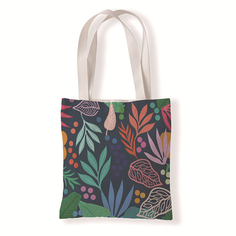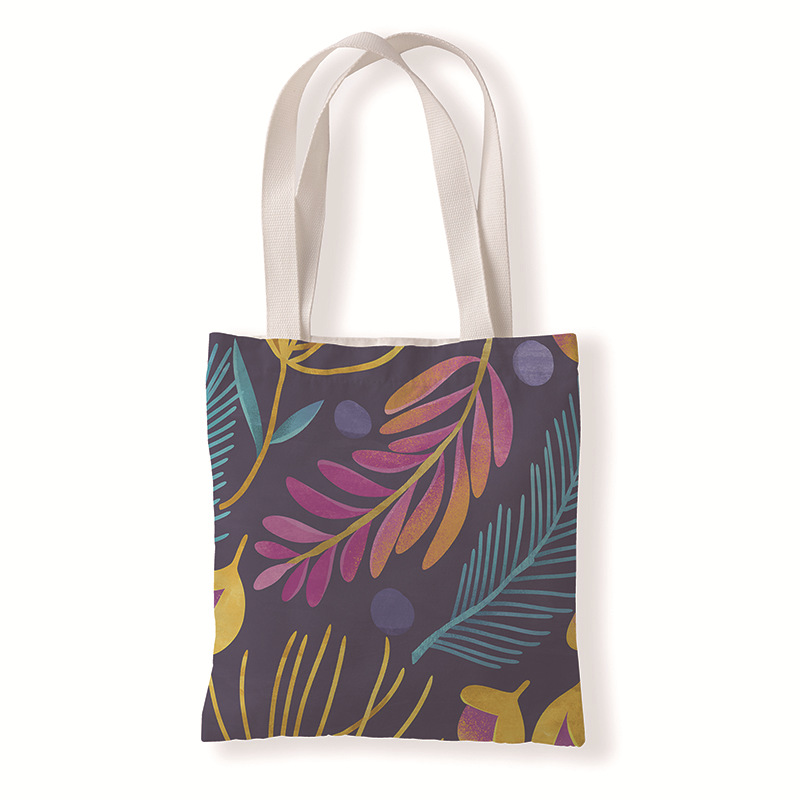 树叶几何印花手提时尚购物袋定制休闲零钱袋文艺单肩手提帆布袋