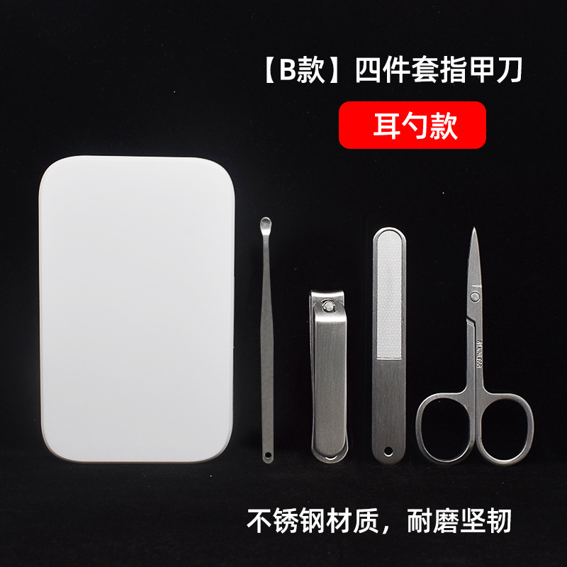 批发四件套指甲刀不锈钢指甲钳修甲美甲工具指甲剪套装礼品印LOGO