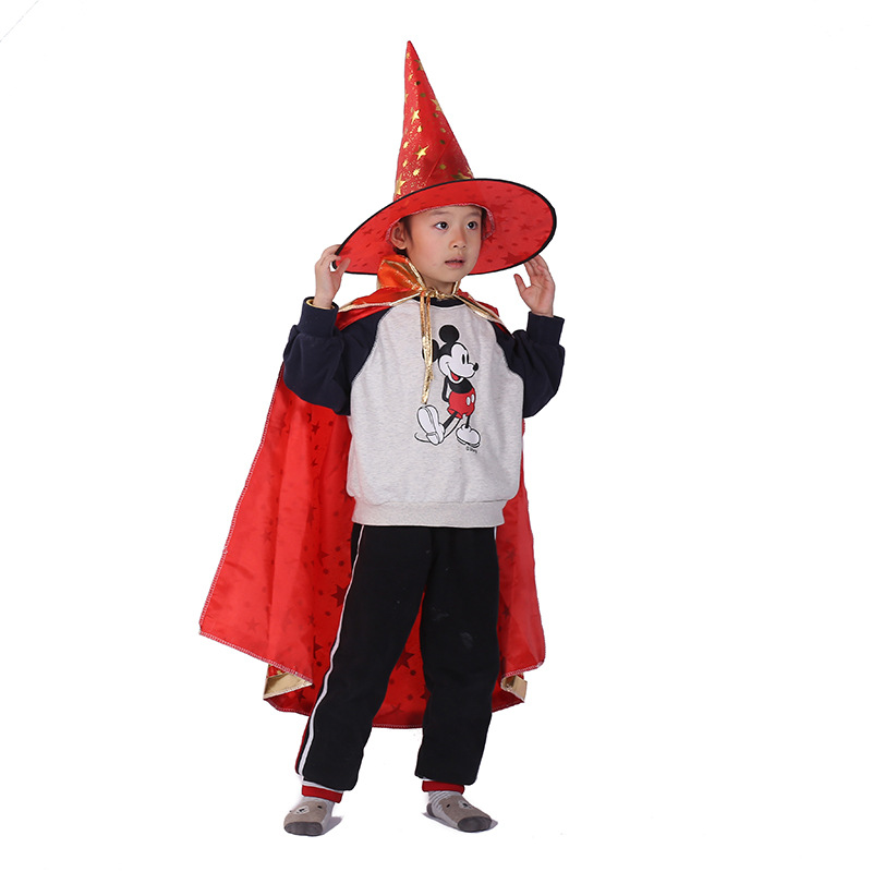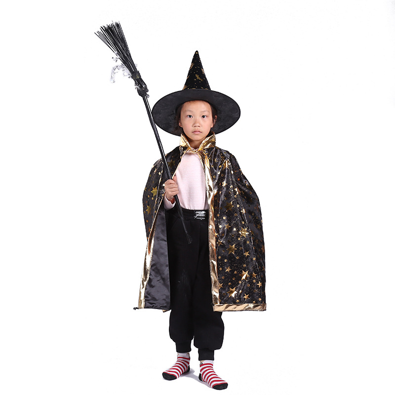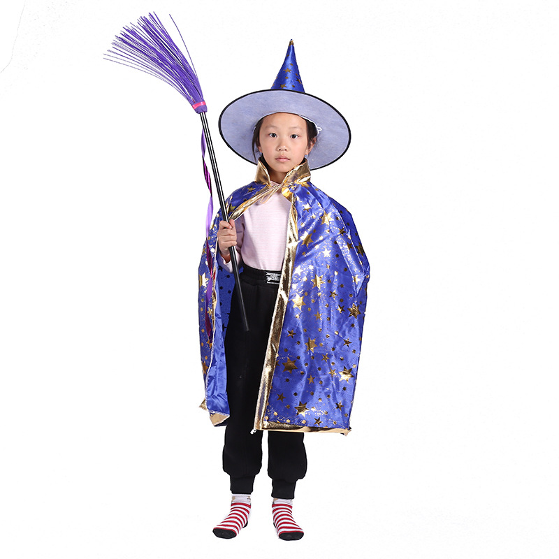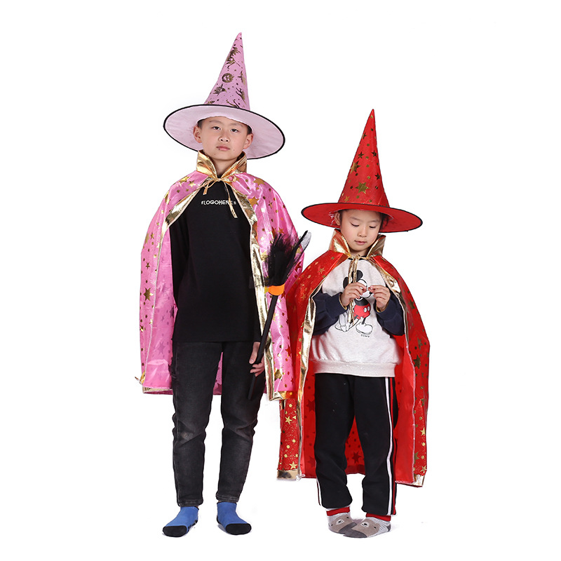 万圣节披风儿童化妆舞会五角星披风斗蓬 cosplay巫婆帽子服饰道具