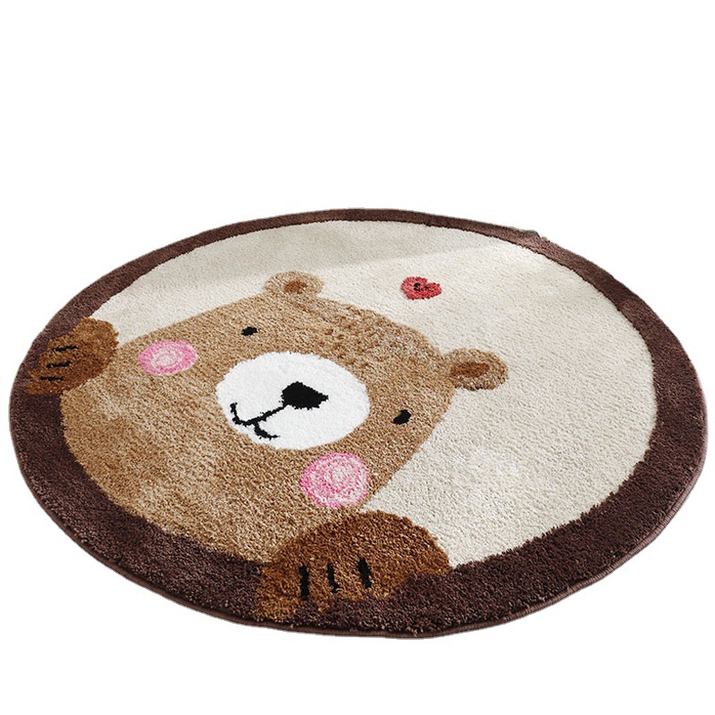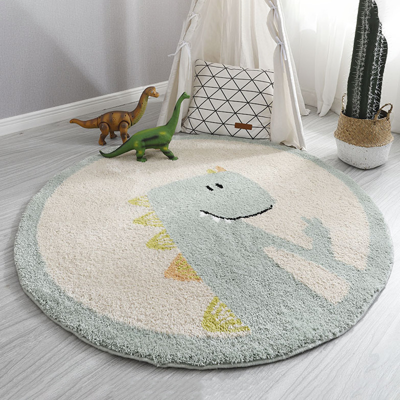 卡通圆形卧室床边毯儿童房间仿羊绒爬行垫家用客厅满铺毛绒