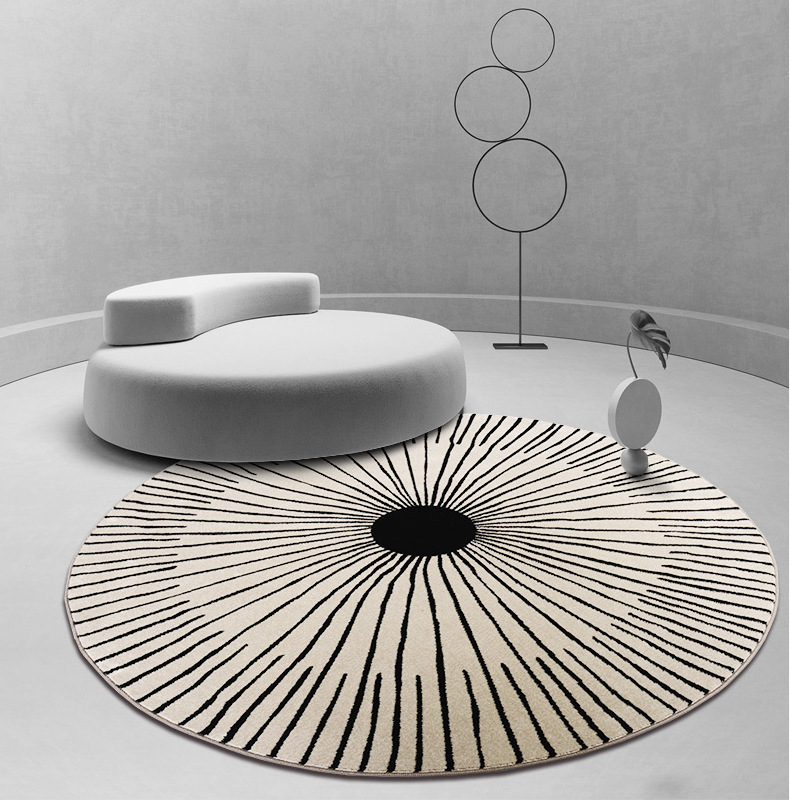 现代简约风圆形仿羊绒条纹地毯卧室客厅脚垫家用吊篮几何线条地垫
