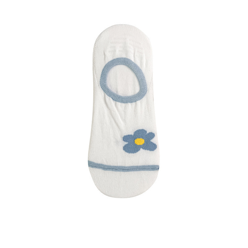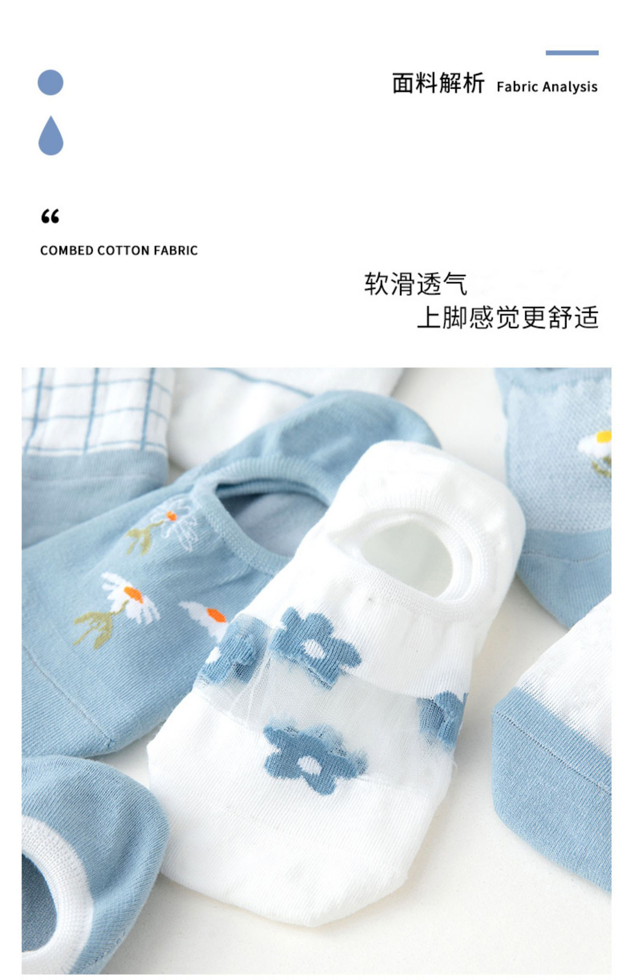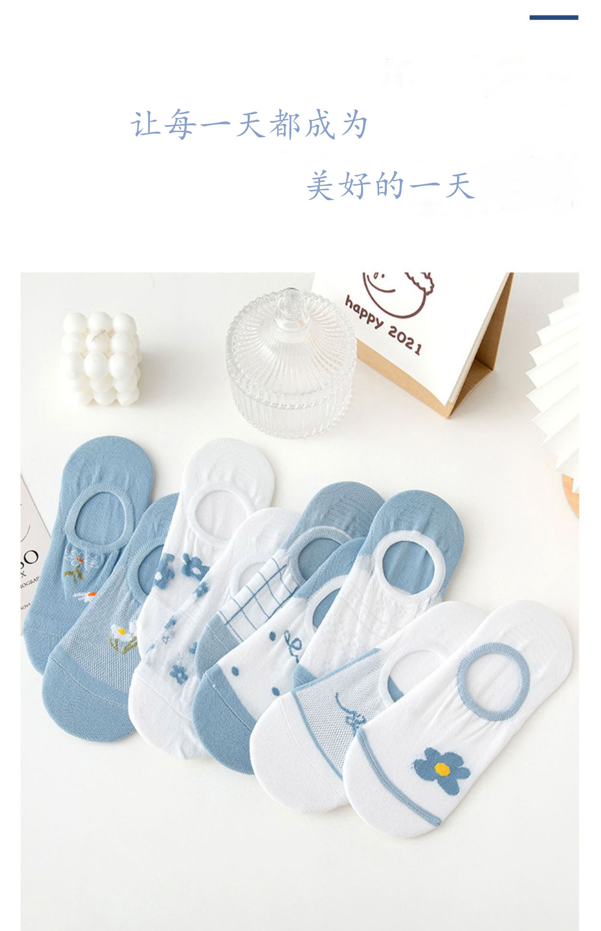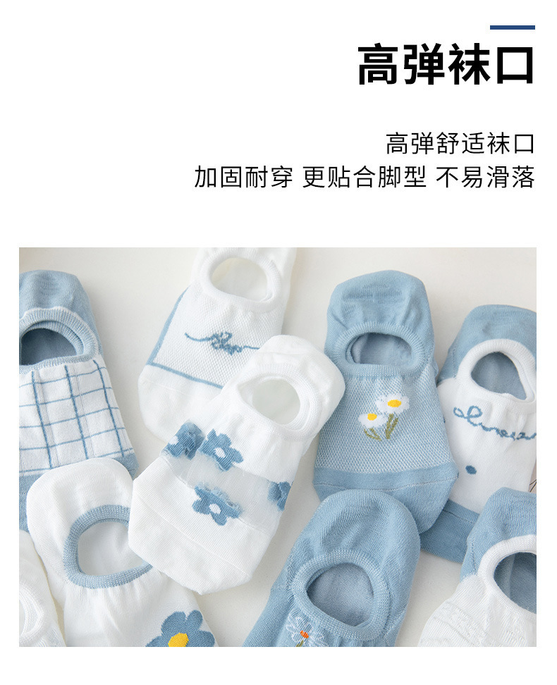 袜子女船袜夏季薄款蓝色小花隐形袜硅胶防滑不掉跟女生浅口短袜子