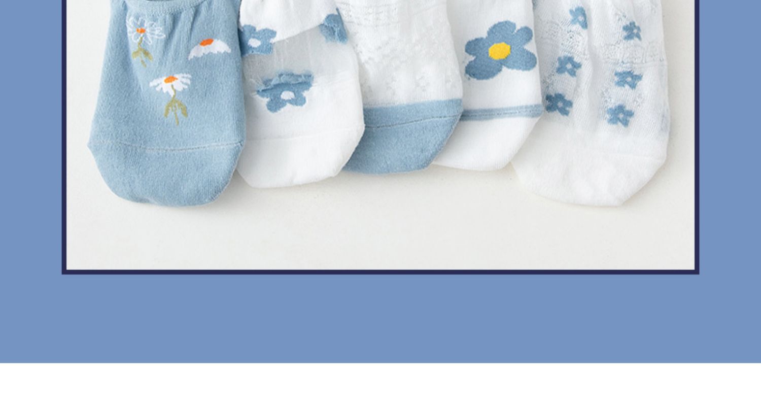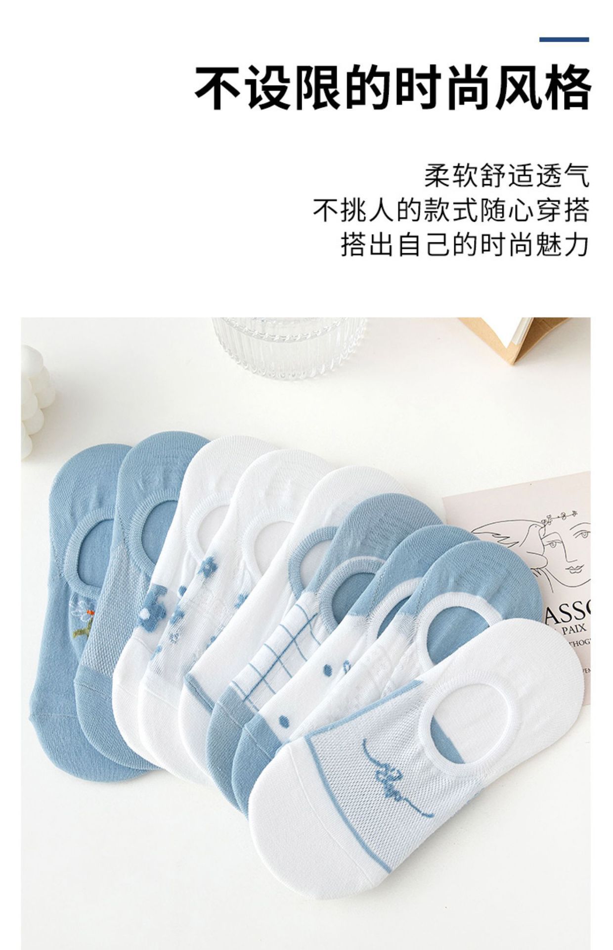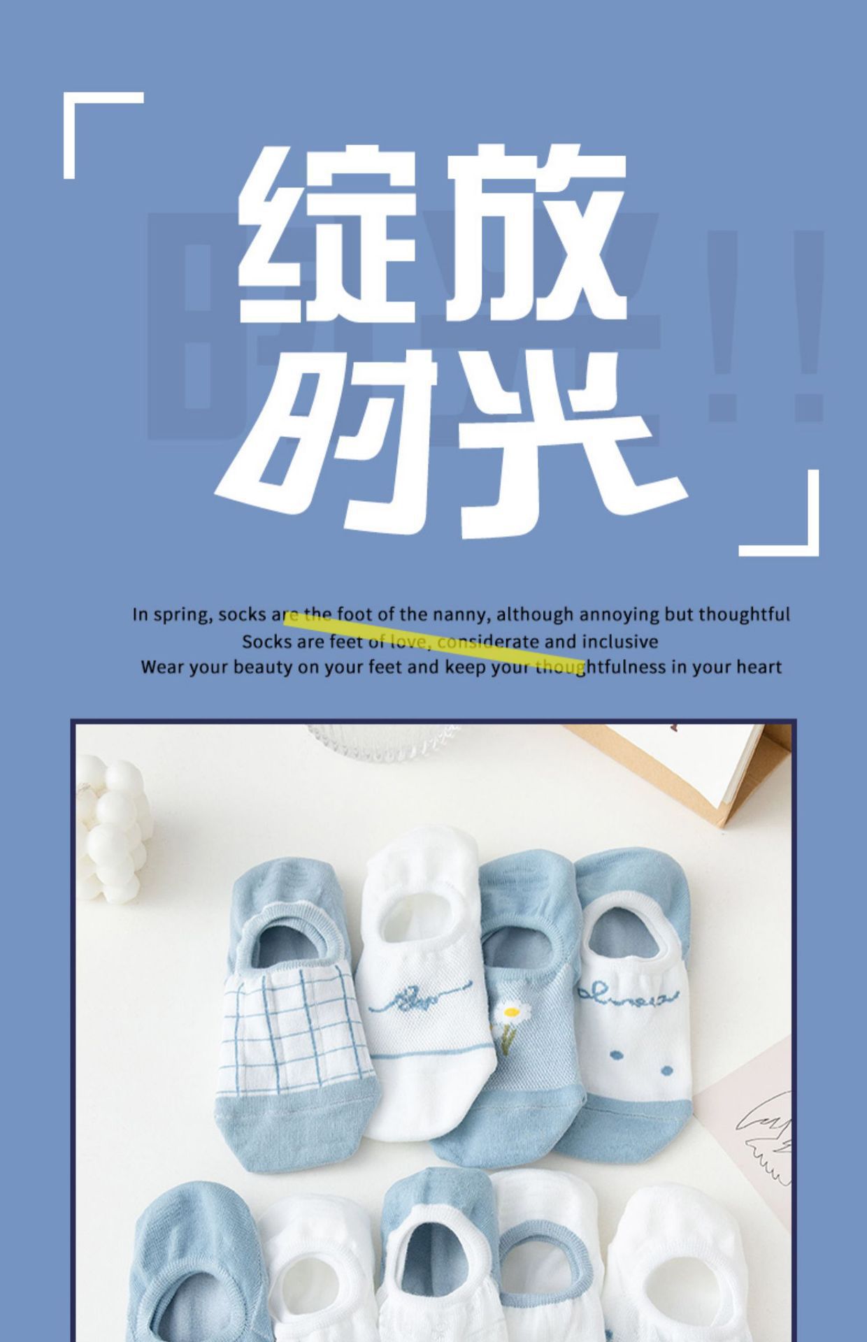 袜子女船袜夏季薄款蓝色小花隐形袜硅胶防滑不掉跟女生浅口短袜子