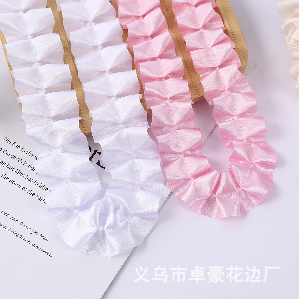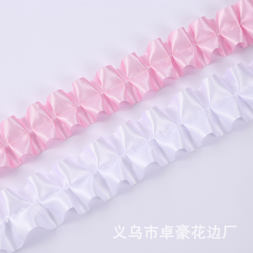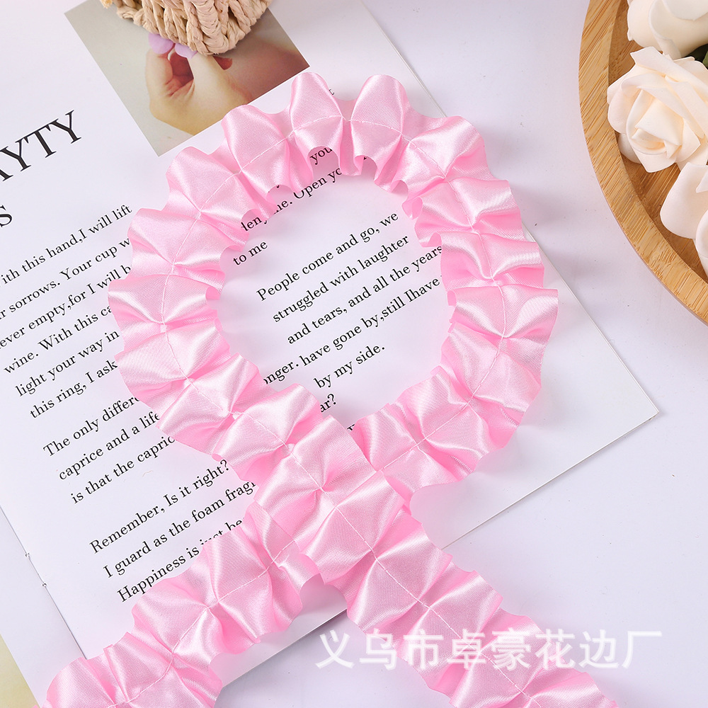 5cm色丁打皱工字褶立体花边小香风花束包装织带发带材料批
