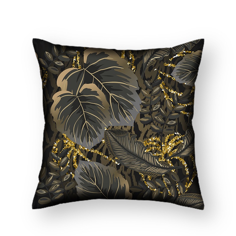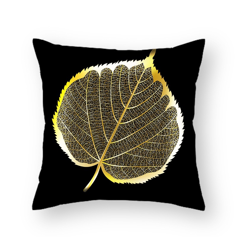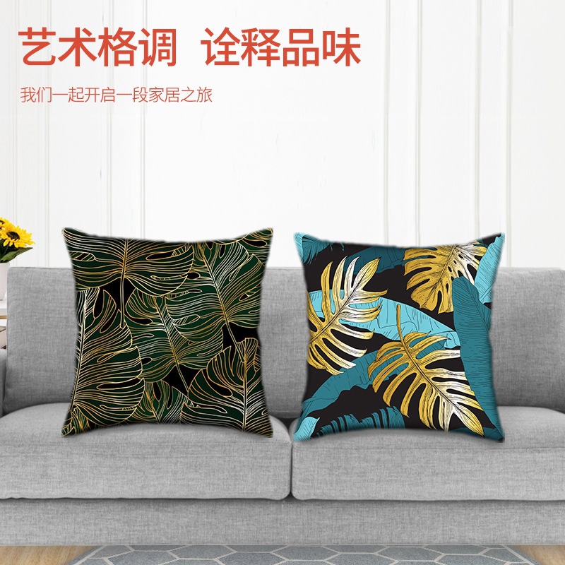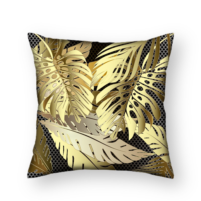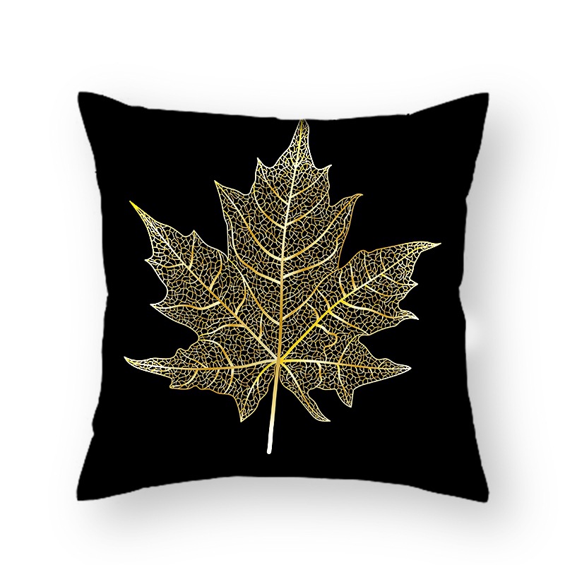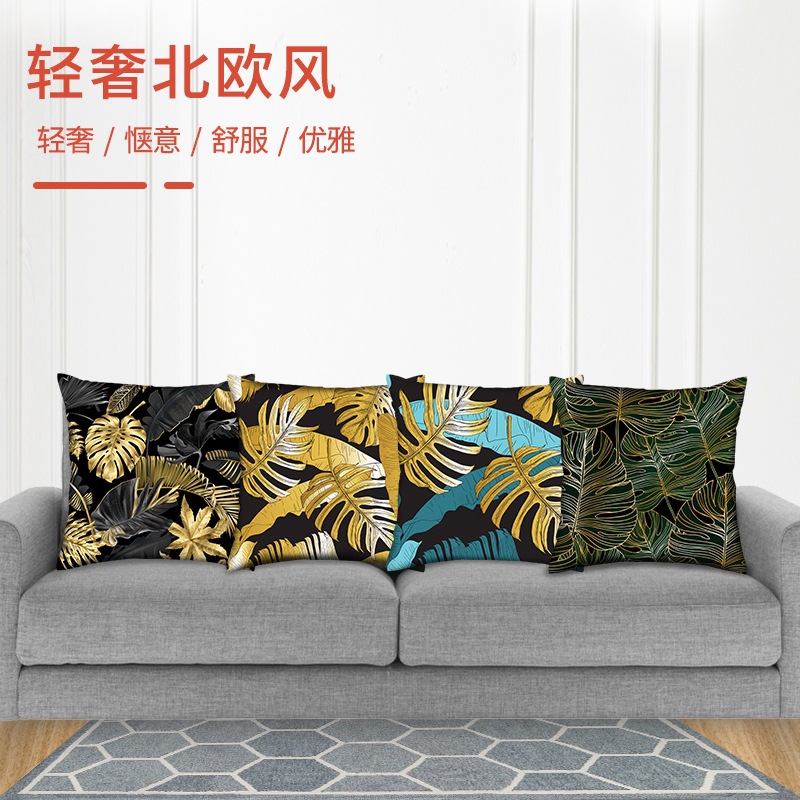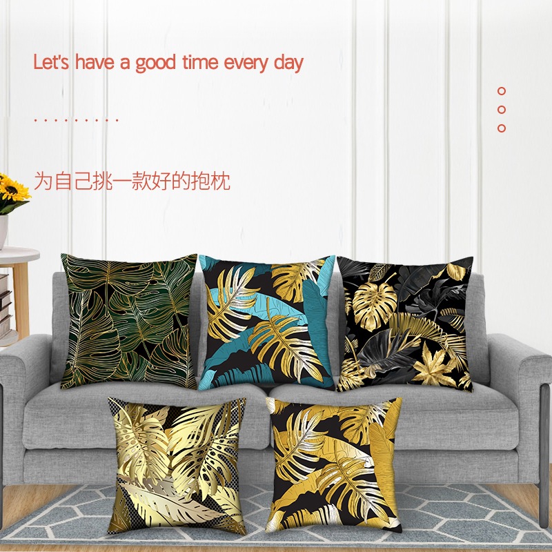 亚马逊金箔树叶绿植短毛绒抱枕套金色贾家居靠枕沙发靠垫办公室抱