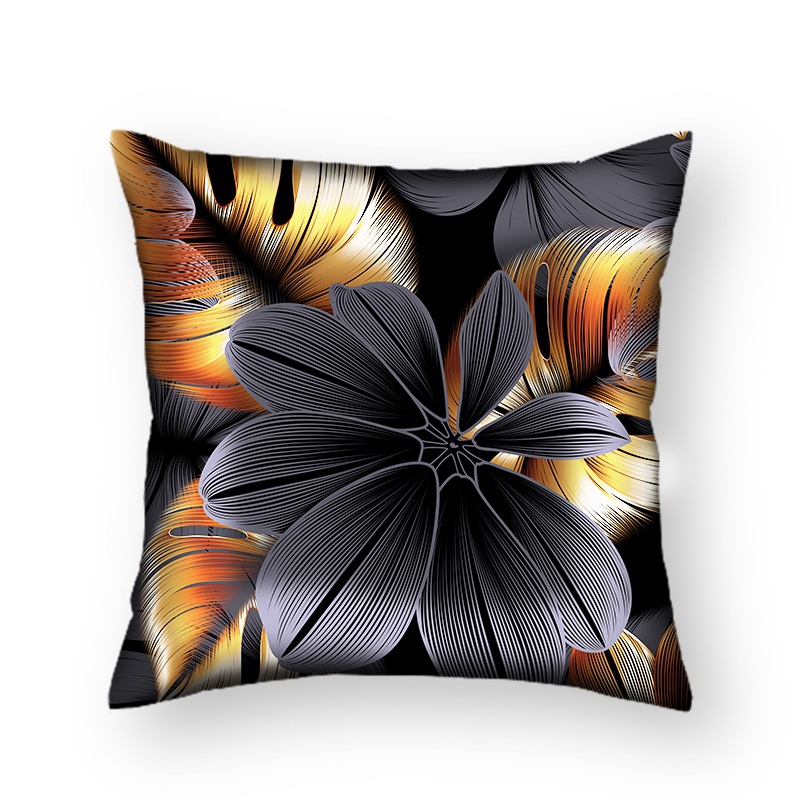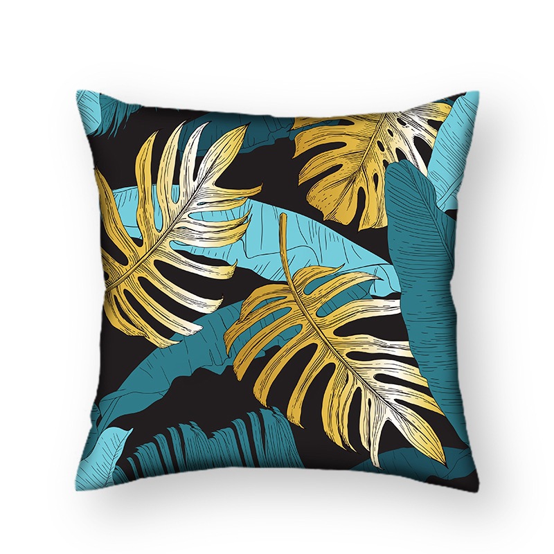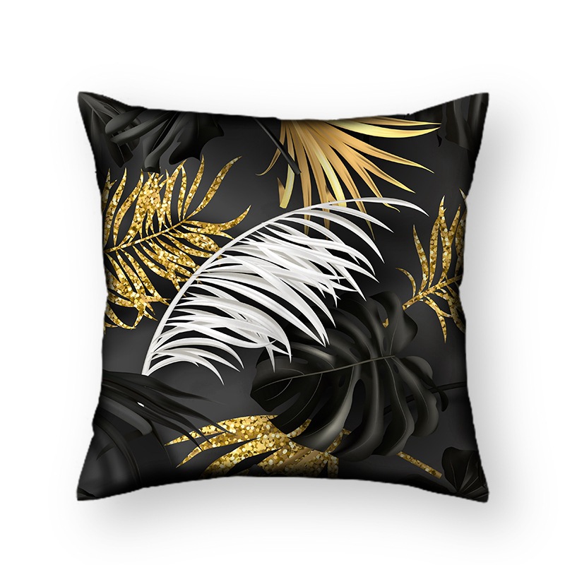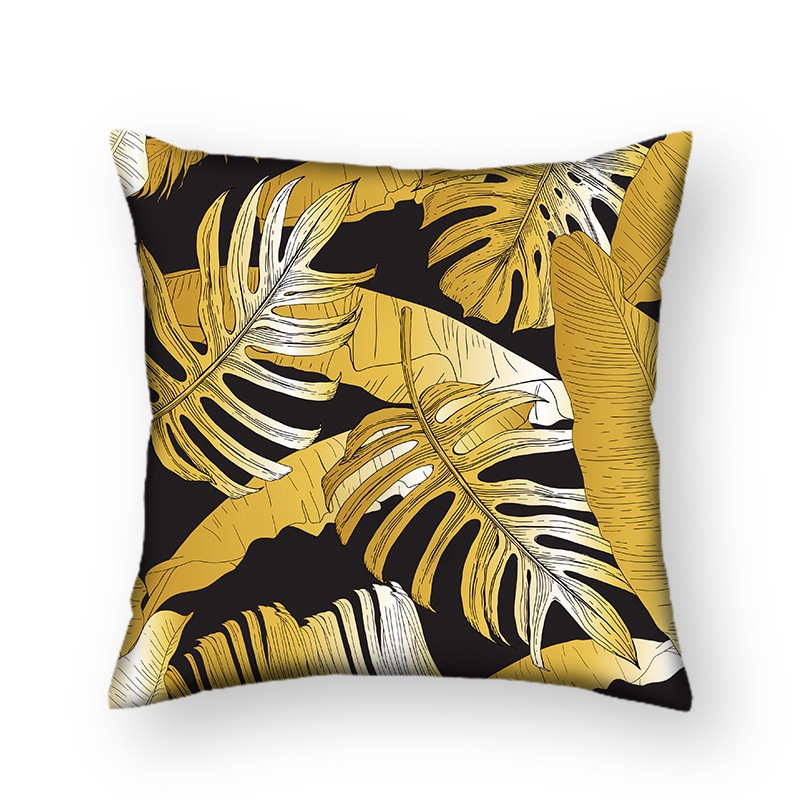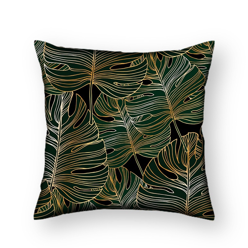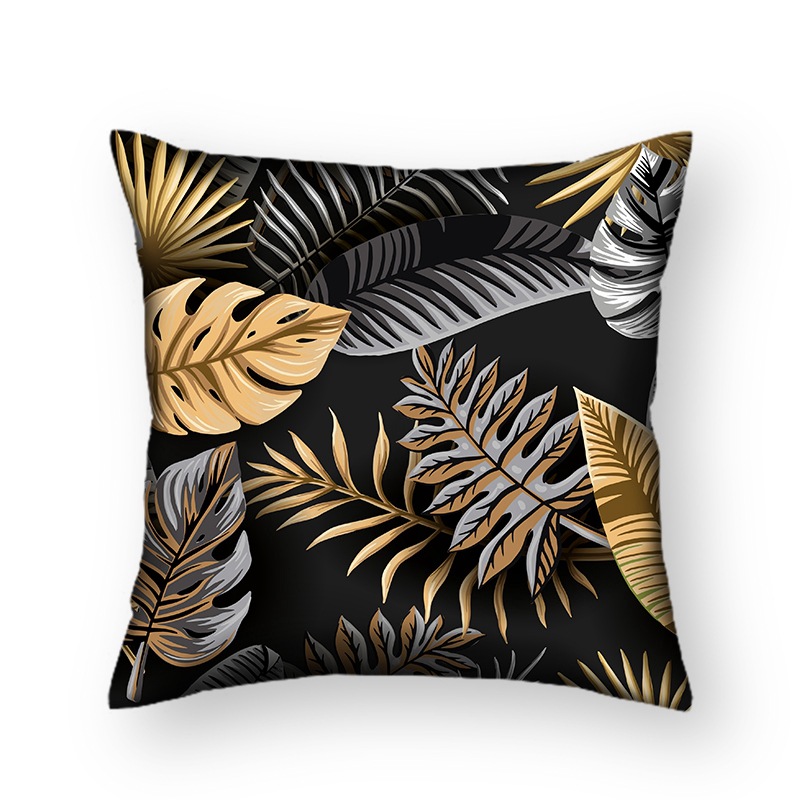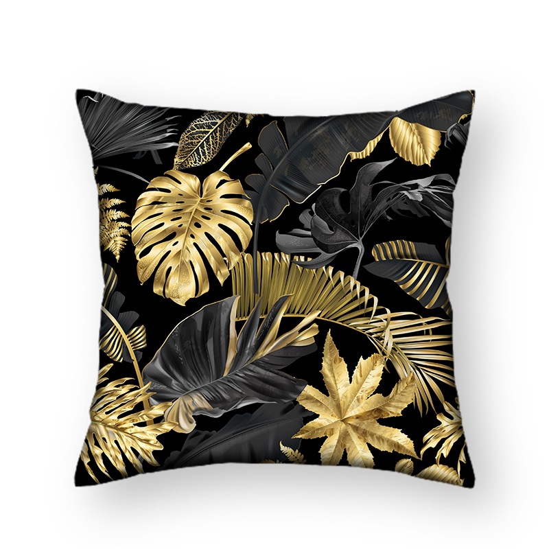 亚马逊金箔树叶绿植短毛绒抱枕套金色贾家居靠枕沙发靠垫办公室抱