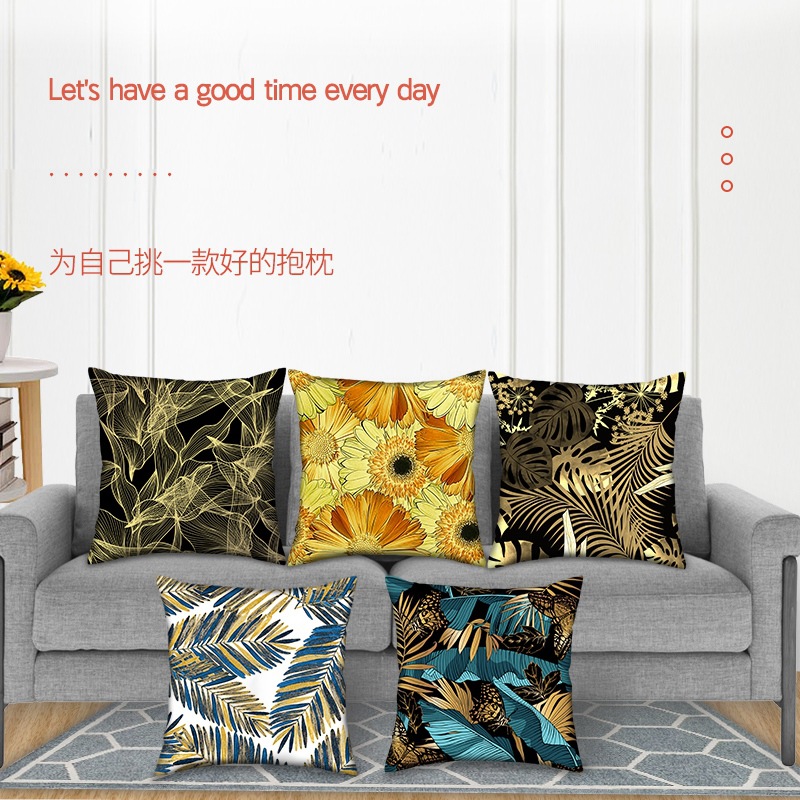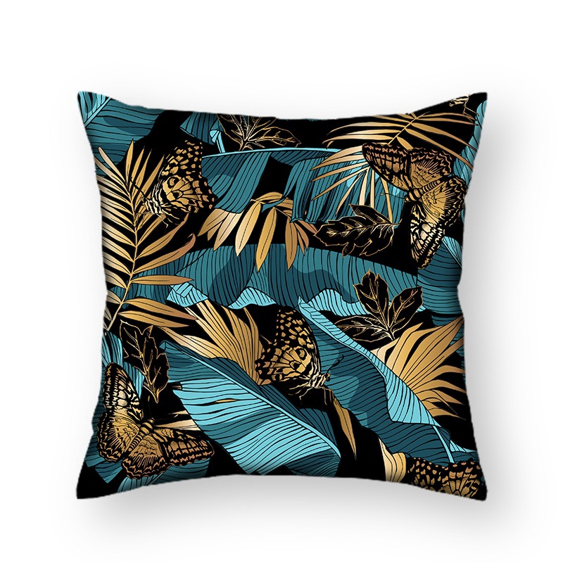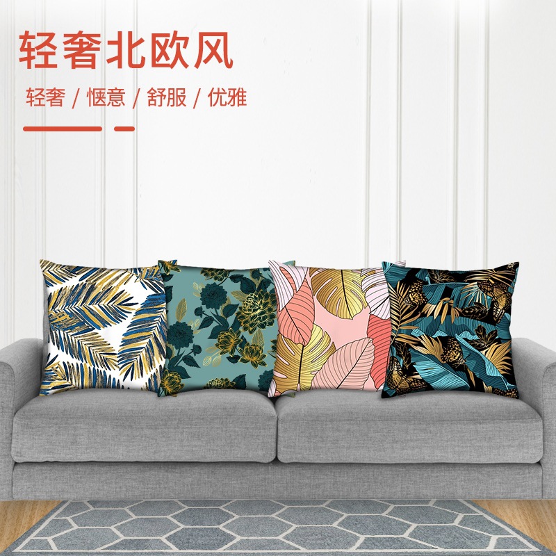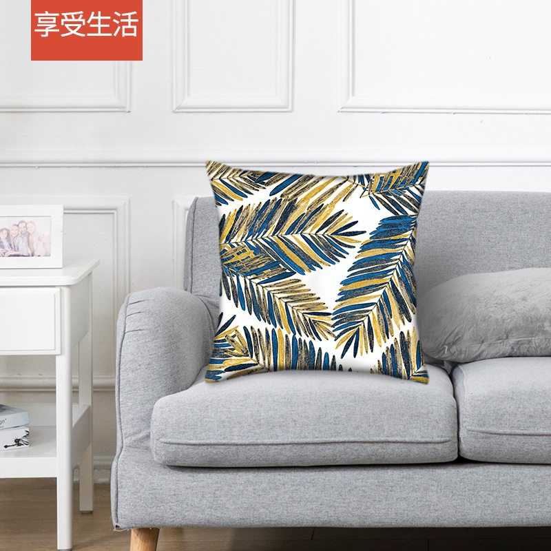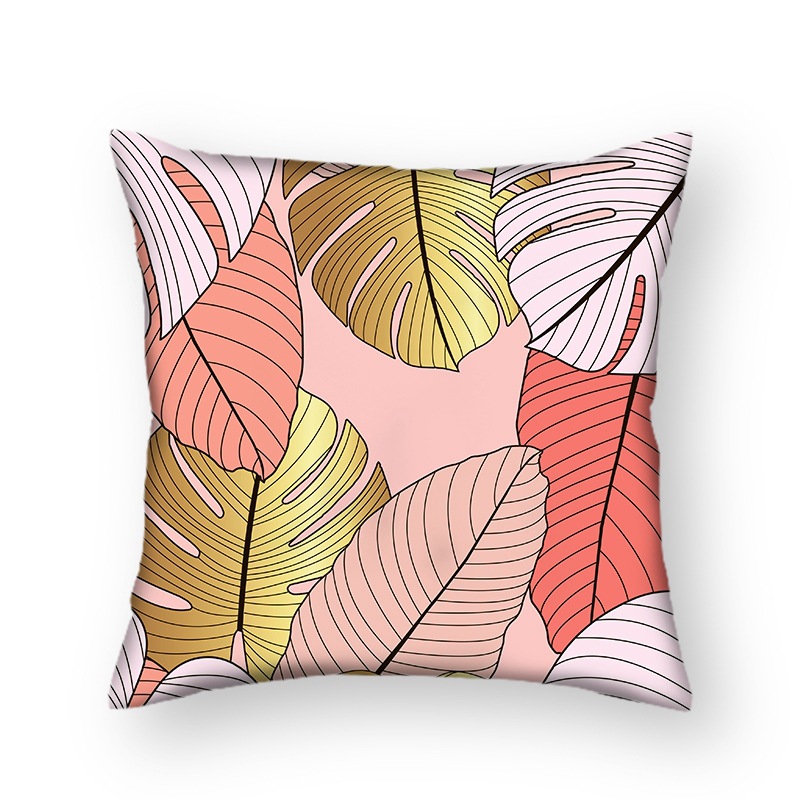 2025跨境新款抱枕树叶印花短毛绒抱枕套沙发靠垫家居用品厂家直销