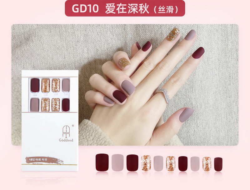 韩国GODDEED甲帝氧气穿戴指甲美甲贴女可重复戴环保30片磨砂