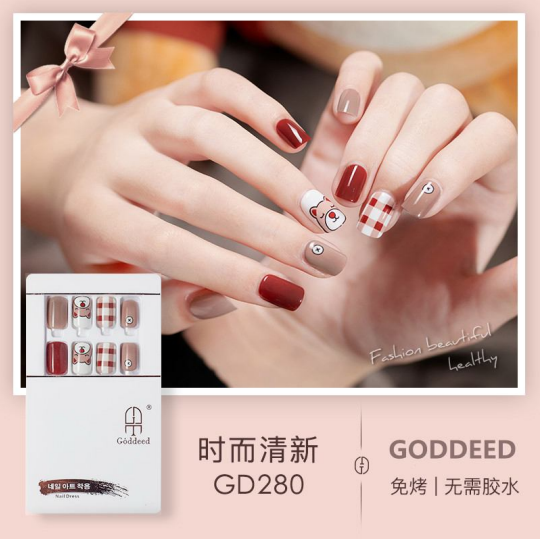 韩国GODDEED甲帝氧气穿戴指甲美甲片孕妇女可重复30片免烤
