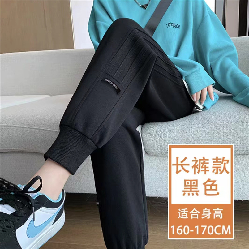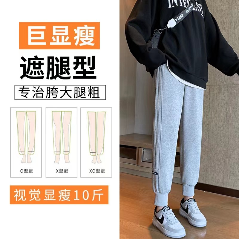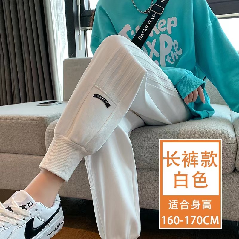 白色卫裤女休闲宽松束脚运动裤2024春秋显瘦百搭拼接潮棉质哈伦裤