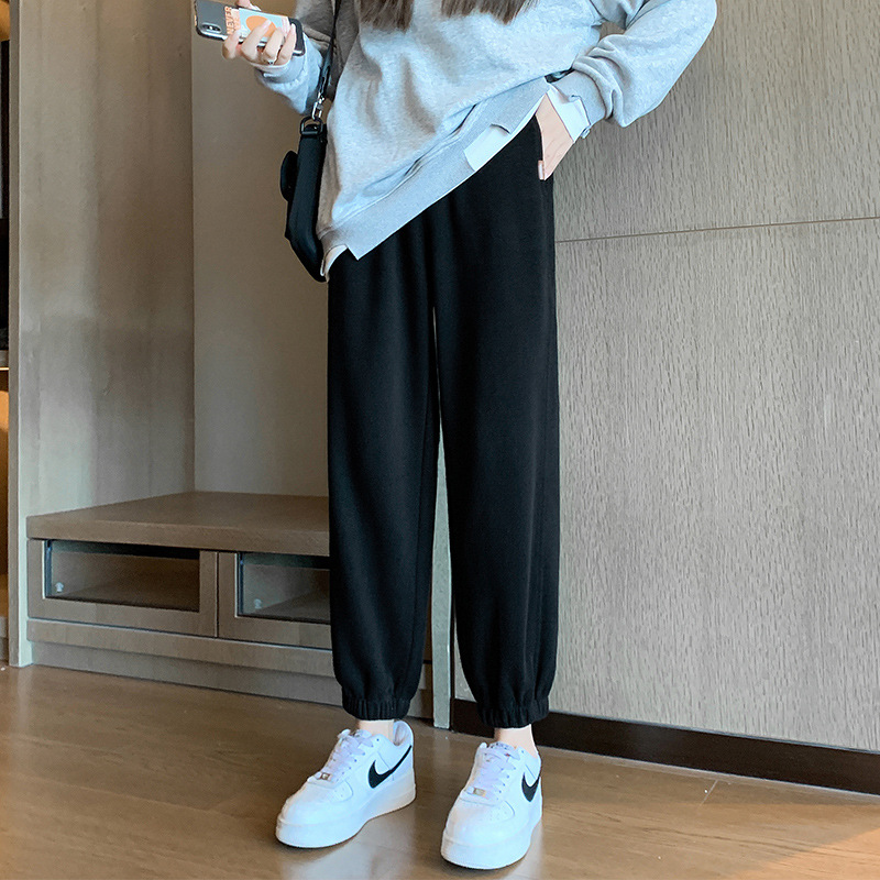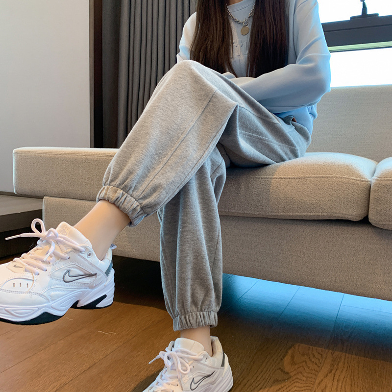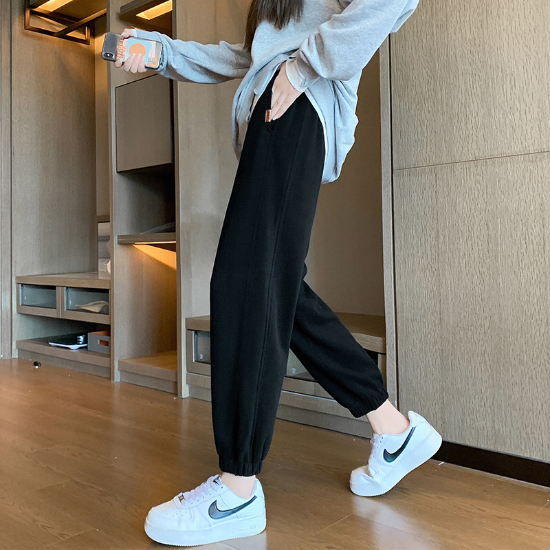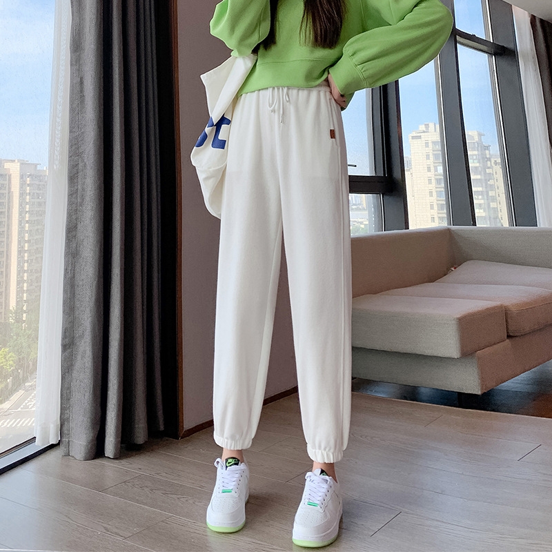 白色运动裤女宽松束脚2024春季新款显瘦休闲直筒长裤休闲哈伦卫裤