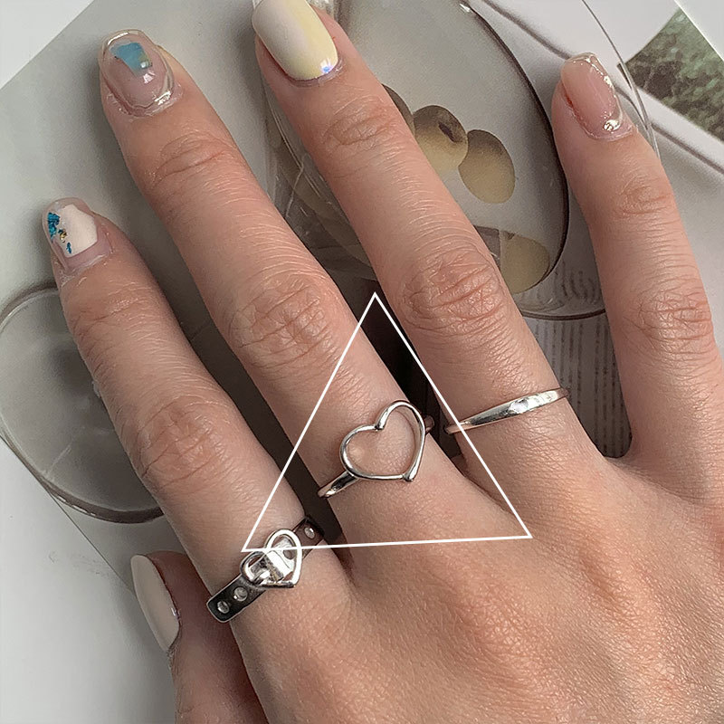 韩版925纯银戒指爱心系列镂空皮带ins冷淡风小众设计网红食指戒女