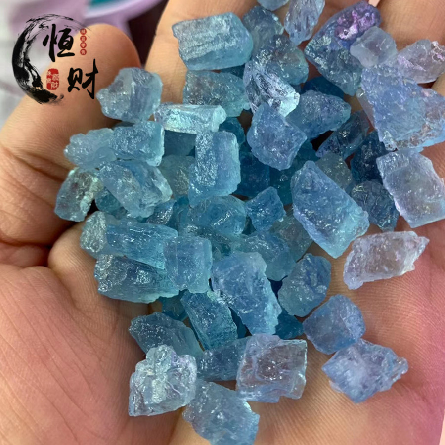 天然海蓝宝原石不规则裸石diy镶嵌戒指耳环挂件吊坠