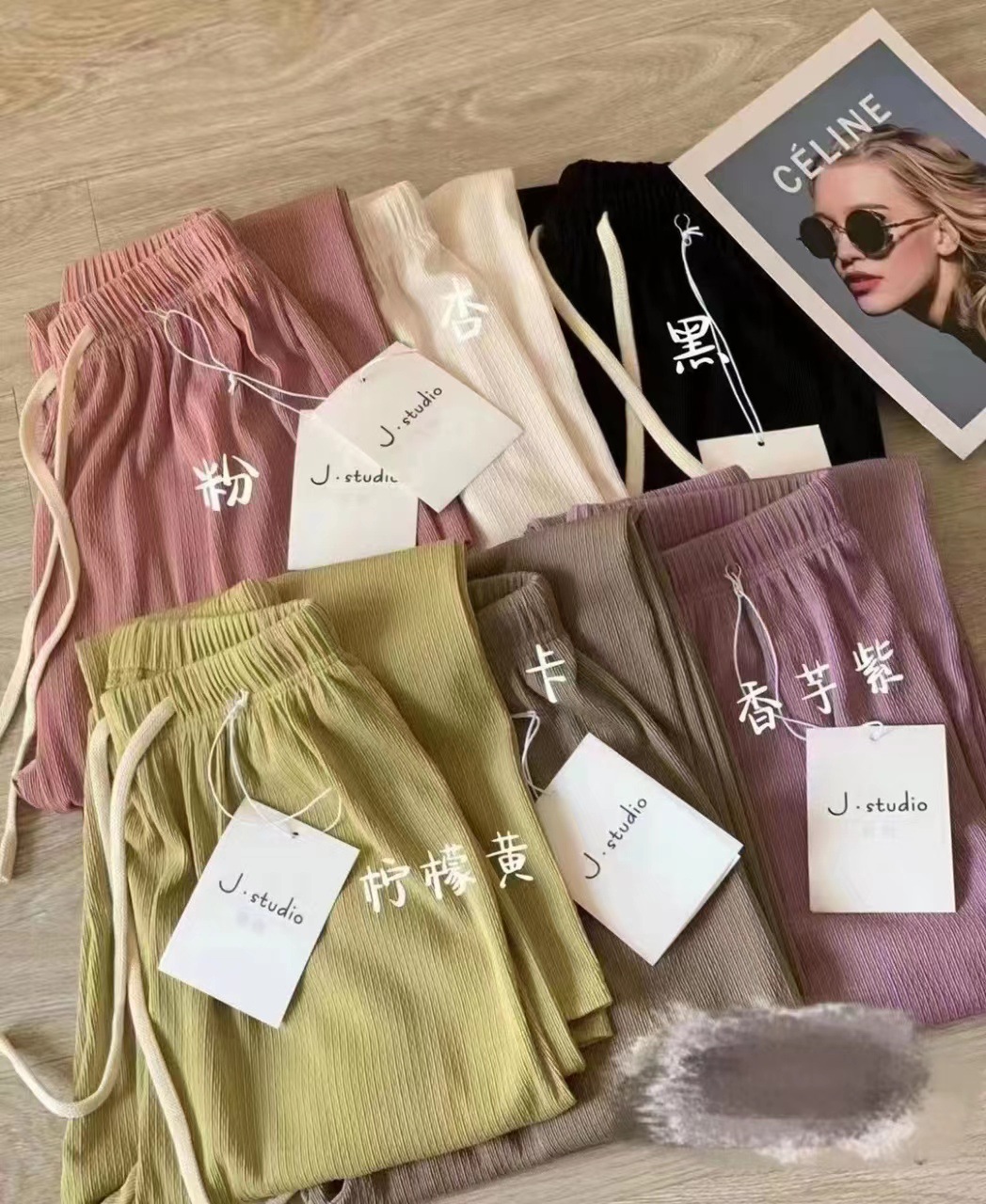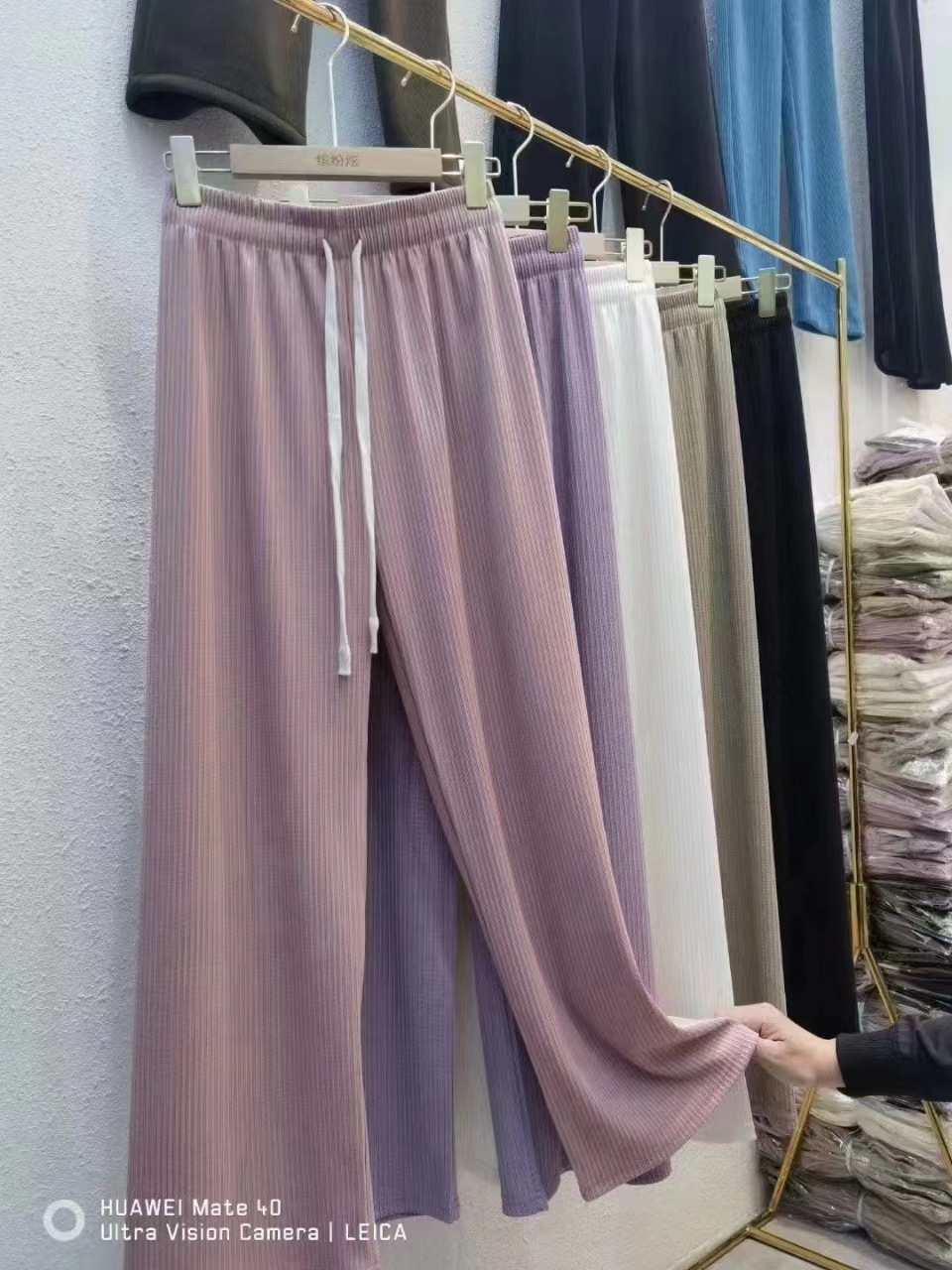 2023年春夏新款阔腿裤女高腰宽松百搭抽绳直筒裤闪电条纹休闲裤女