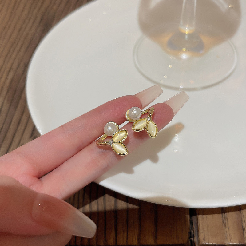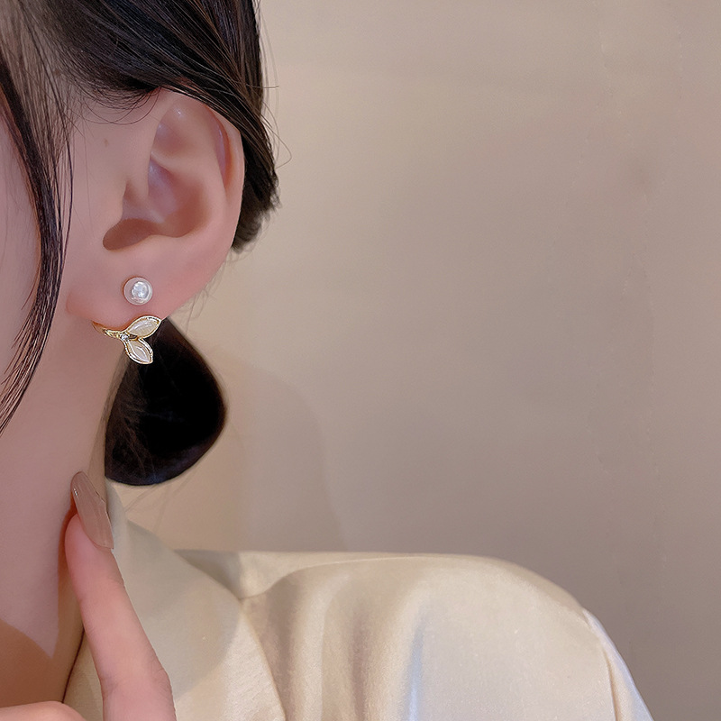 S925银针ins潮一款两戴珍珠耳钉耳饰高级设计感鱼尾猫眼石耳环女