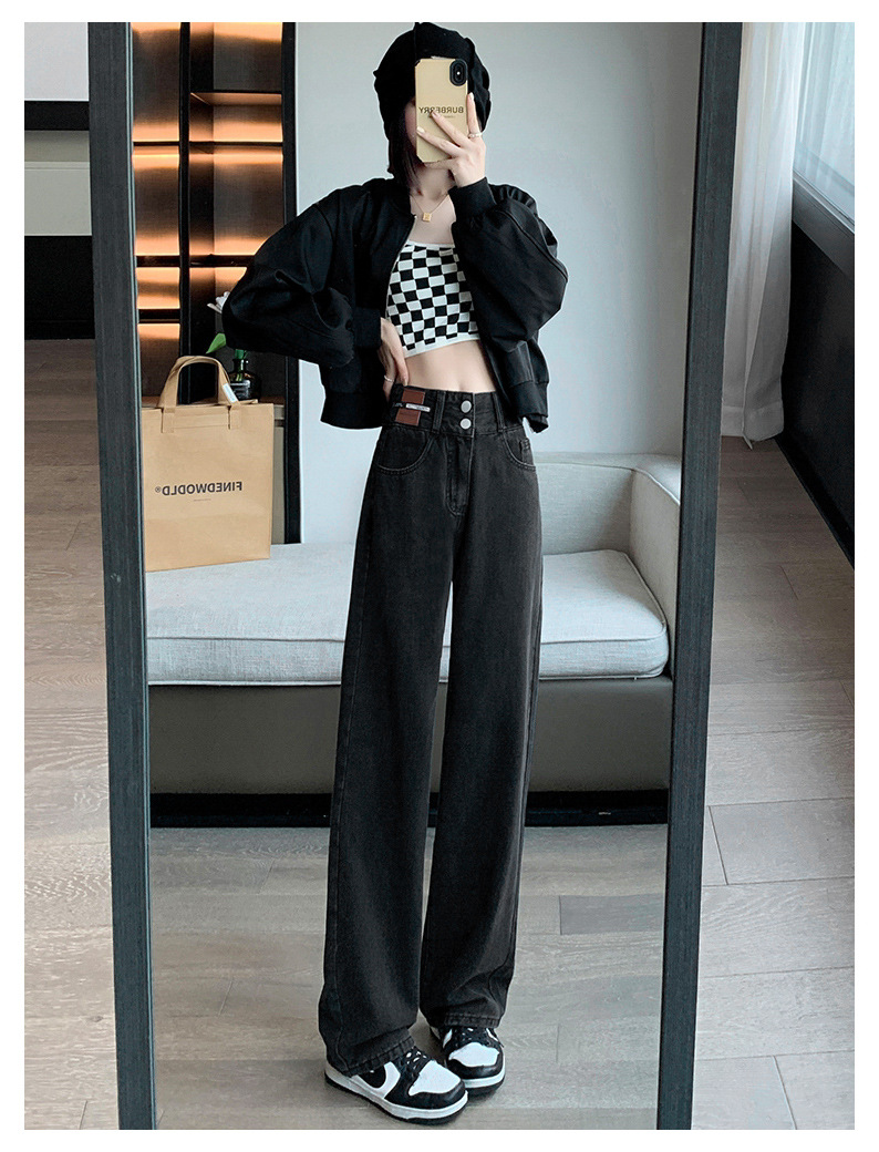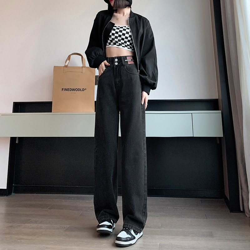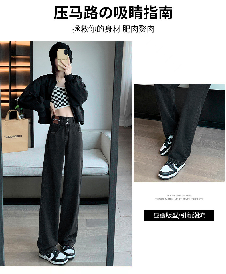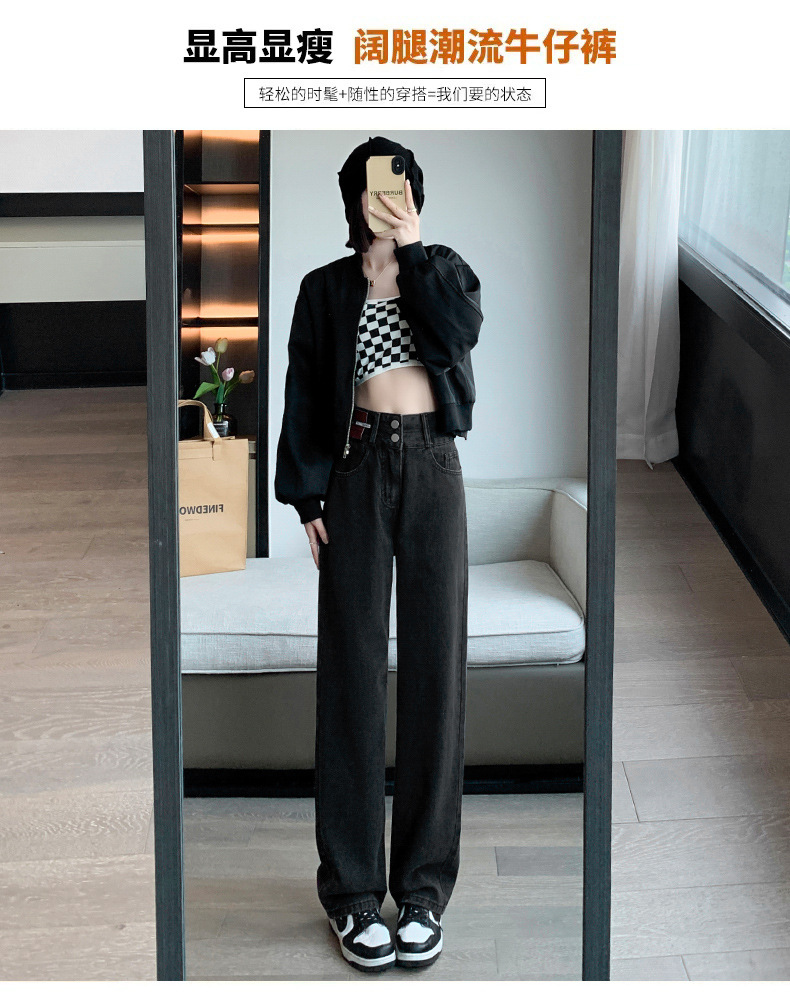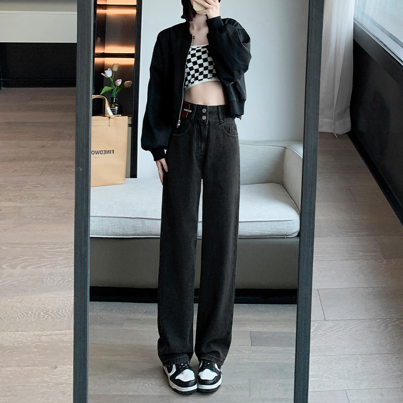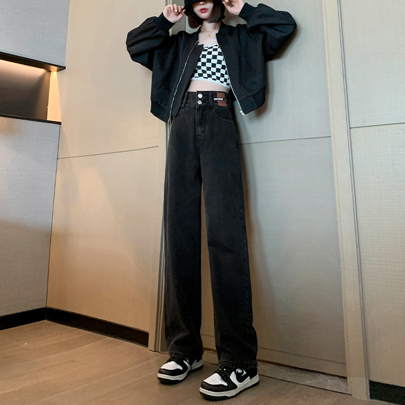 高腰阔腿牛仔裤宽松春秋新款女显瘦垂感韩版设计感直筒拖地裤百搭