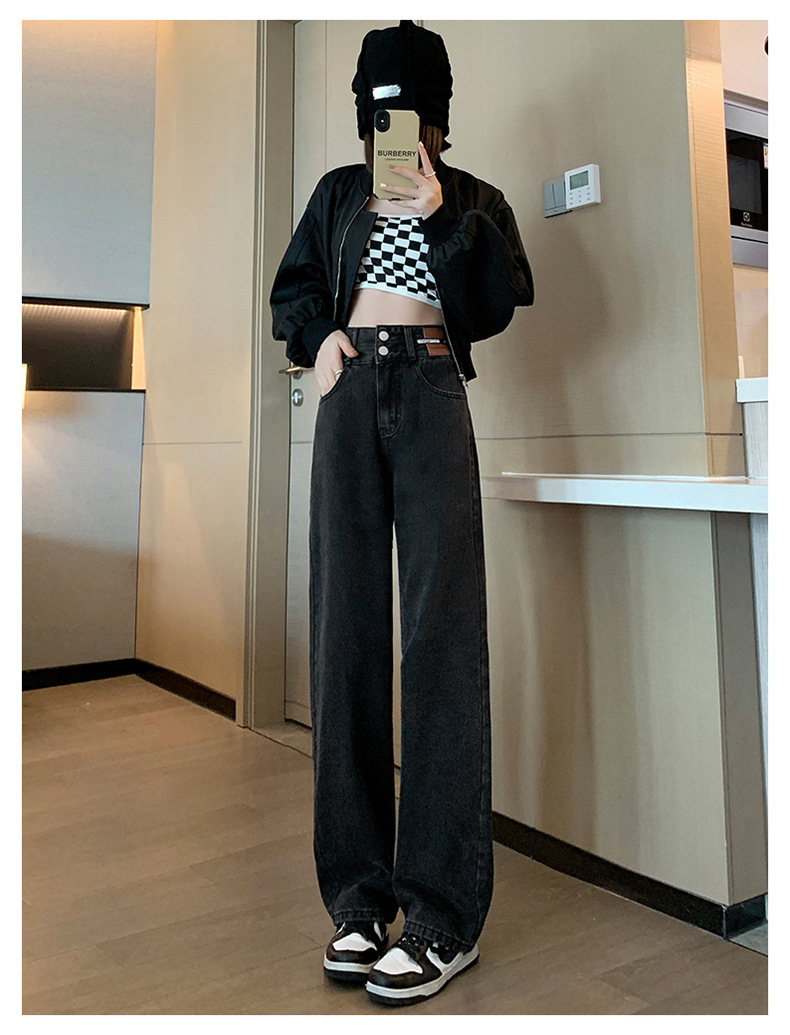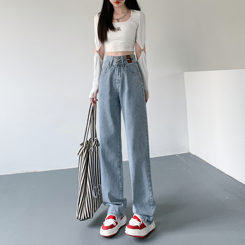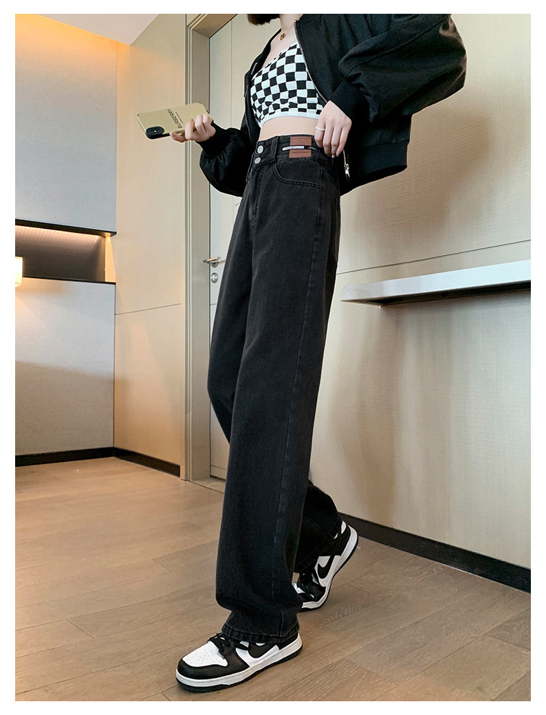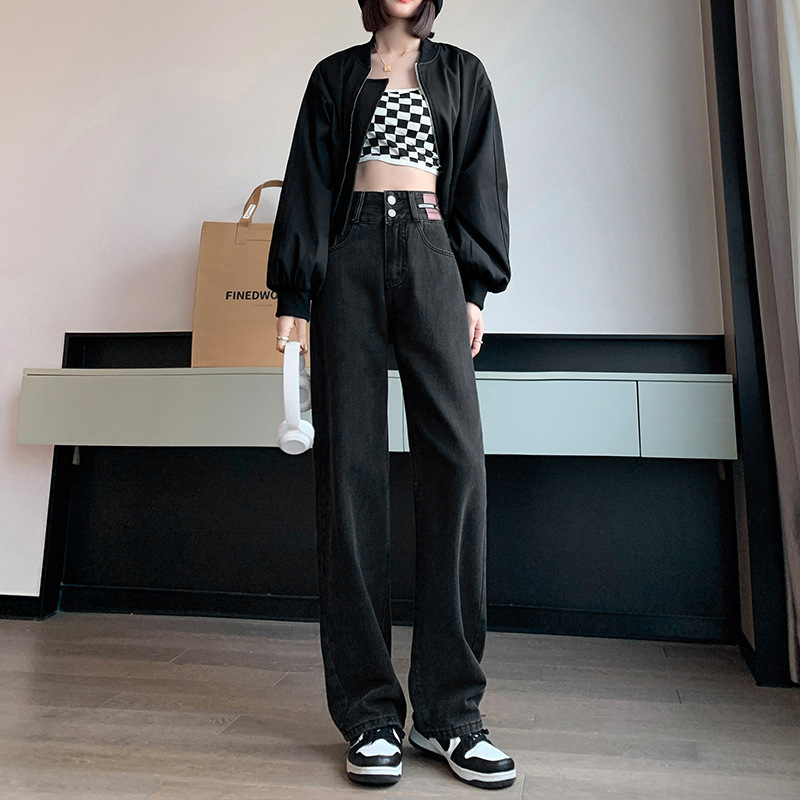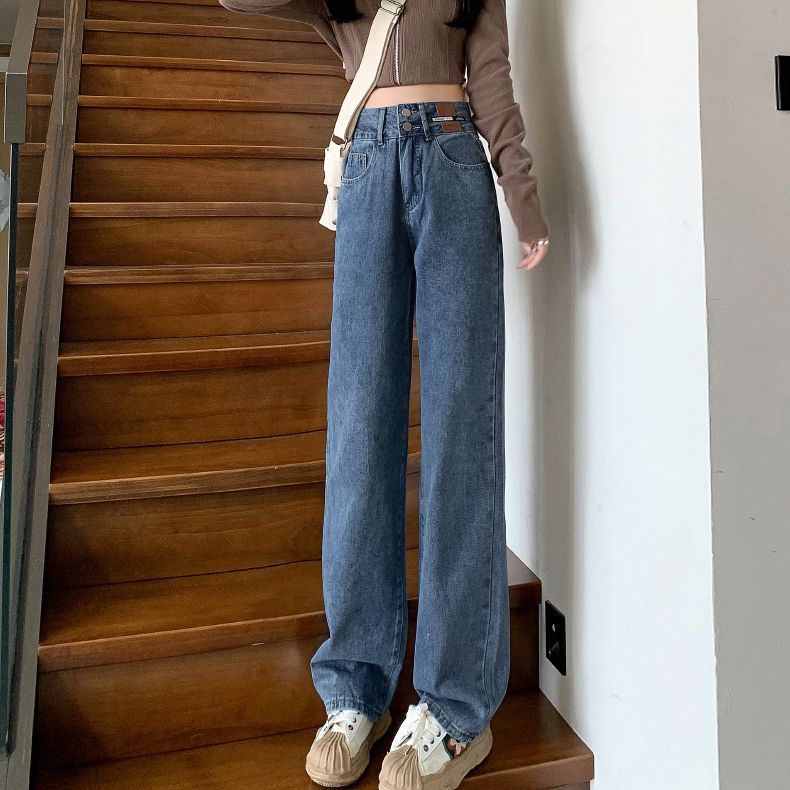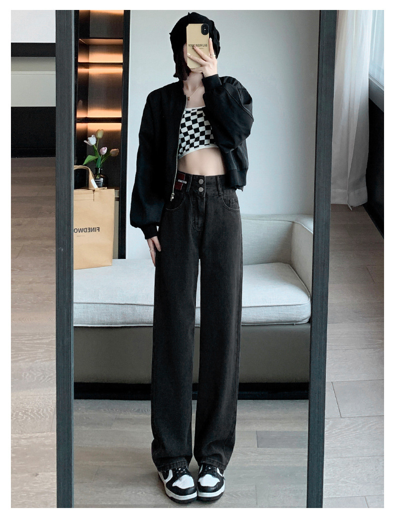 高腰阔腿牛仔裤宽松春秋新款女显瘦垂感韩版设计感直筒拖地裤百搭
