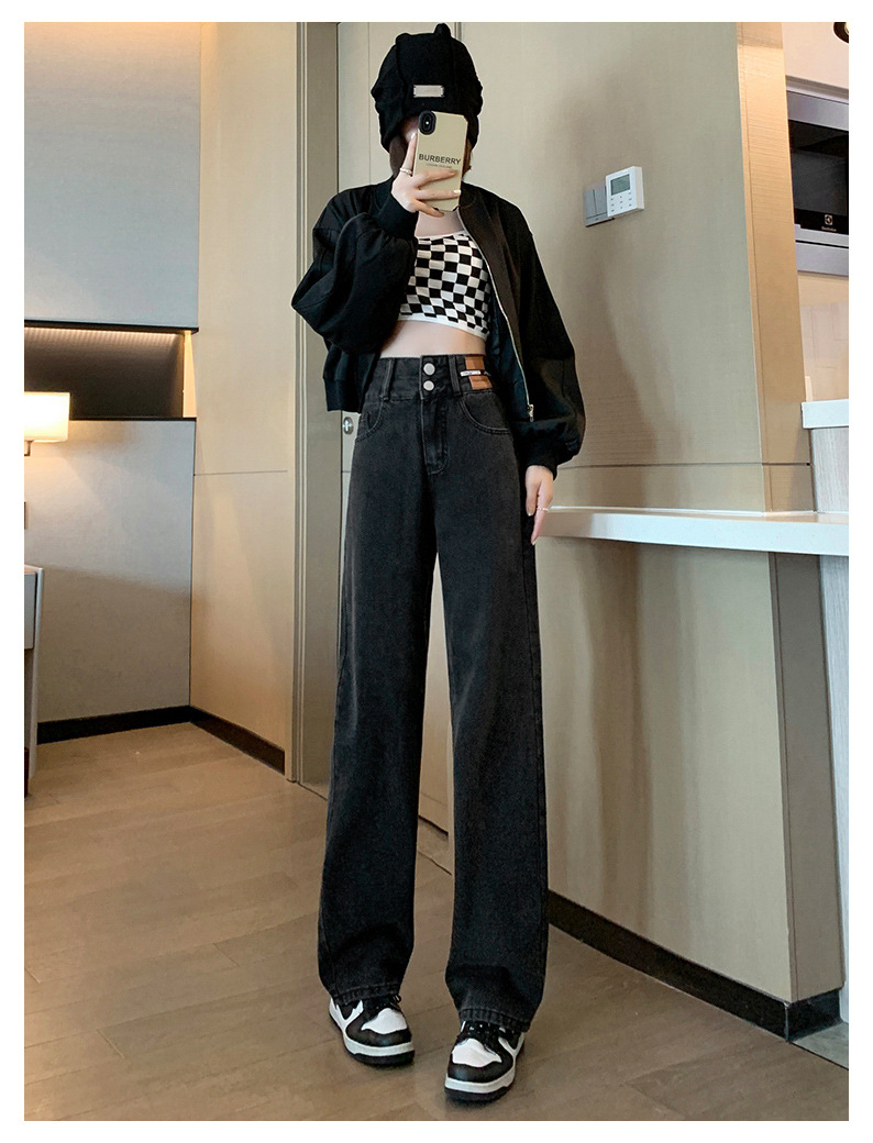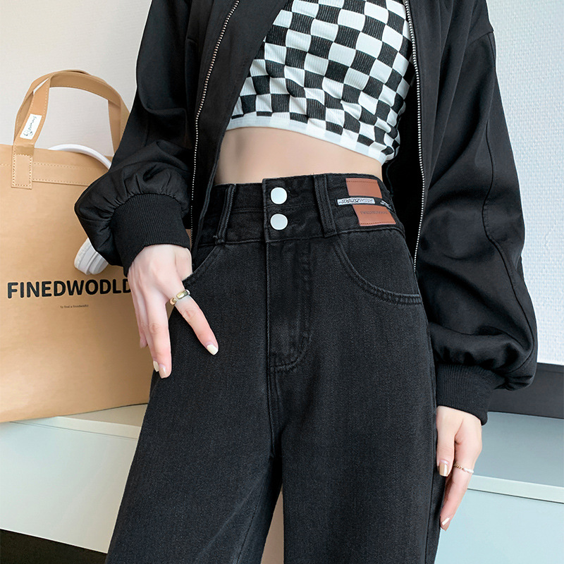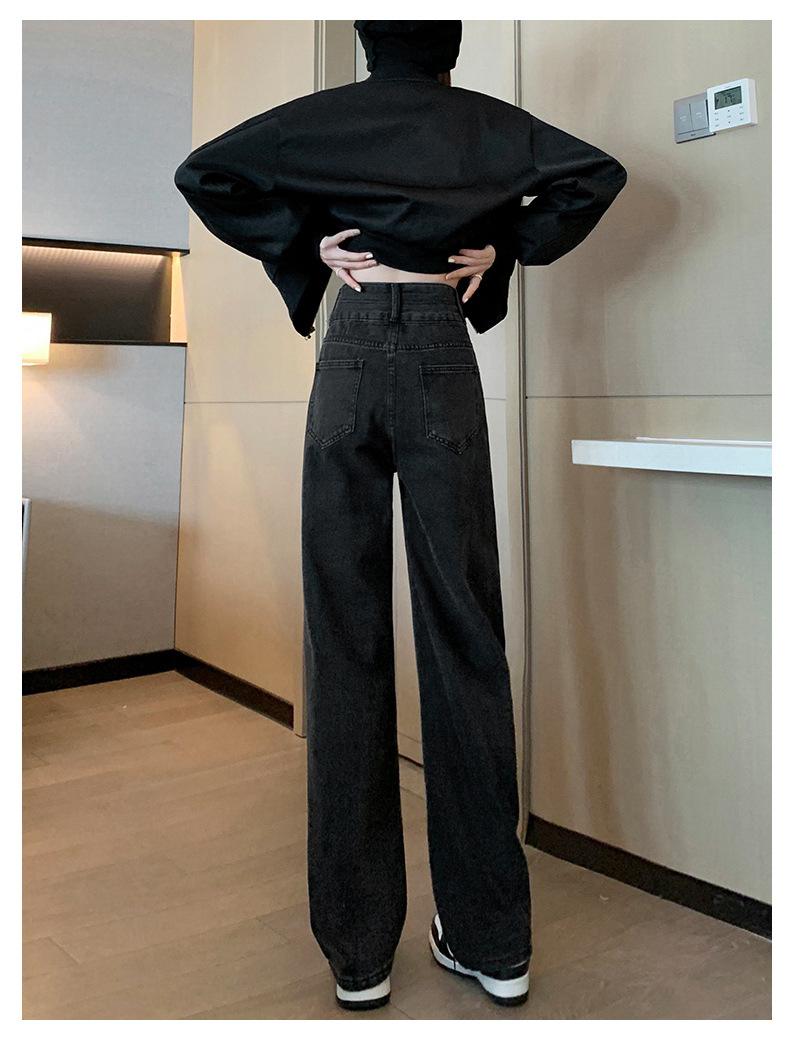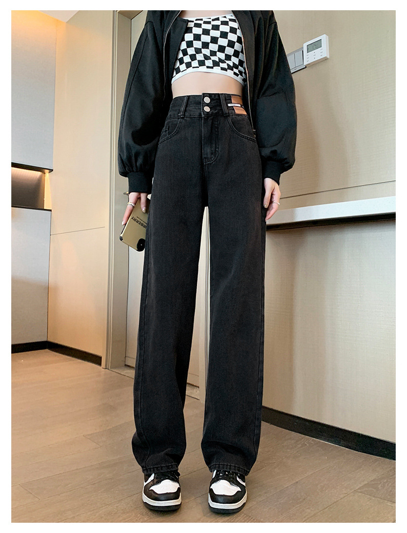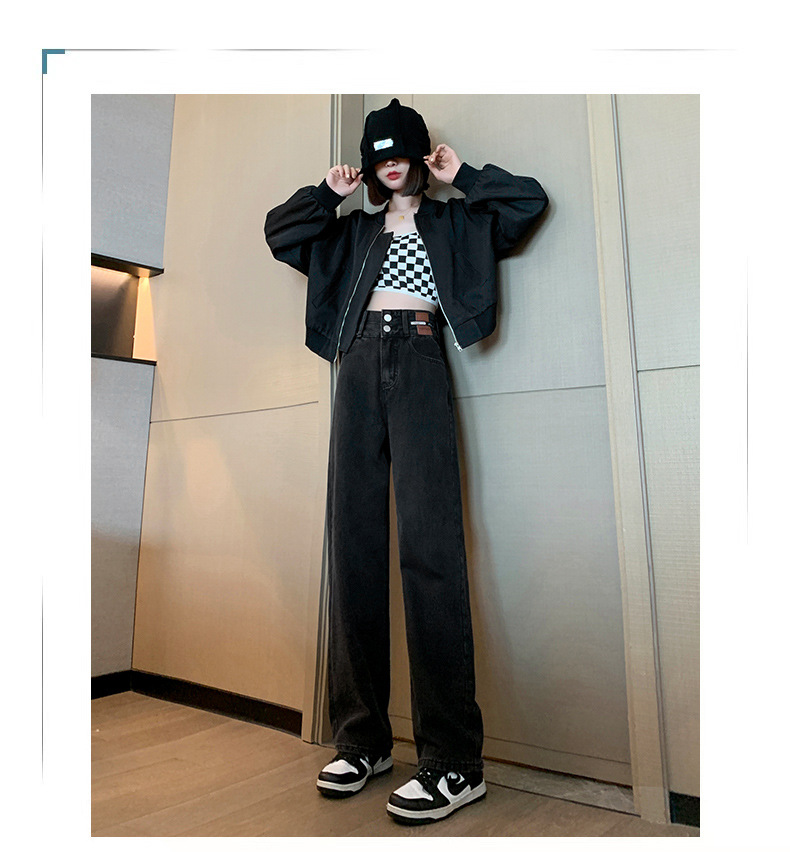 高腰阔腿牛仔裤宽松春秋新款女显瘦垂感韩版设计感直筒拖地裤百搭