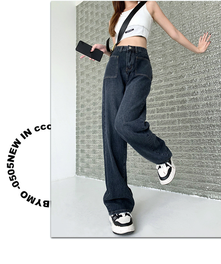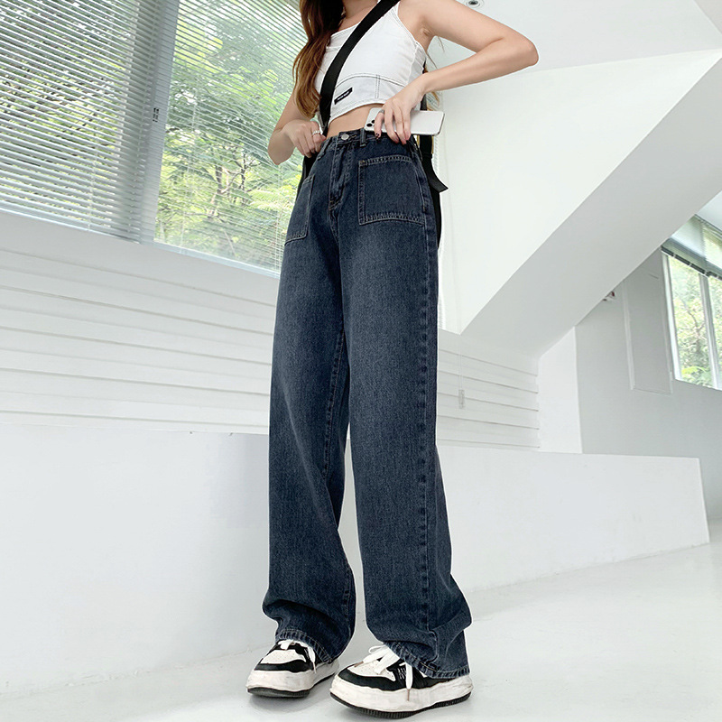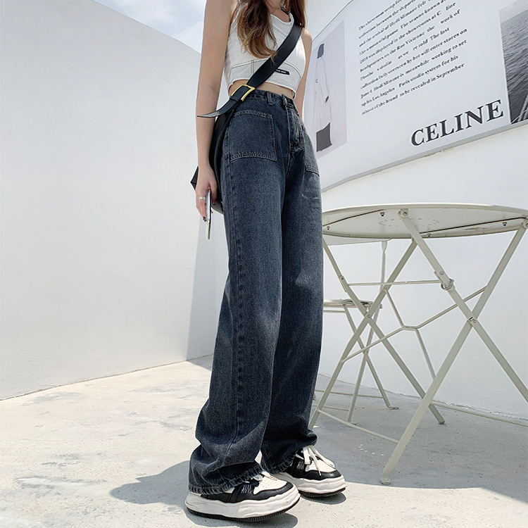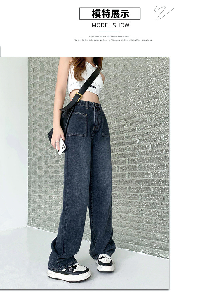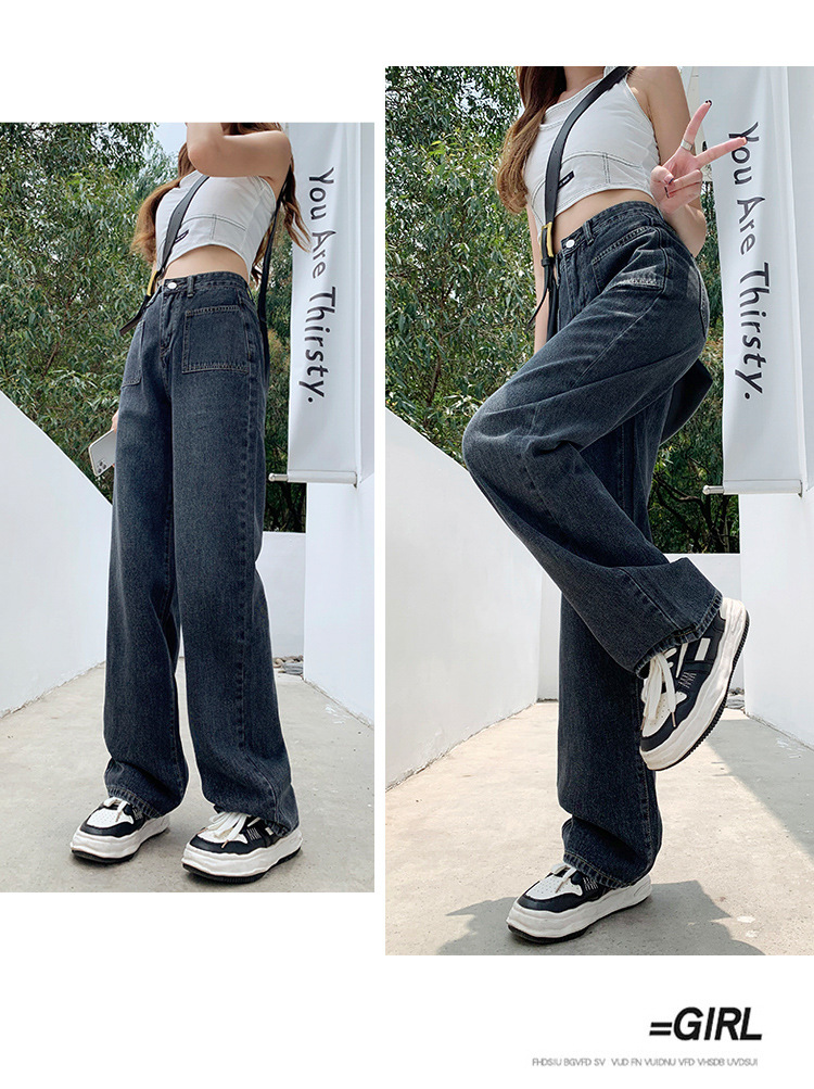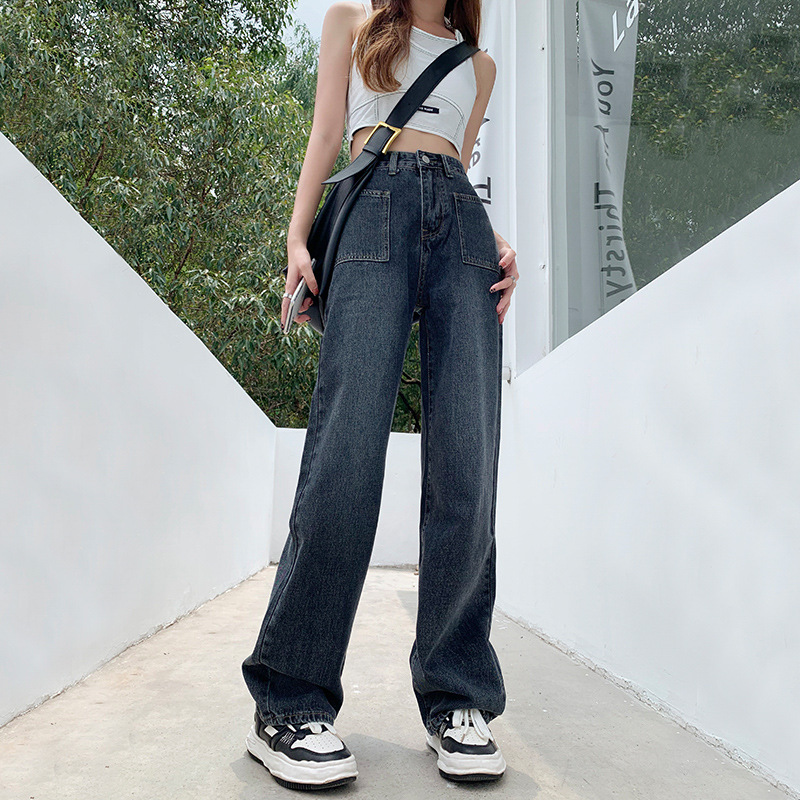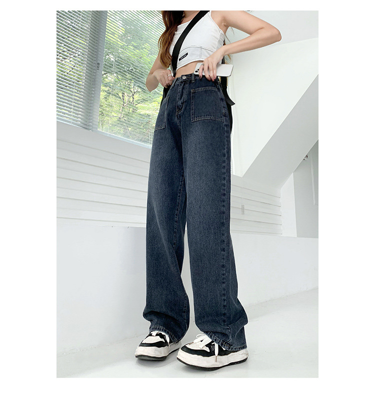 复古直筒牛仔裤女春秋新款高腰磨白阔腿裤ins潮流宽松显瘦拖地裤