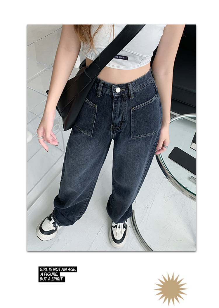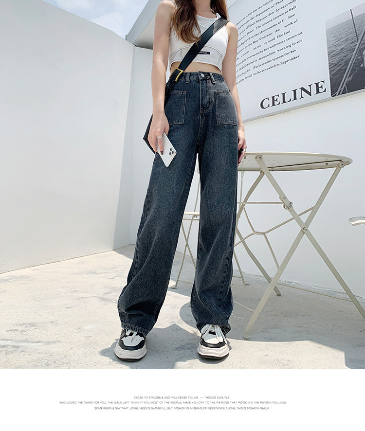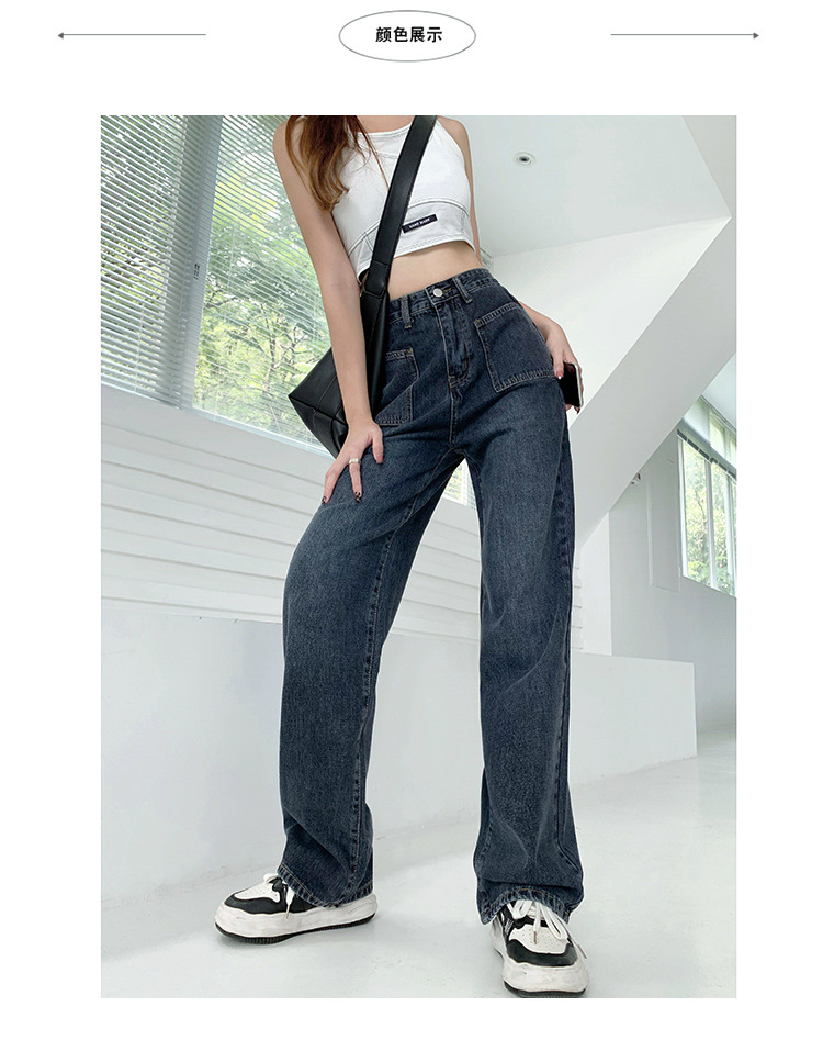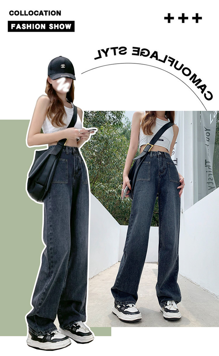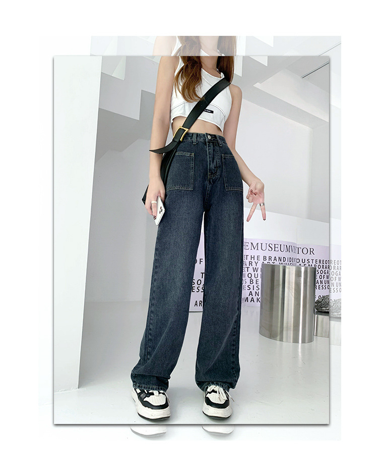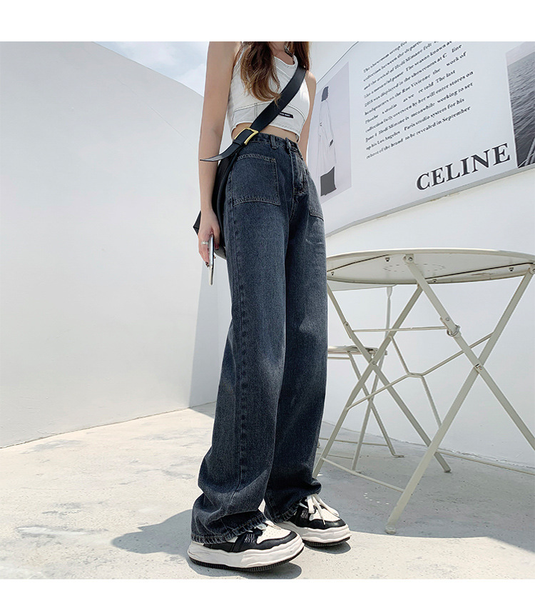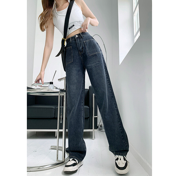复古直筒牛仔裤女春秋新款高腰磨白阔腿裤ins潮流宽松显瘦拖地裤